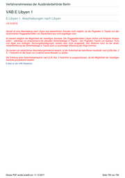 Verfahrenshinweise der Ausländerbehörde Berlin VAB E Libyen 1 E.Libyen.1. Abschiebungen nach Libyen (16.10.2015) Derzeit ist eine Abschiebung nach Libyen aus tatsächlichen Gründen nicht möglich, da der Flughafen in Tripolis von den renommierten Fluggesellschaften von Deutschland aus nicht angeflogen wird. Es besteht lediglich die Möglichkeit der freiwilligen Ausreise. Die Fluggesellschaften Libyen Airline und Afriqiyah Airways sollen – allerdings nur entsprechend der aktuellen Sicherheitslage in Tripolis – den Flughafen Tripolis von Istanbul, Tunis und Algier aus anfliegen. Buchungsbestätigungen werden aber nicht ausgestellt. Des Weiteren kann es bei akuter Verschlechterung der Sicherheitslage in Tripolis auch zu kurzfristiger Streichung der Flüge kommen. Da insofern ein tatsächliches Abschiebungshindernis besteht, ist der Aufenthalt der betroffenen Ausländer nach § 60a Abs. 2 S. 1 AufenthG für die Dauer von zunächst sechs Monaten zu dulden. Die Erteilung einer Aufenthaltserlaubnis nach § 25 Abs. 5 AufenthG ist ausgeschlossen, da die Möglichkeit der freiwilligen Ausreise grundsätzlich besteht. E-Mail an die VAB-Redaktion Dieses PDF wurde erstellt am: 11.12.2017 Seite 750 von 794
