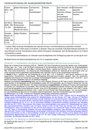 Verfahrenshinweise der Ausländerbehörde Berlin Danach benötigen drittstaatsangehörige Arbeitnehmer, die in einem anderen Mitgliedstaat der EU die Rechtsstellung eines langfristig Aufenthaltsberechtigten besitzen, kein Visum (mehr), wenn sie bis zu 90 Tage innerhalb von zwölf Monaten eine Dienstleistung nach § 21 BeschV in Deutschland erbringen. B.AufenthV.18. Befreiung für Inhaber von Reiseausweisen für Flüchtlinge frei B.AufenthV.19. Befreiung für Inhaber dienstlicher Pässe Mit Inkrafttreten der 8. VO zur Änderung der AufenthV zum 05.03.2013 sind nun auch Inhaber von Diplomatenpässen von Ecuador und Georgien sowie Inhaber von ecuadorianischen Dienstpässen von der Visumpflicht für die Einreise und den Kurzaufenthalt befreit. Die EU hat die bestehenden Visaerleichterungsabkommen mit der Ukraine und der Republik Moldau durch weitere Abkommen, die seit dem 01.07.2013 Anwendung finden, geändert. Gem. Art. 10 Abs. 2 der Abkommen können Inhaber von biometrischen Dienstpässen der Ukraine und der Republik Moldau visumfrei für höchstens 90 Tage pro Zeitraum von 180 Tagen in das Gebiet der Mitgliedstaaten einreisen und sich darin aufhalten. B.AufenthV.20. Befreiung für Inhaber von Ausweisen der Europäischen Union und zwischenstaatlichen Organisationen und der Vatikanstadt frei B.AufenthV.21. Befreiung für Inhaber von Grenzgängerkarten frei B.AufenthV.22. Befreiung für Schüler auf Sammellisten Nach § 22 benötigen Schüler, die nicht Angehörige eines Mitgliedstaates der EU oder des EWR sind, jedoch in einem solchen Staat ihren Wohnsitz haben, bei Schulreisen innerhalb der EU und des EWR keinen Aufenthaltstitel, sofern sie die Berechtigung zur Rückkehr in den Herkunftsstaat durch eine "Liste der Reisenden" nachweisen und der Zielstaat sowie die Transitstaaten die entsprechenden EU- Regelungen in nationales Recht übernommen haben. Die "Liste der Reisenden" gilt für die Reiseteilnehmer, für die darin ein Lichtbild angebracht ist, gleichzeitig als Passersatz für diese Reise.Hierfür ist das Sachgebiet IV A 2 zentral zuständig. Es gilt folgendes Verfahren: Die Schule beantragt formlos unter Angabe von Zweck, Ziel und Dauer der Reise sowie der genauen Personalien der teilnehmenden ausländischen Schüler die Reisendenliste. Für die Schüler, die keinen eigenen Pass oder Passersatz besitzen, ist ein biometrisches Lichtbild beizufügen. Nach Überprüfung des aufenthaltsrechtlichen Status sind die Personalien der teilnehmenden Schüler in die Liste einzutragen und die Berechtigung zur Wiedereinreise in die Bundesrepublik Deutschland zu bestätigen. Auch Minderjährige und Heranwachsende, deren Aufenthalt geduldet wird oder die vom Erfordernis eines Aufenthaltstitels zum Beispiel als Angehörige von Diplomaten oder gem. § 27 befreit sind, können nach dem mit dem 2. ÄndG eingefügten § 22 Abs. 2 in die Reisendenliste eingetragen werden, wenn sie Schüler einer allgemeinbildenden oder berufsbildenden Schule sind und von einer Lehrkraft begleitet werden. Sie sind dann für die Wiedereinreise vom Erfordernis eines Aufenthaltstitels befreit. Bei Geduldeten ist Voraussetzung, dass im Vorgriff auf die erwartete Wiedereinreise entschieden wurde, die Duldung über das Datum der beabsichtigten Wiedereinreise hinaus zu verlängern. Dies kann nur durch das aktenhaltende Sachgebiet - im Regelfall IV A 2 selbst oder IV A 3 - 4 - erfolgen. Hierauf ist die Schule durch IV A 2 im Einzelfall hinzuweisen. Spricht der Geduldete dort nicht vor und/oder wird die Duldung nicht über den Tag der Wiedereinreise hinaus verlängert, kann der Betroffene nicht auf die Reisendenliste aufgenommen werden. Ist die Duldung dagegen ausweislich des AusReg über das Datum der beabsichtigten Wiedereinreise hinaus gültig, so kann IV A 2 den Geduldeten grundsätzlich ohne Abstimmung mit dem jeweils zuständigen Sachgebiet und ohne Einsicht in die Ausländerakte zu nehmen in die Liste der Reisenden aufnehmen. Sind andere Sachgebiete - insbesondere IV R 1 - 3 oder IV P - aktenführend, erfolgt die Aufnahme in die Reisendenliste nur im Einvernehmen mit dem zuständigen Sachgebiet. Merke: Bei Geduldeten ist auf der Liste gem. § 22 Absatz 2 anzuordnen, dass die Abschiebung nach der Wiedereinreise ausgesetzt wird. Diese Anordnung der aufschiebend bedingten Duldung ist erforderlich, weil mit einer Ausreise eine Duldung erlischt (vgl. Nr. 3.3.6 AufenthG VwV). Die Duldung, deren Wirkung aufschiebend bedingt mit der Wiedereinreise eintritt, ist auf der Schülersammelliste zu vermerken. Der Vermerk hat den Wortlaut: „Die Abschiebung des Schülers/der Schülerin/der Schüler ist nach der Wiedereinreise und bis zum … ausgesetzt (§ 22 Absatz 2 AufenthV).“ Für Schüler, die im Besitz einer Aufenthaltsgestattung .....(weggefallen)...sind, findet § 22 Abs. 2 entsprechend Anwendung. In jedem Fall wird bei Geduldeten und Gestatteten je eine Kopie der Reisendenliste zur Ausländerakte gegeben. Nach Abstimmung auf europäischer Ebene bestehen seitens des BMI keine Bedenken, auch Berufsschüler in die begünstigenden Regelungen mit einzubeziehen, so dass auch diese in die Liste der Reisenden aufgenommen werden können. Die Betreffenden sollten allerdings vorsorglich darauf hingewiesen werden, dass die Ausstellung einer Reisendenliste in diesen Fällen immer mit dem Risiko verbunden ist, dass die zuständigen Behörden in den Mitgliedstaaten - aus welchen Gründen auch immer - diese Liste nicht akzeptieren und deshalb Schwierigkeiten bei Einreise und Aufenthalt entstehen können. Nach dem Ausfüllen der Liste ist diese einem Beauftragten der Schule mit dem Hinweis auszuhändigen, dass die von der Schulleitung geforderten Angaben (Zeilen 1 - 4 sowie linkes Kästchen darunter) unbedingt einzutragen und vom Schulleiter - persönlich oder durch den allgemein bestellten Vertreter - gegenzuzeichnen sind. Merke: Die Eintragung und Gegenzeichnung hat gem. Nr. 3.3.6 AufenthG- VwV grundsätzlich vor der Bestätigung der Liste Die