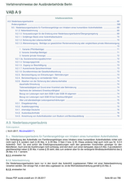 Verfahrenshinweise der Ausländerbehörde Berlin VAB A 9 Inhaltsverzeichnis A.9. Niederlassungserlaubnis .................................................................................................................................................... 69 Änderungsdatum ................................................................................................................................................................ 585 9.0. Niederlassungserlaubnis für Familienangehörige von Inhabern eines humanitären Aufenthaltstitels ....................... 69 9.1.2. Nebenbestimmung ............................................................................................................................................ 69 9.2.1.0. Voraussetzungen für die Erteilung einer Niederlassungserlaubnis/Übergangsregelung ............................... 69 9.2.1.1. fünfjähriger Besitz einer Aufenthaltserlaubnis ................................................................................................ 70 9.2.1.2. Sicherung des Lebensunterhalts ................................................................................................................... 70 9.2.1.3. Altersversorgung - Beiträge zur gesetzlichen Rentenversicherung oder vergleichbare private Altersversorgung ..................................................................................................................................................................................... 70 1 . Variante (Pflichtbeiträge) ................................................................................................................................ 71 2. Variante (freiwillige Beiträge) ........................................................................................................................... 71 3. Variante (private Vorsorge) .............................................................................................................................. 72 9.2.1.3a. Sozialversicherungsabkommen ................................................................................................................... 72 9.2.1.4. Versagungsgründe ......................................................................................................................................... 73 9.2.1.5. Zugang zur Beschäftigung ............................................................................................................................ 73 9.2.1.7. Ausreichende Sprachkenntnisse ................................................................................................................... 73 9.2.1.8. Grundkenntnisse der Gesellschaftsordnung .................................................................................................. 73 9.2.3. Berücksichtigung von Erkrankungen / Behinderungen .................................................................................... 73 9.2.4. Berücksichtigung zu vermeidender Härte ........................................................................................................ 74 9.2.6. Absehen von der Sicherung des Lebensunterhaltes ....................................................................................... 74 dauerhafte Erkrankung ........................................................................................................................................ 74 Teilerwerbstätigkeit auf Grund einer Krankheit oder Behinderung ...................................................................... 74 Nachweis der (teilweisen) Erwerbsunfähigkeit .................................................................................................... 74 Bezug von Leistungen nach dem SGB II oder SGB XII allgemein ...................................................................... 74 Bezug von Leistungen nach SGB XII bei Erwerbsunfähigkeit ............................................................................. 74 Alter und altersbedingte Leistungseinschränkungen ........................................................................................... 75 9.3.1. Ehegattenprivileg ............................................................................................................................................. 75 9.3.2. Ausbildungsprivileg .......................................................................................................................................... 75 9.4.1. ehemalige Deutsche ........................................................................................................................................ 76 9.4.2. Auslandsaufenthalte ........................................................................................................................................ 76 9.4.3. Anrechnung von Aufenthaltszeiten zum Studium und Berufsausbildung ........................................................ 76 A.9. Niederlassungserlaubnis Änderungsdatum ( 16.01.2017; RiLiUmsG2017 ) 9. 0. Niederlassungserlaubnis für Familienangehörige von Inhabern eines humanitären Aufenthaltstitels Die Verfestigung des Aufenthalts von Familienangehörigen eines Inhabers eines humanitären Aufenthaltstitels richtet sich nicht nach § 9, sondern nach § 26 Abs. 4, § 29 Abs. 3 Satz 2 bzw. § 35. Etwas anderes folgt auch nicht aus Nr. 9.2.0 AufenthG- VwV. So sind schon die Erteilungsvoraussetzungen nach den genannten Vorschriften günstiger für den Betroffenen. Auch sind die Ausführungen nicht schlüssig, wird dort doch zum einen behauptet, dass § 9 Abs. 2 grundsätzlich gleichberechtigt neben § 26 Abs. 4 sowie § 35 steht, dies zum anderen aber für die verlängerte Mindestaufenthaltsfrist des § 26 Abs. 4 S. 1 verneint. 9.1.1. einstweilen frei 9.1.2. Nebenbestimmung Die Niederlassungserlaubnis kann nur in den durch das AufenthG zugelassenen Fällen mit einer Nebenbestimmung versehen werden. Der einzige Fall, in dem dies zugelassen ist, ist die Wohnsitzbeschränkung gemäß § 23 Abs. 2. 9.1.3. einstweilen 