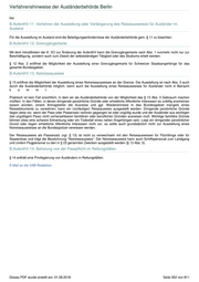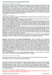 Verfahrenshinweise der Ausländerbehörde Berlin VAB B.AufenthV.1. - 14. Passpflicht für Ausländer Inhaltsverzeichnis B.AufenthV.1. - 14. Passpflicht für Ausländer ............................................................................................................ 545 ........................................................................................................................................................................... 545 B.AufenthV.1. Begriffsbestimmungen ................................................................................................................. 545 B.AufenthV.2. Erfüllung der Passpflicht durch Eintragung in den Pass eines gesetztlichen Vertreters .............. 545 B.AufenthV.3. Zulassung nichtdeutscher amtlicher Ausweise als Passersatz .................................................... 545 B.AufenthV.4. Deutsche Passersatzpapiere für Ausländer ................................................................................. 545 Eintrag "Personalien beruhen auf eigenen Angaben" .................................................................................. 546 Kinderreiseausweise .................................................................................................................................... 546 Reiseausweise für Flüchtlinge ..................................................................................................................... 547 Liste der weiteren Einträge in einen Reiseausweis für Flüchtlinge .............................................................. 547 B.AufenthV.5. Allgemeine Voraussetzungen der Ausstellung des Reiseausweises für Ausländer .................... 547 Unzumutbarkeit der Erfüllung der Wehrpflicht ............................................................................................. 548 Unzumutbarkeit aus anderen Gründen ........................................................................................................ 548 Zumutbarkeit einer Nachregistrierung im Heimatstaat ................................................................................. 549 Zumutbarkeit eines Kopftuchs ..................................................................................................................... 549 Zumutbarkeit von Gebühren ........................................................................................................................ 549 Zumutbarkeit bei drohender Strafverfolgung ............................................................................................... 549 Zumutbarkeit bei Asylgründen ..................................................................................................................... 550 Zumutbarkeit bei subsidiär Schutzberechtigten ........................................................................................... 550 Versagung des Reiseausweises zur Missbrauchsbekämpfung ................................................................... 550 B.AufenthV.6. Ausstellung des Reiseausweises für Ausländer im Inland ........................................................... 551 B.AufenthV.7. Ausstellung des Reiseausweises für Ausländer im Ausland ....................................................... 551 B.AufenthV.8. Gültigkeitsdauer des Reiseausweises für Ausländer ................................................................... 551 B.AufenthV.9. Räumlicher Geltungsbereich des Reiseausweises für Ausländer ............................................... 551 B.AufenthV.10. Sonstige Beschränkungen im Reiseausweis für Ausländer ....................................................... 551 B.AufenthV.11. Verfahren der Ausstellung oder Verlängerung des Reiseausweises für Ausländer im Ausland ...... 552 B.AufenthV.12. Grenzgängerkarte ...................................................................................................................... 552 B.AufenthV.13. Notreiseausweis ......................................................................................................................... 552 B.AufenthV.14. Befreiung von der Passpflicht im Rettungsfällen ....................................................................... 552 B.AufenthV.1. - 14. Passpflicht für Ausländer ( ÄndV AufenthV ; 26.04.2018, 15.06.2018) B.AufenthV.1. Begriffsbestimmungen frei B.AufenthV.2. Erfüllung der Passpflicht durch Eintragung in den Pass eines gesetztlichen Vertreters § 2 enthält eine allgemeine Regelung für alle minderjährigen Ausländer, die in Pässen oder Passersatzpapieren ihrer gesetzlichen Vertreter – zumeist der Eltern - eingetragen sind. Danach können Ausländer, die das 16. Lebensjahr noch nicht vollendet haben, die Passpflicht auch durch Eintragung in den Pass eines gesetzlichen Vertreters erfüllen; ab dem 10. Lebensjahr muss ein Lichtbild des Kindes in einen solchen Pass eingebracht worden sein. Die Eltern sind verpflichtet, dafür zu sorgen, dass ihre Kinder der Passpflicht genügen (§ 80 Abs. 4 AufenthG). Die Ausländerbehörde soll die Eltern auf diese Verpflichtung hinweisen. Zum Erfordernis eines Lichtbildes vgl. auch § 60. B.AufenthV.3. Zulassung nichtdeutscher amtlicher Ausweise als Passersatz frei Dieses PDF wurde erstellt am: 01.08.2018 Seite 545 von 811