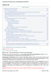 Verfahrenshinweise der Ausländerbehörde Berlin VAB A 25 Inhaltsverzeichnis A.25. Aufenthalt aus humanitären Gründen .............................................................................................................................. 227 (FzNeuG, 08.10.2018, 10.10.2018) ................................................................................................................................... 227 A.25.1. Anerkannte Asylberechtigte ................................................................................................................................... 227 A.25.2. Flüchtlingseigenschaft nach dem Abkommen über die Rechtsstellung der Flüchtlinge (Genfer Flüchtlingskonvention)/Subsidiärer Schutz nach § 4 AsylG ............................................................................................... 228 A.25.3. Abschiebungsverbote gemäß § 60 Abs. 5 oder 7 .................................................................................................. 229 A.25.4. Aufenthaltserlaubnisse aus dringenden humanitären oder persönlichen Gründen oder erheblichem öffentlichen Interesse ............................................................................................................................................................................ 230 A.25.4a. Aufenthaltserlaubnis für Opfer von Menschenhandel .......................................................................................... 231 A.25.4a.0. Allgemeines ............................................................................................................................................. 231 A.25.4a.1. Erteilungsvoraussetzungen ....................................................................................................................... 232 Besondere Voraussetzungen .............................................................................................................................. 232 Regelerteilungsvoraussetzungen ........................................................................................................................ 232 Sperrwirkung ........................................................................................................................................................ 232 Erteilungsdauer .................................................................................................................................................... 233 A.25.4a.3. Verlängerung nach Abschluss des Strafverfahrens .................................................................................. 233 A.25.4a.4. Nebenbestimmungen ................................................................................................................................ 233 A.25.4b. Opfer von ausbeuterischen Arbeitsverhältnissen ................................................................................................ 233 A.25.5. Aufenthaltserlaubnis wegen eines bestehenden Ausreisehindernisses ................................................................ 233 Familiäre Lebensgemeinschaft kann in zumutbarer Weise ausschließlich im Bundesgebiet gelebt werden ............. 234 Patchwork-Familien .................................................................................................................................................... 235 Bestehende familiäre Lebensgemeinschaft i.S.v. Art. 6 GG ....................................................................................... 235 Familiäre Lebensgemeinschaft mit volljährigen ehemals unbegleiteten Ausländern .................................................. 236 Übergeordnete öffentliche Interessen ......................................................................................................................... 236 Erteilung entgegen der Sperrwirkung aus § 11 Abs. 1 AufenthG ............................................................................... 237 A.25.s.1. Beginn und Fortsetzung einer Schul- oder Berufsausbildung bzw. eines Studiums ........................................... 239 Aufnahme eines Studiums während des Besitzes einer Aufenthaltserlaubnis nach § 25 Abs. 4 Satz 1 oder Abs. 4a ..... 239 Aufnahme eines Studiums während des Besitzes einer Aufenthaltserlaubnis nach § 25 Abs. 5 .............................. 239 Fortsetzung des Studiums nach Wegfall des Ausreisehindernisses in den Fällen des § 25 Abs. 5 ........................... 239 A.25. Aufenthalt aus humanitären Gründen (FzNeuG, 08.10.2018, 10.10.2018 ) A.25.1. Anerkannte Asylberechtigte 25.1.0 § 25 Abs. 1 regelt die Rechtsfolge nach Anerkennung als Asylberechtigter. 25.1.1. Die AE ist in den Fällen des § 25 Abs. 1 erstmalig für bis zu drei Jahre und sechs Monate zu erteilen ( vgl. A.26.1. ; zur Frage der Geltungsdauer der Verlängerung der Aufenthaltserlaubnis vgl. A.26.2.1.). Reiseausweise für Flüchtlinge werden für höchstens drei Jahre ausgestellt, sofern die AE für diesen Zeitraum erteilt wird. Der Reiseausweis ist mit einem Chip versehen, in dem das biometrische Merkmal Gesichtsbild gespeichert ist. Eine Verlängerung des Reiseausweises für Flüchtlinge kommt nicht in Betracht, § 58 Satz 2 AufenthV. In eilbedürftigen Fällen kann ein vorläufiger Reiseausweis auf dem bisherigen Muster mit einer Gültigkeitsdauer von bis zu einem Jahr ausgestellt werden. Allerdings sind die jeweiligen Aufkleber mit Personendaten von Kindern nicht mehr zu verwenden. Kinder bis zur Vollendung des 12. Lebensjahres erhalten einen Reiseausweis ohne Speichermedium, der höchstens 6 Jahre gültig sein darf, längstens jedoch bis zur Vollendung des 12. Lebensjahres, § 4 Abs. 1 Satz 3 und 4 AufenthV. Beachte: Mit Schreiben an die Länder vom 01.10.2018 empfiehlt das BMIBH im Interesse der Identifizierung eines Dieses PDF wurde erstellt am: 22.10.2018 Seite 227 von 809