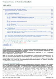 Verfahrenshinweise der Ausländerbehörde Berlin VAB A 25b Inhaltsverzeichnis A.25.b. Aufenthaltsgewährung bei nachhaltiger Integration ...................................................................................................... 245 (Anwendungshinweise des BMI; 15.02.2018, 08.10.2018) ................................................................................................ 245 25.b.0. ................................................................................................................................................................................ 245 25b.1.1. Erteilungsvoraussetzungen .................................................................................................................................. 245 25b.1.2. Regelmäßig zu erfüllende Voraussetzungen ....................................................................................................... 246 25b.1.2.1. Erforderliche Aufenthaltsdauer .................................................................................................................. 246 25b.1.2.2.1. Bekenntnis zur freiheitlich-demokratischen Grundordnung .................................................................... 246 25b.1.2.2.2. Grundkenntnisse der Rechts- und Gesellschaftsordnung und der Lebensverhältnisse im Bundesgebiet ... 247 25b.1.2.3. Überwiegende Lebensunterhaltssicherung ................................................................................................ 247 25b.1.2.4. Sprachkenntnisse ...................................................................................................................................... 248 25b.1.2.5. Schulbesuch .............................................................................................................................................. 248 25b.1.3.1. Absehen von der überwiegenden Lebensunterhaltssicherung bei vorübergehendem Bezug von Sozialleistungen .......................................................................................................................................................... 248 25b.2. Ausschlussgründe ................................................................................................................................................... 249 25b.2.1. Vorsätzliches Verhindern oder Verzögern der Aufenthaltsbeendigung ........................................................ 249 25b.2.2. Vorliegen eines besonders schwerwiegenden oder schwerwiegenden Ausweisungsinteresses im Sinne von § 54 Absatz 1 oder Absatz 2 Nummer 1 und 2 n.F. ....................................................................................................... 250 ............................................................................................................................................................................................ 620 25b.3. Ausnahme von der überwiegenden Lebensunterhaltssicherung und den mündlichen Sprachkenntnissen ........... 251 25b.4. Erleichterte Voraussetzungen für Ehegatten, Lebenspartner und minderjährige Kinder ........................................ 251 25b.5. Aufenthaltsdauer/Nebenbestimmung/Sperrwirkung ................................................................................................ 251 A.25.b. Aufenthaltsgewährung bei nachhaltiger Integration (Anwendungshinweise des BMI; 15.02.2018, 08.10.2018 ) Checkliste § 25b Abs. 1 Checkliste § 25b Abs. 4 25.b.0. Durch die Regelung in § 25b wird eine alters- und stichtagsunabhängige Bleiberechtsregelung geschaffen, um nachhaltige Integrationsleistungen, die trotz des fehlenden rechtmäßigen Aufenthalts von einem Geduldeten erbracht wurden, durch Erteilung eines gesicherten Aufenthaltsstatus zu honorieren. Wenn die Voraussetzungen des § 25b vorliegen, soll die Aufenthaltserlaubnis erteilt werden, d.h. nur in Ausnahmefällen kann von der Titelerteilung abgesehen werden. Merke: Ein Ausnahmefall, der die Versagung der Aufenthaltserlaubnis im Ermessen rechtfertigt, liegt jedenfalls dann vor, wenn der ursprünglich erlaubte Aufenthalt mangels Erfüllung der Erteilungsvoraussetzungen – insbesondere der Regelerteilungsvoraussetzung des § 5 Abs. 1 Nr. 1 - beendet wurde und der Aufenthalt insgesamt nicht überwiegend geduldet gewesen ist. Die Erteilung der Aufenthaltserlaubnis in diesen Fällen würde sonst eine Umgehung der sonstigen aufenthaltsrechtlichen Bestimmungen begünstigen. 25b.1.1. Erteilungsvoraussetzungen Im Zeitpunkt der Beantragung der Aufenthaltserlaubnis nach § 25b Absatz 1 Satz 1 muss der Aufenthalt des Ausländers nach § 60a geduldet sein. Ausländer, deren Aufenthalt nicht geduldet wird, sind vom Anwendungsbereich ausgeschlossen. Denn mit der Neuregelung ist beabsichtigt, jene Ausländer profitieren zu lassen, die langfristig geduldet waren und denen mit der Erteilung eines Aufenthaltstitels nach § 25b nunmehr eine Aufenthaltsperspektive in Deutschland eröffnet werden soll. Zwar wurden zeitliche Gewichtungen bzw. Abstufungen zwischen Duldung, Gestattung und Besitz einer Aufenthaltserlaubnis gesetzlich nicht normiert, eine Titelerteilung in den Fällen, in denen der Ausländer die geforderte Mindestlaufzeit nicht überwiegend als Inhaber einer Duldung verbracht hat, entspricht nicht Sinn und Zweck sowie der Entstehungsgeschichte dieser Norm und scheidet somit aus. Es entspricht - entgegen sonstiger Gewohnheit - durchaus Sinn und Zweck dieser Norm, den nichtlegalen Voraufenthalt hier zu privilegieren. Auch jene Ausländer sind vom Anwendungsbereich der Norm ausgeschlossen, die bereits über längere Zeit einen Aufenthaltstitel (z.B. nach den §§ 16 oder 18) inne hatten und denen insoweit eine Lebensperspektive in Deutschland bereits prinzipiell offen stand. Dieses PDF wurde erstellt am: 22.10.2018 Seite 245 von 809