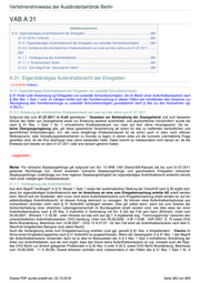 Verfahrenshinweise der Ausländerbehörde Berlin VAB A 32 Inhaltsverzeichnis A.32. Kindernachzug ................................................................................................................................ 287 Änderungsdatum ............................................................................................................................... 611 32.0.1. Allgemeines ........................................................................................................................... 287 32.0.2. Nachweis der Personensorge bzw. Vaterschaftsanerkennungen im Inland ......................... 287 Sorgerechtsübertragung durch ausländische Gerichtsentscheidung ......................................... 288 Aufenthaltsrecht eines Elternteils nach § 28 Abs. 1 S. 1 Nr. 1 oder Nr. 3 ................................. 288 Maßgeblicher Zeitpunkt für Feststellung der Minderjährigkeit .................................................... 289 Aufnahme eines Kindes zu Adoptionsbewerbern ....................................................................... 289 32.1.0. Grundsätzliche Anmerkungen ............................................................................................. 290 Kindernachzug unter 16 Jahren ................................................................................................. 290 32.1.3. Kindernachzug zu Eltern mit einem Aufenthaltsrecht nach §§ 36, 36a .......................... 291 32.2. Sprachkenntnisse .................................................................................................................... 291 32.3. KIndernachzug bei gemeinsamen Sorgerecht und einem im Ausland aufhältlichen Elternteil ...... 291 32.4. Kindernachzug im Ermessen .................................................................................................... 292 32.5. mobile Forscher begleitende minderjährige ledige Kinder ....................................................... 292 A.32. Kindernachzug Änderungsdatum ( 31.07.2018, FzNeuG; 13.09.2018 ) 32.0.1. Allgemeines Der Nachzug setzt in allen Fällen des § 32 voraus, dass das Kind nicht verheiratet, geschieden oder verwitwet ist und das 18. Lebensjahr noch nicht vollendet hat (vgl. § 80 Absatz 3 Satz 1; hiervon abweichende Volljährigkeitsgrenzen nach dem Recht der Herkunftsstaaten sind unerheblich). Darüber hinaus kommt ein Kindernachzug nur nach § 36 Absatz 2 in Fällen einer außergewöhnlichen Härte im Ermessenswege in Betracht (zur Geltungsdauer vgl. A.7.2.3.1.). Merke: Der Kindernachzug zu einem alleinsorgeberechtigten Elternteil oder Eltern, die als subsidiär Schutzberechtigte Inhaber einer Aufenthaltserlaubnis nach § 25 Abs. 2 S. 1 2. Alt. sind, richtet sich seit Inkrafttreten des Gesetzes zur Neuregelung des Familiennachzugs zu subsidiär Schutzberechtigten grundsätzlich nach § 36a (zu den Ausnahmen s. A.36a.). Der Kindernachzug richtet sich allerdings weiterhin nach § 32, sofern ein personensorgeberechtigter Elternteil einen der in § 32 Abs. 1 aufgeführten Aufenthaltstitel besitzt, während der andere sorgeberechtigte Elternteil im Besitz einer Aufenthaltserlaubnis nach § 25 Abs. 2 S. 1 2. Alt. ist. In den Fällen, in denen das (Geschwister-) Kind zeitgleich mit beiden Eltern oder einem allein personensorgeberechtigten Elternteil zu einem minderjährigen unbegleiteten Ausländer nachzieht, der als Asylberechtigter, Flüchtling oder subsidiär Schutzberechtigter anerkannt ist, beachte die Ausführungen unter A.32.1.3. 32.0. 2. Nachweis der Personensorge bzw. Vaterschaftsanerkennungen im Inland Für den Nachweis der Personensorge bzw. Vaterschaftsanerkennungen im Inland gilt folgendes: Bei nicht-ehelichen Kindern kann die Vaterschaft durch öffentliche Beurkundung sowohl durch den Notar, das Amtsgericht, den Standesbeamten, das Jugendamt als auch durch das Gericht, bei dem die Vaterschaftsanerkennung anhängig ist, erfolgen (so § 1597 Abs. 1 BGB, der jede öffentliche Beurkundung genügen lässt). Zwar ist die Vaterschaft mit der öffentlichen Beurkundung gültig, ohne dass es auf die Beischreibung im Geburtenbuch durch den Standesbeamten ankommt (§ 1597 Abs. 2 BGB hat keinen Einfluss auf die Gültigkeit), grundsätzlich ist aber zum Nachweis der Vaterschaft die Beischreibung abzuwarten und die Vorlage einer entsprechenden Geburtsurkunde, aus der der Vater des Kindes hervorgeht, zu verlangen . Ausreichend ist auch ein Auszug aus dem Geburtenregister, der die Vaterschaft belegt, soweit die dort verzeichneten Personalien mit den nachgewiesenen Personalien übereinstimmen. Dies deshalb, weil eine Anerkennung erst dann wirksam wird, wenn auch die Mutter des Kindes oder - wenn dieser die elterliche Sorge insoweit nicht zusteht - auch das Kind der Anerkennung zugestimmt haben (vgl. § 1595 BGB). Außerdem ist die Anerkennung nur wirksam, wenn nicht die Vaterschaft eines anderen Mannes besteht (§ 1594 BGB) und kann – etwa bei Dieses PDF wurde erstellt am: 22.10.2018 Seite 287 von 809