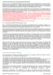 Verfahrenshinweise der Ausländerbehörde Berlin VAB B.AufenthV.1. - 14. Passpflicht für Ausländer Inhaltsverzeichnis B.AufenthV.1. - 14. Passpflicht für Ausländer ............................................................................................................ 541 ........................................................................................................................................................................... 541 B.AufenthV.1. Begriffsbestimmungen ................................................................................................................. 541 B.AufenthV.2. Erfüllung der Passpflicht durch Eintragung in den Pass eines gesetztlichen Vertreters .............. 541 B.AufenthV.3. Zulassung nichtdeutscher amtlicher Ausweise als Passersatz .................................................... 541 B.AufenthV.4. Deutsche Passersatzpapiere für Ausländer ................................................................................. 541 Eintrag "Personalien beruhen auf eigenen Angaben" .................................................................................. 542 Kinderreiseausweise .................................................................................................................................... 542 Reiseausweise für Flüchtlinge ..................................................................................................................... 543 Liste der weiteren Einträge in einen Reiseausweis für Flüchtlinge .............................................................. 543 B.AufenthV.5. Allgemeine Voraussetzungen der Ausstellung des Reiseausweises für Ausländer .................... 543 Unzumutbarkeit der Erfüllung der Wehrpflicht ............................................................................................. 544 Unzumutbarkeit aus anderen Gründen ........................................................................................................ 545 Zumutbarkeit einer Nachregistrierung im Heimatstaat ................................................................................. 545 Zumutbarkeit eines Kopftuchs ..................................................................................................................... 546 Zumutbarkeit von Gebühren ........................................................................................................................ 546 Zumutbarkeit bei drohender Strafverfolgung ............................................................................................... 546 Zumutbarkeit bei Asylgründen ..................................................................................................................... 546 Zumutbarkeit bei subsidiär Schutzberechtigten ........................................................................................... 547 Versagung des Reiseausweises zur Missbrauchsbekämpfung ................................................................... 547 B.AufenthV.6. Ausstellung des Reiseausweises für Ausländer im Inland ........................................................... 548 B.AufenthV.7. Ausstellung des Reiseausweises für Ausländer im Ausland ....................................................... 548 B.AufenthV.8. Gültigkeitsdauer des Reiseausweises für Ausländer ................................................................... 548 B.AufenthV.9. Räumlicher Geltungsbereich des Reiseausweises für Ausländer ............................................... 548 B.AufenthV.10. Sonstige Beschränkungen im Reiseausweis für Ausländer ....................................................... 549 B.AufenthV.11. Verfahren der Ausstellung oder Verlängerung des Reiseausweises für Ausländer im Ausland ...... 549 B.AufenthV.12. Grenzgängerkarte ...................................................................................................................... 549 B.AufenthV.13. Notreiseausweis ......................................................................................................................... 549 B.AufenthV.14. Befreiung von der Passpflicht im Rettungsfällen ....................................................................... 549 B.AufenthV.1. - 14. Passpflicht für Ausländer ( ÄndV AufenthV ; 09.08.2018; 15.10.2018) B.AufenthV.1. Begriffsbestimmungen frei B.AufenthV.2. Erfüllung der Passpflicht durch Eintragung in den Pass eines gesetztlichen Vertreters § 2 enthält eine allgemeine Regelung für alle minderjährigen Ausländer, die in Pässen oder Passersatzpapieren ihrer gesetzlichen Vertreter – zumeist der Eltern - eingetragen sind. Danach können Ausländer, die das 16. Lebensjahr noch nicht vollendet haben, die Passpflicht auch durch Eintragung in den Pass eines gesetzlichen Vertreters erfüllen; ab dem 10. Lebensjahr muss ein Lichtbild des Kindes in einen solchen Pass eingebracht worden sein. Die Eltern sind verpflichtet, dafür zu sorgen, dass ihre Kinder der Passpflicht genügen (§ 80 Abs. 4 AufenthG). Die Ausländerbehörde soll die Eltern auf diese Verpflichtung hinweisen. Zum Erfordernis eines Lichtbildes vgl. auch § 60. B.AufenthV.3. Zulassung nichtdeutscher amtlicher Ausweise als Passersatz frei Dieses PDF wurde erstellt am: 22.10.2018 Seite 541 von 809