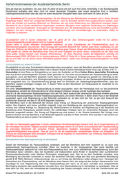 Verfahrenshinweise der Ausländerbehörde Berlin B.AufenthV.4. Deutsche Passersatzpapiere für Ausländer Die Reiseausweise für Ausländer, Flüchtlinge und Staatenlose werden seit 01.11.2007 grundsätzlich durch die Bundesdruckerei gedruckt. Seit dem 29.06.2009 sind dabei der Bundesdruckerei neben dem Lichtbild auch Fingerabdrücke des künftigen Reiseausweisinhabers zu übermitteln, was ausschließlich auf elektronischem Weg erfolgt. Bei der Aushändigung durch die ABH ist der Betroffene durch ein entsprechendes Hinweisblatt darauf aufmerksam zu machen, dass eine Neuausstellung rechtzeitig vor Ablauf (d.h. 10 Wochen vorher) zu beantragen ist. Zu beachten ist, dass eine Verlängerung des Reiseausweises mit biometrischen Merkmalen nicht möglich ist. Die Ausstellung eines Reiseausweises ohne Speichermedium als "vorläufiger Reiseausweis" kommt nur ausnahmsweise in Betracht (insofern zu eng Nr. 3.3.1.10. AufenthG-VwV). Die Gültigkeitsdauer darf ein Jahr nicht überschreiten, hierin ist eine etwaige Verlängerung bereits eingerechnet. Eintrag "Personalien beruhen auf eigenen Angaben" Gemäß § 4 Abs. 6 Satz 1 kann der Eintrag „Personalien beruhen auf eigenen Angaben“ in den Reiseausweis für Ausländer genommen werden. Bei der Entscheidung, ob der Eintrag vorgenommen wird, handelt es sich um eine Ermessensentscheidung. Das Ermessen ist in der Regel zugunsten des Eintrags auszuüben, wenn keinerlei belastbare Identitätsnachweise vorliegen, z.B. wenn im Asylverfahren keinerlei Identitätsnachweise vorgelegt werden und subsidiärer Schutz zuerkannt wird. Gemäß § 4 Abs. 6 Satz 2 kann der Eintrag auch in einem Reiseausweis für Staatenlos bzw. Flüchtlinge vorgenommen werden, wenn ernsthafte Zweifel an den Identitätsangaben des Antragstellers bestehen. Für ernsthafte Zweifel an den Angaben reicht der bloße Umstand, dass keinerlei Identitätsnachweise vorgelegt wurden nicht. Vielmehr müssen konkrete Anhaltspunkte, z.B. bei einer polizeilichen Kontrolle aufgefundene Urkunden, die auf eine andere Identität hindeuten, vorliegen. Kinderreiseausweise Kinder bis zur Vollendung des 12. Lebensjahres erhalten einen Reiseausweis ohne Speichermedium, der höchstens 6 Jahre, längstens jedoch bis zur Vollendung des 12. Lebensjahres, gültig sein darf. Daraus folgt, dass Kinder nicht mehr in die Reiseausweise ihrer Eltern eingetragen werden. § 4 Abs. 1 S. 3 2.HS sieht auch die Möglichkeit der Ausgabe von Passersatzpapieren mit Speichermedium an Kinder vor Vollendung des 12. Lebensjahres in begründeten Fällen vor, Anwendungsfälle hierfür werden insbesondere bei nachgewiesenen Reisen oder neu auszustellendem Reiseausweis kurz vor dem 12. Geburtstag gesehen. Erlaubt ist eine Antragsentgegennahme von bis zu sechs Monaten vor diesem Datum. Aus Gründen der Verwaltungseffizienz kann für Kinder ab Vollendung des 6. Lebensjahres ein Passersatzpapier mit Speichermedium ausgestellt werden, sofern sie einen elektronischen Aufenthaltstitel erhalten. Auch die Kinderreiseausweise sind mit einem Lichtbild zu versehen; dies gilt unabhängig vom Lebensalter des Kindes, also auch bei einem Säugling. Zu den besonderen Anforderungen an Lichtbilder von Kindern, Kleinkindern und Säuglingen wird auf die von der Bundesdruckerei herausgegebene Foto-Mustertafel für Personaldokumente verwiesen. Soll im Ausnahmefall ein biometrischer Reiseausweis für ein Kind unter 6 Jahren ausgestellt werden, sind keine Fingerabdrücke zu nehmen. Kinderreiseausweise, die vor dem 01.11.2007 ohne Lichtbild ausgestellt wurden, behalten nach der Übergangsregelung des § 18 Abs. 1 der Verordnung zur Durchführung des Passgesetzes vom 19.10.2007 für den jeweiligen Gültigkeitszeitraum ihre Geltung. Merke: Der Pass muss vom Kind unterschrieben werden, wenn es zum Zeitpunkt der Beantragung des Passes das 10. Lebensjahr vollendet hat. Dieses PDF wurde erstellt am: 22.10.2018 Seite 542 von 809
