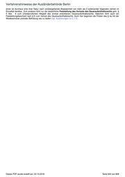 Verfahrenshinweise der Ausländerbehörde Berlin einen ist durchaus eine ihrer Natur nach vorübergehende Abwesenheit von mehr als 2 aufeinander folgenden Jahren im Einzelfall denkbar. Zum anderen führt nur die tatsächliche Feststellung des Verlusts des Daueraufenthaltsrechts gem. § 5 Abs. 6 zum unwiderruflichen Wegfall des einmal erworbenen Daueraufenthaltsrechts. Natürlich führt auch ein Feststellungsbescheid nach § 6 zum Verlust des Daueraufenthaltsrechts. Auch hier beginnen die Fristen des § 4a mit der Wiedereinreise und/oder Befristung neu zu laufen (vgl. Ausführungen zu C.7.2) . Dieses PDF wurde erstellt am: 22.10.2018 Seite 644 von 809