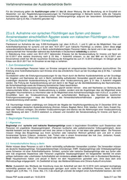 Verfahrenshinweise der Ausländerbehörde Berlin grds. zentral über das Grenzdurchgangslager Friedland (Niedersächsisches Zentrum für Integration) oder Bramsche für die Dauer von 14 Tagen erstaufzunehmen und von dort aus vom BAMF zu verteilen. Ausgenommen sind unbegleitete Minderjährige und Schwerstkranke. 1.6. Personen, die eigenständig einreisen, werden vom BAMF auf der Grundlage des Königsteiner Schlüssels (s. auch nachfolgend 1.8.) bei der Verteilentscheidung berücksichtigt. Die Aufnahmezusage und die Ausnahme von der Passpflicht sind bei eigenständig einreisenden Personen ab Bekanntgabe drei Monate gültig und erlöschen, wenn in diesem Zeitraum die Einreise nach Deutschland nicht erfolgt ist. 1.7. Personen, die schwerstkrank oder minderjährig sind und ohne Familienangehörige aufgenommen werden, werden zwar in die Verteilung einbezogen; in solchen Fällen klärt das BAMF vor der Einreise unter Berücksichtigung der jew. Anzahl bereits erfolgter Aufnahmen, welches Land zur Aufnahme einer schwerstkranken Person und ihrer Familienangehörigen bzw. eines unbegleiteten Minderjährigen in der Lage ist. Die Personen werden von einem Vertreter des aufnehmenden Landes unmittelbar nach Ankunft vom Zielflughafen zum Zielort begleitet. Unbegleitete Minderjährige werden anschließend durch das zuständige Jugendamt am Zielort in Obhut genommen. 1.8. Die Verteilung der ausgewählten Personen erfolgt nach Maßgabe des Königsteiner Schlüssels (Berlin 5,07 % für 2013) und unter Berücksichtigung familiärer und sonstiger Bindungen nach Deutschland (s. dazu auch nachfolgend 2.). § 24 Abs. 3 bis 5 AufenthG findet Anwendung, d.h. u.a., dass aufgenommene Flüchtlinge keinen Anspruch darauf haben, sich an einem bestimmten Ort aufzuhalten, ein Widerspruch gegen die Zuweisungsentscheidung nicht stattfindet und eine Klage keine aufschiebende Wirkung hat. 2. Begünstigter Personenkreis Die Auswahl der Flüchtlinge durch das BAMF orientiert sich an: a) Humanitären Kriterien Besonders schutzbedürftige Kinder mit ihren Eltern bzw. Personensorgeberechtigten unter Wahrung der Familieneinheit, medizinischer Bedarf; hier liegt die Obergrenze bei 3 %, Frauen in prekären Lebenssituationen, Angehörige religiöser Minderheiten, sofern eine spezifische religionsbezogene Verfolgungssituation vorliegt. Voraussetzung für eine Aufnahme nach humanitären Kriterien ist eine bis zum 31.03.2013 erfolgte Registrierung beim UNHCR oder Caritas im Libanon. b ) Bezügen zu Deutschland wie Familiäre Bindungen, Voraufenthalte, Sprachkenntnisse, sonstige Bindungen nach Deutschland, insbesondere aufnahmebereite Institutionen syrischer religiöser Minderheiten. Dabei sollen vorrangig Personen berücksichtigt werden, für die Verpflichtungserklärungen abgegeben wurden oder die Bereitschaft erklärt wurde, bei ihrer Unterbringung und Lebensunterhaltssicherung einen Beitrag zu leisten. c) Fähigkeit, nach Konfliktende einen besonderen Beitrag zum Wiederaufbau des Landes zu leisten, etwa durch die Möglichkeit, vorhandene Qualifikationen während des Aufenthalts in Deutschland zu erhalten und auszubauen, wenn diese Mglichkeit am Fluchtort nicht besteht. Die Aufnahme setzt nicht die Erfüllung mehrerer Kriterien voraus. 3. Ausschlussgründe Ausgeschlossen sind grundsätzlich Personen, die wegen Delikten, die in Deutschland als vorsätzliche Straftat anzusehen sind, verurteilt worden sind oder bei denen tatsächliche Anhaltspunkte die Schlussfolgerung rechtfertigen, dass Verbindungen zu kriminellen Organisationen oder terroristischen Vereinigungen bestehen oder bestanden haben oder dass sie in sonstiger Weise Bestrebungen verfolgen oder unterstützen oder unterstützt haben, die gegen den Gedanken der Völkerverständigung verstoßen oder gegen das friedliche Zusammenleben der Völker gerichtet sind. 4. Erteilung und Verlängerung des Aufenthaltstitels im Inland 4.1. Im Rahmen des Aufnahmeverfahrens findet eine Überprüfung der Personen im Visumverfahren durch die Sicherheitsbehörden statt. Eine Beteiligung der Sicherheitsbehörden im Inland ist damit erst vor der Verlängerung der Dieses PDF wurde erstellt am: 19.03.2018 Seite 214 von 799
