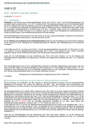 Verfahrenshinweise der Ausländerbehörde Berlin Die Aufenthaltserlaubnis berechtigt zur Ausübung einer Erwerbstätigkeit (§ 22 S. 3). 22.3. einstweilen frei Dieses PDF wurde erstellt am: 30.04.2018 Seite 202 von 796