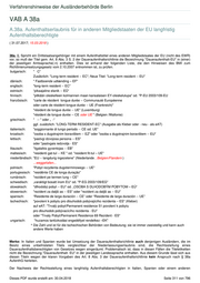 Verfahrenshinweise der Ausländerbehörde Berlin VAB A 38a A.38a. Aufenthaltserlaubnis für in anderen Mitgliedstaaten der EU langfristig Aufenthaltsberechtigte ( 31.07.2017; 15.03.2018 ) 38a. 0. Spricht ein Drittstaatsangehöriger mit einem Aufenthaltstitel eines anderen Mitgliedstaates der EU (nicht des EWR) vor, so muß der Titel gem. Art. 8 Abs. 3 S. 2 der Daueraufenthaltsrichtlinie die Bezeichnung "Daueraufenthalt-EU" in (einer) der jeweiligen Amtssprache(-n) enthalten. Dies ist anhand der folgenden Liste, die den Hinweisen des BMI zum Richtlinienumsetzungsgesetz vom 2.10.2007 entnommen ist, zu prüfen. bulgarisch: " C" Zusätzlich: "Long-term resident -- EC"; Neue Titel: "Long-term resident -- EU" dänisch: " Fastboende udlænding – EF" englisch: "long-term resident -- EC" estnisch: “pikaajaline elanik -- EÜ“ finnisch: "pitkään oleskelleen kolmannen maan kansalaisen EY-oleskelulupa" od. "P-EU 2003/109-EU französisch: "carte de résident longue durée -- Communauté Européenne oder carte de résident longue durée -- UE (Frankreich)" "résident de longue durée -- UE" (Luxemburg) "résident de longue durée -- CE oder UE " (Belgien /Wallonie) griechisch: " -- " oder „ -“ ggf. zusätzlich: "LONG-TERM RESIDENT-EC" (Ausgabe als Kleber oder - neu - als eAT) italienisch: "soggiornante di lungo periodo -- CE od. UE" kroatisch: "osoba s dugotrajnim boravištem -- EZ" oder "osoba s dugotrajnim boravištem -- EU" lettisch: "pastvgi dzvojosa persona -- ES" oder "pastvgais iedzvotjs - ES" litauisch: "ilgalaikis gyventojas -- EB" maltesisch: "residenti gat-tul -- KE " od. "resident fit-tul – UE" niederländisch: "EU -- langdurig ingezetene" (Niederlande , Belgien/Flandern ) ...weggefallen... polnisch: "Pobyt rezydenta dugoterminowego -- UE" portugiesisch: "residênte CE de longa duração" rumänisch: "rezident pe termen lung – CE" schwedisch: „varaktigt bosatt inom EU“ od. "P-EG 2003/109/EG" slowakisch: "dlhodobý pobyt -- EU" od. „OSOBA S DLHODOBÝM POBYTOM – EÚ“ slowenisch: "rezident za daljši as -- ES" oder "rezident za daljši as -- EU" spanisch: “Residente de larga duración -- CE” oder “Residente de larga duración -- UE” tschechisch: "povolení k pobytu pro dlouhodob pobývajícího rezidenta – ES" (Kleber) auf eAT: "Trvalý pobyt/Permanent residence 51 povolení k pobytu pro dlouhodob pobývacícího rezidenta - EU" oder "Trvaly Pobyt/Permanent Residence 69 Rezident - ES" ungarisch: "huzamos tartózkodási engedéllyel rendelkez –EK" * Die Zahl und ist für die tschechischen Behörden von Bedeutung; sie ist immer zweistellig und kann auch andere Werte haben Merke: In Italien und Spanien wurde bei Umsetzung der Daueraufenthaltsrichtlinie auch denjenigen Ausländern, die im Besitz eines unbefristeten Titels vergleichbar der Niederlassungserlaubnis sind, die Rechtsstellung eines Daueraufenthaltsberechtigten von Gesetzes wegen eingeräumt. Problematisch ist, dass in diesen Fällen die Titeletiketten nicht die Bezeichnung "Daueraufenthalt- EU" in der jeweiligen Landessprache enthalten. Aus diesem Grunde lässt sich aus diesen Titeln wegen der klaren Vorgaben des Art. 8 Abs. 3 der Daueraufenthaltsrichtlinie kein Anspruch nach § 38a AufenthG herleiten. Der Nachweis der Rechtsstellung eines langfristig Aufenthaltsberechtigten in Italien, Spanien oder einem anderen Dieses PDF wurde erstellt am: 30.04.2018 Seite 311 von 796