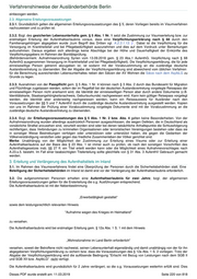 Verfahrenshinweise der Ausländerbehörde Berlin 23a.2.1.8. Verlängerung der Aufenthaltserlaubnis Zur Verlängerung der AE nach § 23a gilt , auch wenn die AE in einem anderen Bundesland erteilt wurde, Folgendes: Eine nach § 23a erteilte AE wird auch nach § 23a verlängert, solange keine Erteilung einer Niederlassungserlaubnis nach § 26 Abs. 4 in Betracht kommt (vgl. § 8 Abs. 1). Kommt eine Verlängerung nicht in Betracht, etwa weil der Betroffene zwischenzeitlich Ausweisungsgründe gesetzt hat, so ist die Möglichkeit der Erteilung eines Titels nach § 25 Abs. 4 oder 5 zu prüfen. Hat der Betroffene nach der Ersterteilung Ausweisungsgründe oberhalb der Schwelle des § 25 a Abs. 3 gesetzt, so kommt eine Verlängerung für diesen nicht in Betracht. Ehegatten, Lebenspartner einer gleichgeschlechtlichen Lebensgemeinschaft und minderjährige ledige Kinder sollten nicht von dem Fehlverhalten betroffen sein und grundsätzlich den Titel verlängert bekommen. Dies gilt nicht bei minderjährigen ledigen Kindern von Alleinerziehenden. Hier folgt das aufenthaltsrechtliche Schicksal dem allein personensorgeberechtigten Elternteil. Soweit vorgegebene Vorbehalte für die Verlängerung insbesondere bzgl. der Arbeitsaufnahme und/oder Lebensunterhaltssicherung nicht erfüllt werden, ist dies für junge Erwachsene immer unbeachtlich, wenn sich der Betroffene (bei Familien mindestens ein Elternteil) in einer Ausbildung befindet, die zu einem anerkannten schulischen oder beruflichen Bildungsabschluss oder einen Hochschulabschluss führt (sofern die Betroffenen erwerbstätig sind, genügt auch der Besuch einer Abendschule; Verlängerung für die Dauer der Ausbildung plus drei Monate, max. 2 Jahre); oder er einer Vollerwerbstätigkeit nachgeht (mind. 35 Wochenstunden, wobei auch verschiedene Tätigkeiten ausgeübt werden können), das Einkommen aber zur Sicherung der Bedarfsgemeinschaft nicht genügt (bei befristeten Verträgen oder während der Probezeit Verlängerung für die Dauer des Arbeitsvertrages bzw. der Probezeit plus drei Monate; im Übrigen regelmäßig drei Jahre) und dies auf Änderungen der persönlichen Verhältnisse (Eheschließung, Geburt eines Kindes) zurückzuführen ist. Eine Verlängerung erfolgt auch bei Alleinerziehenden, wenn und solange ein Kind unter zwei Jahren betreut wird bzw. bei zwei Elternteilen, wenn einer vollerwerbstätig ist (zur Begrifflichkeit s.o.; Verlängerung bis zur Vollendung des zweiten Lebensjahres plus drei Monate). War der Inhaber eines Titels nach § 23 a bei der Ersterteilung ledig und minderjährig, ohne dass eine Vorgabe zur Sicherung des Lebensunterhalts oder eine sonstige Vorgabe gemacht wurde und ist er nunmehr volljährig, erfolgt eine Verlängerung, wenn er im Bundesgebiet aufgewachsen ist, hier einen anerkannten schulischen oder beruflichen Bildungsabschluss erworben hat und der Betroffene innerhalb von sechs Monaten nachweislich eine Beschäftigung oder einen Ausbildungs- oder Studienplatz in Aussicht hat, oder sich nachweislich – etwa durch Vorlage von Bewerbungsschreiben, den Nachweis von Vorstellungsgesprächen und/oder Teilnahme an berufsvorbereitenden oder –qualifizierenden Maßnahmen – kontinuierlich um eine Beschäftigung oder einen Ausbildungsplatz bemüht oder ein Vertrag über eine laufende oder demnächst zu beginnende berufsvorbereitende Maßnahme vorgelegt wird (bei berufsvorbereitenden Maßnahmen muss sich aus dem Vertrag der Inhalt und die Dauer der Maßnahme ergeben sowie ersichtlich sein, bis wann mit einer Entscheidung über die anschließende Aufnahme der eigentlichen Berufsausbildung zu rechnen ist), oder der Lebensunterhalt vollständig gesichert werden kann. Gleiches gilt, wenn der Ausländer noch keinen anerkannten schulischen oder beruflichen Bildungsabschluss erworben hat, sich aber aktuell in einer solchen Ausbildung befindet. Im Übrigen wird die Verlängerung nach dem üblichen Verfahren, d.h. mit schriftlicher Anhörung, versagt (zur Anwendung des § 35 Abs. 4 Satz 2 bzw. Abs. 5 s.u.). Der Betroffene kann sich bezüglich der Äußerung zu den für die Entscheidung erheblichen Tatsachen auch eines Mitgliedes der Härtefallkommission oder eines sonstigen Bevollmächtigten bedienen. Alle Vorschläge zu versagenden Entscheidungen werden vor Abgang der Referats- oder Abteilungsleitung m.d.B. um Billigung/Entscheidung vorgelegt. Bis zur Entscheidung erhalten die Betroffenen eine Fiktionsbescheinigung für 2 Monate. Gegen versagende Bescheide kann Fachaufsichtsbeschwerde bei der Senatsverwaltung für Inneres und Sport eingelegt werden. Die Einlegung der Beschwerde rechtfertigt weder die Erteilung einer Fiktionsbescheinigung noch einer Duldung. Besondere Umstände des Einzelfalls, die die Versagung zu einer außergewöhnlichen Härte machten oder zu nicht zu vertretenden Ausreisehindernissen führen, wird ggf. durch Erteilung eines Titels gem. § 25 Abs. 4 Satz 2 bzw. § 25 Abs. 5 Rechnung getragen. In diesen Fällen bedarf es keiner Vorlage an die Referats- oder Abteilungsleitung bzw. die zu schaffende zentrale Stelle. ' 23a.2.2 . bis 23a.3.2. frei Dieses PDF wurde erstellt am: 11.03.2019 Seite 228 von 818