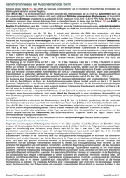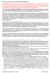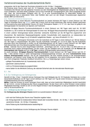 Verfahrenshinweise der Ausländerbehörde Berlin Ausnahmegrund Gebührenfrei a) höhere Gewalt oder Kurzfristig keine Flugverbindungen wegen Wetterverhältnissen oder Streiks, humanitäre Gründe Reiseunfähigkeit des Visuminhabers oder plötzliche schwere Erkrankung, Tod oder ein anderes Besorgnis erregendes Ereignis von nahen Familienangehörigen (nach Art. 33 Abs. 1 Visakodex wird das Visum verlängert) Dringende geschäftliche oder berufliche Gründe, die vor der Einreise nicht 30 Euro b) schwerwiegende abschätzbar waren' persönliche Gründe (nach Art. 33 Abs. 2 Visakodex kann das Visum verlängert werden) c) Visum wurde nicht Visuminhaber ist verspätet in die Bundesrepublik Deutschland oder einen anderen 30 Euro voll ausgenutzt Schengenstaat eingereist Wenn diese Ausnahmegründe vorliegen, kann die Gültigkeit eines für einen kürzeren Zeitraum als 90 Tagen erteilten Visums für eine Aufenthaltsdauer von höchstens 90 Tage in einem Zeittraum von 180 Tagen von dem Tag der ersten Einreise an verlängert werden, vorausgesetzt, dass der Lebensunterhalt während der Dauer des beabsichtigten Aufenthalts gesichert ist (Ausnahme: Bei der Verlängerung wegen einer verspäteten Einreise ist kein neuer Unterhaltsnachweis erforderlich). Die Aufnahme einer Erwerbstätigkeit ist durch Auflage auszuschließen, sofern die Auslandsvertretung die Auflage nicht bereits verfügt hatte. Das für die Angehörigen bestimmter Staaten bzw. Inhaber bestimmter Pässe bestehende "Konsultationsverfahren" nach Art. 22 Visakodex sieht vor, dass die zentralen Behörden von der ausstellenden Auslandsvertretung zu konsultieren sind. Diese Konsultation erfolgt grds. über das Visainformationssystem - VIS - per VIS-Mail. (s. hierzu nachfolgend 6.s.2.). In den Fällen des Art. 22 Visakodex darf ein Visum nur in besonderen Ausnahmefällen und in der Regel nur als nationales Visum mit dem Zusatz auf einem gesonderten Etikett "Gilt nicht für die anderen Schengenstaaten" verlängert werden. Wird ein solches Visum aus besonderen Gründen ausnahmsweise nicht als nationales Visum verlängert, ist bis auf weiteres - so eine Unterrichtung über VIS-Mail noch nicht möglich ist - wie bisher in den Fällen, in denen ein anderer Staat das Schengen-Visum ausgestellt hat, das Auswärtige Amt, Postfach 11 48, 53001 Bonn, zu unterrichten, das die zentrale Behörde des visumsausstellenden Staates informiert. Die Mitteilung muss die Personalien, Art und Nummer des Reisedokuments, Nummer der Visamarke, Visakategorie, Datum und Ort der Visumsstellung und die verlängerte Gültigkeits- und Aufenthaltsdauer enthalten. Die Verlängerung eines C-Visums als C-Visum erfolgt auf dem dafür vorgesehenen Klebeetikett. Beim Ausfüllen des Etiketts ist folgendes zu beachten: In dem Feld "Dauer des Aufenthalts ...Tage" ist die Zahl der Tage, um die das Visum verlängert wird, mit zwei Ziffern anzugeben, bei Verlängerung um weniger als 10 Tage ist die erste Ziffer eine Null. Gleiches gilt für die Eintragung des Datums im Feld "Gültigkeitsdauer", wobei Tages-, Monats- und Jahreszahl (zweistellig) mit Bindestrichen getrennt werden (z.B. 15-04-10). Die Felder betr. die räumliche Gültigkeit, die Zahl der Einreisen und die Art des Visums sind in der Regel entsprechend den Eintragungen in dem ursprünglichen Visum auszufüllen. Werden eine oder mehrere zusätzliche Einreise(n) gestattet, ist auch diese Zahl zweistellig einzutragen. Die Erwerbstätigkeit ist durch Auflage auszuschließen. Die Gesamtgültigkeit als "C-Visum" darf 90 Tage pro Halbjahr nicht überschreiten. Bei Verlängerung des C-Visums bis zu 3 Monaten mit Beschränkung auf einen Teil des Schengenraumes ist in dem Feld "gültig für" unter Nennung der ausgenommenen Schengenstaaten einzutragen: "mit Ausnahme von ...". Bei Beschränkung des C-Visums auf die Bundesrepublik Deutschland ist das Länderkennzeichen "DE" einzutragen. In dem Feld "Visumkategorie" jeweils der Buchstabe "C". Eine etwaige räumliche Beschränkung eines Visums ist nicht zu streichen, weil in diesen Fällen davon auszugehen ist, dass die Einreisevoraussetzungen nach Art. 6 Abs. 1 Grenzkodex nicht erfüllt waren und das Visum für den angegebenen Staat nur ausnahmsweise erteilt wurde. Alle Angaben sind auf dem Etikett aufzudrucken. Handschriftliche Änderungen dürfen nicht vorgenommen werden. Wird auf Dieses PDF wurde erstellt am: 11.03.2019 Seite 53 von 818