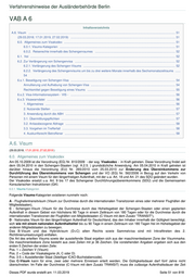 Verfahrenshinweise der Ausländerbehörde Berlin VAB A 6 Inhaltsverzeichnis A.6. Visum .............................................................................................................................................................................. 51 (29.03.2018; 17.01.2019, 27.02.2019) ............................................................................................................................ 51 6.0. Allgemeines zum Visakodex .................................................................................................................................... 51 6.0.1. Visums-Kategorien ......................................................................................................................................... 51 6.0.2. Reiserechte innerhalb des Schengenraumes ............................................................................................... 52 6.1. frei ............................................................................................................................................................................ 52 6.2. Zur Verlängerung von Schengenvisa ....................................................................................................................... 52 6.2.1. Verlängerung des Schengen-Visums ............................................................................................................. 52 6.2.2. Verlängerung des Schengenvisums um bis zu drei weitere Monate innerhalb des Sechsmonatszeitraums ...... 54 6.s.1. Beseitigung von Schengen-Visa ............................................................................................................................ 54 Annullierung und Aufhebung von Schengen-Visa .................................................................................................... 54 Rechtsmittel gegen Beseitigung eines Visums ........................................................................................................ 55 6.s.2. Visa-Informationssystem - VIS - ............................................................................................................................ 56 6.s.3. Visawarndatei ........................................................................................................................................................ 56 1. Allgemeines .......................................................................................................................................................... 56 2. Nutzende Stellen .................................................................................................................................................. 57 3. Anwendung durch die ABH .................................................................................................................................. 57 3.1. Übermittlungspflichten ....................................................................................................................................... 57 3.2. Anlassbezogene Abfrage .................................................................................................................................. 58 3.3. Vorgehen im Trefferfall ...................................................................................................................................... 58 4. Auskunftsrecht Betroffener ................................................................................................................................... 58 A.6. Visum (29.03.2018; 17.01.2019, 27.02.2019 ) 6.0. Allgemeines zum Visakodex Am 05.10.2009 ist die Verordnung (EG) Nr. 810/2009 - der sog. Visakodex - in Kraft getreten. Diese Verordnung findet seit dem 05.04.2010 in den Schengen-Staaten (vgl. A.2.5. ) grundsätzliche Anwendung. Am 05.04.2010 in Kraft getreten ist darüber hinaus die Verordnung (EU) Nr. 265/2010 vom 25.03.2010 zur Änderung des Übereinkommens zur Durchführung des Übereinkommens von Schengen und der VO (EG) Nr. 562/2006 in Bezug auf den Verkehr von Personen mit einem Visum für den längerfristigen Aufenthalt, mit der u.a. Art. 18 und Art. 21 des SDÜ geändert wurden. Der Visakodex ersetzt u.a. Art. 9 bis 17 des Schengener Durchführungsübereinkommens (SDÜ) und die Gemeinsamen Konsularischen Instruktionen (GKI. 6.0.1. Visums-Kategorien Folgende Visums-Kategorien existieren nunmehr noch: A - Flughafentransitvisum (Visum zur Durchreise durch die internationalen Transitzonen eines oder mehrerer Flughäfen der Mitgliedstaaten), C - Schengen-Visum (Visum für die Durchreise durch das Hoheitsgebiet der Schengen-Staaten oder einen geplanten Aufenthalt in diesem Gebiet von höchstens 90 Tage in einem Zeittraum von 180 Tagen oder für die Durchreise durch die internationalen Transitzonen der Flughäfen von Mitgliedstaaten (C-Visum mit dem Zusatz "TRANSIT"), D - Nationales Visum für den längerfristigen Aufenthalt für Deutschland, das den Inhaber innerhalb der Gültigkeit berechtigt, sich wie mit einem nationalen Aufenthaltstitel bis zu 90 Tage in einem Zeittraum von 180 Tagen frei im Hoheitsgebiet der anderen Mitgliedstaaten zu bewegen. Das B-Visum und das Hybridvisum (D+C) alten Rechts sowie Sammelvisa sind mit Inkrafttreten des 2. RichtlinienumsetzungsG entfallen. Die Art des erteilten Visums sowie der ausstellende Staat ergeben sich aus der maschinenlesbaren Zone der Visummarke. Die maschinenlesbare Zone besteht aus zwei Zeilen mit je 36 Zeichen. Die vorstehenden Angaben ergeben sich aus den ersten 5 Zeichen der ersten Zeile: Pos. 1 = Zeichen V (Visum) Pos. 2 = Code der Visakategorie (A, C oder D) Pos. 3-5 = Ausstellender Staat (3stelliger ICAO-Buchstabencode). Das C-Visum kann für eine, zwei oder mehrere Einreisen erteilt werden. Die Gültigkeitsdauer darf fünf Jahre nicht überschreiten. Im Falle der Durchreise (C-Visum mit dem Zusatz TRANSIT) muss die zulässige Aufenthaltsdauer der Zeit Dieses PDF wurde erstellt am: 11.03.2019 Seite 51 von 818