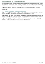 Verfahrenshinweise der Ausländerbehörde Berlin Der unbestimmte Rechtsbegriff „Wohl des Kindes“ orientiert sich ausweislich der Gesetzesbegründung an den Vorgaben des internationalen Übereinkommens über die Rechte des Kindes (BGBl. 1992 II, S. 121). Zum Wohl des Kindes gehören insbesondere seine Gesundheit, seine familiären Beziehungen zu seinen Eltern oder seinem Vormund und die Entwicklung und Sicherung einer eigenen Identität. C.6.6. § 6 Abs. 6 fußt auf Art. 27 Abs. 1 S. 2 der UnionsRL und ist in der ausländerbehördlichen Praxis ohne Belang. C.6.7. vgl. C.6.6. C.6.8. Anhörung und Schriftform des Feststellungsbescheides C.6.8.1. § 6 Abs. 8 Satz 1 schreibt eine Anhörung vor der Entscheidung über den Feststellungsbescheid vor. Der Betroffene hat das Recht, sich umfänglich zu seinen in Absatz 3 aufgeführten Belangen zu äußern. C.6.8.2. Neben der nach § 6 Abs. 8 Satz 2 gebotenen Schriftform sind bezüglich des Feststellungsbescheides auch die sonstigen Anforderungen nach Art. 30 Abs. 1 bis 3 der UnionsRL zu beachten. Insbesondere muss dem Betroffenen grundsätzlich eine Ausreisefrist von mindestens einem Monat gesetzt werden. Im Rahmen der erforderlichen Rechtsbehelfsbelehrung ist darauf zu verweisen, dass gem. § 4 Abs. 2 AGVwGO als Rechtsbehelf die Klage beim zuständigen Verwaltungsgericht in Betracht kommt. Dieses PDF wurde erstellt am: 11.03.2019 Seite 657 von 818