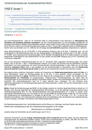 Verfahrenshinweise der Ausländerbehörde Berlin VAB E Israel 1 Inhaltsverzeichnis E.Israel.1. Ausländerrechtliche Behandlung jüdischer Zuwanderer, auch anderer Staatsangehörigkeiten ...................... 756 1. Ausstellung eines Reiseausweises für Flüchtlinge/für Ausländer .......................................................................... 757 Zum Verfahren bei vorliegendem Antrag auf Ausstellung/Verlängerung eines Reiseausweises für Flüchtlinge ...... 757 2. Ausstellung eines Reiseausweises für Staatenlose ............................................................................................... 757 E.Israel.1. Ausländerrechtliche Behandlung jüdischer Zuwanderer, auch anderer Staatsangehörigkeiten ( 05.06.2015; 21.06.2016 ) Die Innenministerkonferenz hatte am 18. November 2005 im Umlaufverfahren einen Beschluss zur Neuregelung der Aufnahme und Verteilung jüdischer Zuwanderer und ihrer Familienangehörigen aus der ehemaligen Sowjetunion mit Ausnahme der baltischen Staaten (Herkunftsgebiet) erlassen. Dieser ergänz te bzw. ersetzt e die früheren Beschlüsse etwa für die Personen, denen eine Aufnahmezusage eines Landes vor dem 1. Januar 2005 zugestellt worden ist (Altfallregelung). SenInn hat te uns Schreiben vom 16.1.2006 auf der Grundlage des § 23 AufenthG angewiesen entsprechend zu verfahren. Unter Berücksichtigung der am 24.05.2007 in Kraft getretenen Änderung des § 23 Abs. 2 AufenthG, gem. der die Zuständigkeit für die Entscheidungen über die sog. Übergangsfälle II (Antragstellung zwischen dem 01.07.2001 und dem 31.12.2004 ohne Zustellung einer Aufnahmezusage) und für Neufälle (Antragstellung ab 01.01.2005) zusätzlich zur bereits bestehenden Zuständigkeit für das Verteilverfahren von den Ländern auf das BAMF überging (vgl. § 75 Nr. 8 AufenthG), gilt im Einzelnen Folgendes: Die von den deutschen Auslandsvertretungen bis zum 31. Dezember 2004 zugestellten Aufnahmezusagen der Länder bleiben nach § 102 Abs. 1 Satz 1 Aufenthaltsgesetz wirksam. Zum Zweck der Einreise wird den Betroffenen jüdischen Zuwanderern und ihren gemeinsam mit ihnen aufzunehmenden Familienangehörigen in allen Fällen ein auf 90 Tage befristetes nationales Visum erteilt, in das Auflagen aus der Aufnahmezusage zu übernehmen sind. Die Zustimmung nach § 32 AufenthV durch SenInn gilt als erteilt, so dass wir der Visaerteilung in keinem Fall zustimmen müssen. Die aufgenommenen jüdischen Zuwanderer erhalten bei Vorsprache eine Niederlassungserlaubnis nach § 23 Abs. 2 in ihren Nationalpass, wobei als Rechtsgrundlage der § 23 Abs. 2 ohne weiteren Zusatz einzutragen ist. Die Niederlassungserlaubnis ist immer rückwirkend auf den Zeitpunkt der Antragstellung zu erteilen. Die Ausstellung eines Reiseausweises für Flüchtlinge ist ausgeschlossen. Aufgenommene Familienangehörige, die selbst nicht die Voraussetzungen für eine Aufnahme als jüdischer Zuwanderer erfüllen, erhalten eine Aufenthaltserlaubnis nach § 23 Abs. 2 AufenthG. Die Aufenthaltserlaubnis wird für 3 Jahre befristet bzw. verlängert. Für die Erteilung einer Niederlassungserlaubnis an Familienangehörige gelten keine Besonderheiten. Insofern wird auf die Ausführungen zu § 26 Abs. 4 verwiesen. Merke: Soweit die Aufnahmezusage des BAMF mit der Auflage versehen ist, einfache Sprachkenntnisse innerhalb von 12 Monaten nach Einreise gegenüber der Ausländerbehörde nachzuweisen, ist für die jüdischen Zuwanderer dennoch eine Niederlassungserlaubnis bzw. für ihre Familienangehörigen eine Aufenthaltserlaubnis für 3 Jahre zu erteilen. Einer gesonderten Nebenbestimmung zum Titel bedarf es nicht, da das BAMF die Auflage bereits verfügt hat, und hier ohnehin eine Verpflichtung zum Integrationskurs zu verfügen ist (§§ 44 Abs. 1 S. 1 Nr. 2, 44 a Abs. 1 S. 1 Nr. 1 a und b). Der Betroffene wird gebeten, den entsprechenden Nachweis durch eine Bestätigung über das Bestehen des Integrationskurses auf dem Postweg zu erbringen. Des Setzens einer Wiedervorlage bedarf es nicht. Die Niederlassungserlaubnis bzw. Aufenthaltserlaubnis wird bei Bezug von Leistungen nach dem Zweiten oder dem Zwölften Buch Sozialgesetzbuch oder dem Asylbewerberleistungsgesetz mit der Auflage „Wohnsitznahme im Land Berlin erforderlich“ versehen (bzgl. der Einzelheiten vgl. die Ausführungen unter A.12.2.). Jüdischen Zuwanderern, die ihre ursprgl. Aufnahmezusage nicht in Anspruch genommen haben, soll unter bestimmten Voraussetzungen die Möglichkeit gegeben werden, erneut einen Aufnahmeantrag zu stellen. Das BMI hat hierzu am 21.05.2015 seine Aufnahmeanordnung nach § 23 Abs. 2 AufenthG wie folgt modifiziert: Bei abgelaufener Aufnahmezusage ist einmalig eine erneute Antragstellung möglich • bei bis zum 31.12.2008 abgelaufenen Aufnahmezusagen und Dieses PDF wurde erstellt am: 11.03.2019 Seite 756 von 818