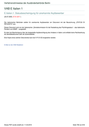 Verfahrenshinweise der Ausländerbehörde Berlin VAB E Italien 1 E.Italien.1. Statusbescheinigung für anerkannte Asylbewerber (20.07.2005; 07.01.2011 ) Die italienischen Behörden stellen für anerkannte Asylbewerber ein Dokument mit der Bezeichnung „STATUS DI RIFUGIATO“ aus. Dieses Dokument wird von der italienischen „Zentralkommission für die Feststellung des Flüchtlingsstatus“ – das italienische Pendant zum BAMF – ausgestellt. Es dient als Bescheinigung über die festgestellte Asylberechtigung des Inhabers in Italien und entfaltet keine Rechtswirkung als Identitätsdokument oder als Aufenthaltstitel. Eine Kopie eines solchen Dokumentes kann bei IV R 21/22 eingesehen werden. E-Mail an die VAB-Redaktion Dieses PDF wurde erstellt am: 11.03.2019 Seite 758 von 818