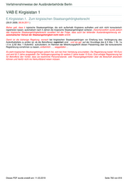 Verfahrenshinweise der Ausländerbehörde Berlin VAB E Kirgisistan 1 E.Kirgisistan.1. Zum kirgisischen Staatsangehörigkeitsrecht (29.01.2009; 08.04.2011 ) Bisher galt, dass k irgisische Staatsangehörige, die sich außerhalb Kirgisiens aufhalten und sich nicht konsularisch registrieren lassen, automatisch nach 3 Jahren die kirgisische Staatsangehörigkeit verlieren. Zwischenzeitlich wurde jedoch das kirgisische Staatsangehörigkeitsrecht novelliert mit der Folge, dass auch bei fehlender Auslandsregistrierung ein automatischer Verlust der Staatsangehörigkeit nicht mehr eintritt. Damit ist die bisherige Regelung, wonach bei kirgisischen Staatsangehörigen vor Erteilung bzw. Verlängerung des Aufenthaltstitels zu prüfen ist, ob die Betroffenen registriert sind und sie ggf. auf der Grundlage des § 5 Abs. 1 Nr. 1a i.V.m. § 82 Abs. 1 AufenthG aufzufordern, im Rahmen der Mitwirkungspflicht diesen Passeintrag über die konsularische Registrierung vornehmen zu lassen, entbehrlich . ... weggefallen ... Es steht kirgisischen Staatsangehörigen jedoch frei, sich bei ihrer Vertretung anzumelden. Die Registrierung kostet 150 Euro und wird für 2 Jahre ausgestellt. Der Verlängerungsantrag für weitere 2 Jahre kostet 15 Euro. Eine erfolgte Registrierung hat für Betroffene den Vorteil, dass sie bestimmte Personenstands- oder Passangelegenheiten über die Botschaft abwickeln können und hierfür nicht ins Herkunftsland reisen müssen. Dieses PDF wurde erstellt am: 11.03.2019 Seite 760 von 818