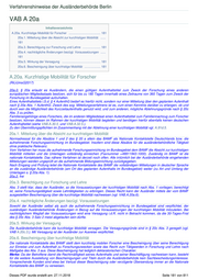Verfahrenshinweise der Ausländerbehörde Berlin VAB A 20b Inhaltsverzeichnis A.20b. – Aufenthaltserlaubnis für mobile Forscher ......................................................... 183 Änderungsdatum ...................................................................................................... 613 20b.0.Grundsatz ....................................................................................................... 183 20b.1. Aufenthaltstitel ............................................................................................... 183 20b.2. Antragswirkung ............................................................................................. 183 20b.3. Berechtigung zur Forschung und Lehre ........................................................ 184 20b.4. Mitteilungspflichten des mobilen Forschers und der Forschungseinrichtung ...... 184 20b.5. Verlängerung der AE nach Abschluss der Forschungstätigkeit .................... 184 20b.6.Abgrenzung zur kurzfristigen Mobilität ........................................................... 185 A.20b. – Aufenthaltserlaubnis für mobile Forscher Änderungsdatum ( RiLiUmsG2017 ) 20b.0.Grundsatz § 20b regelt den Aufenthalt von Ausländern, die bereits über eine Aufenthaltstitel eines anderen EU-Mitgliedstaates – sog. erster Mitgliedstaat – als Forscher im Sinne der REST-Richtlinie verfügen und für mehr als 180 Tage in einer Forschungseinrichtung im Bundesgebiet beschäftigt werden sollen. Die Höchstaufenthaltsdauer ist ein Jahr. Die allgemeinen Ablehnungsgründe nach § 20c sind stets vor Erteilung und Verlängerung zu prüfen. 20b.1. Aufenthaltstitel Während für Besitzer einer Aufenthaltstitels als Forscher eines anderen Mitgliedsstaat der Aufenthalt im Bundesgebiet für bis zu 180 Tage ohne Aufenthaltstitel möglich ist (vgl. A.20a.1.), ist für den Aufenthalt und die Beschäftigung von mehr als 180 Tagen der Aufenthaltstitel als mobiler Forscher nach § 20b notwendig. Wenn die Erteilungsvoraussetzungen nach Abs. 1 und die allgemeinen Erteilungsvoraussetzungen des § 5 Abs. 1 Nr. 2 – 4 erfüllt sind, besteht ein Rechtsanspruch auf Erteilung des Aufenthaltstitels. Hinsichtlich der Lebensunterhaltssicherung gilt VAB A.20.1. Grundvoraussetzung für die Erteilung des Aufenthaltstitels ist, dass der Drittausländer über einen gültigen Aufenthaltstitel als Forscher, Student, Freiwilliger, Au-pair, Praktikant oder Saisonarbeiter eines anderen EU-Mitgliedsstaates verfügt. Liegen auch die übrigen Voraussetzungen für die Erteilung der Aufenthaltserlaubnis nach § 20b Abs. 1 vor, so ist die Geltungsdauer der Erlaubnis grundsätzlich an der Dauer der Tätigkeit auszurichten, wie sie sich aus der vorzulegenden Aufnahmevereinbarung oder dem entsprechenden Vertrag ergeben sollte. Dies gilt insbesondere dann, wenn ausweislich der Aufnahmevereinbarung bzw. des Vertrages feststeht, dass das Forschungsvorhaben in einem kürzeren Zeitraum als der Höchstdauer von einem Jahr durchgeführt sein wird. Sollte die Dauer des Vorhabens unbestimmt sein, so ist die Erlaubnis regelmäßig für ein Jahr zu erteilen. Als Rechtsgrundlage ist in das Etikett „§ 20b Abs. 1“ einzutragen. Nach § 59 Abs. 4 Satz 2 AufenthV ist in Fällen des § 20b Abs. 1 entweder in das Etikett oder in das Zusatzblatt der Vermerk „ Forscher-Mobilität“ einzutragen. Dem BAMF ist gem. § 91d Abs. 5 formlos mitzuteilen, dass über einen weitergeleiteten Antrag zu § 20b positiv entschieden wurde. Zum Inhalt der Mitteilung gehört auch in jedem Fall das Datum der Entscheidung. Ein automatisierter Datenaustausch mittels des AZR zum BAMF findet hierzu nicht statt (vgl. A.91d.5.). Hinsichtlich des für mobile Forscher privilegierten Familiennachzugs vgl. §§ 29 Abs. 1 Nr. 1, 30 Abs. 1 Satz 1 Nr. 3 c) sowie Satz 2 Nr. 5 und 32 Abs. 1 und 2. 20b.2. Antragswirkung Der Ausländer muss den Antrag nach § 20b Abs. 1 spätestens 30 Tage vor der beabsichtigten Beschäftigung im Bundesgebiet bzw. vor Ablauf seines Aufenthaltes nach § 20a beim BAMF einreichen (siehe A20b.6.). Diese leitet die vollständigen Antragsunterlagen an die zuständige ABH (am Ort des geplanten Aufenthalts im Bundesgebiet) weiter. 30 Tage nach Eingang der vollständigen Antragsunterlagen darf der Ausländer zur Aufnahme der beantragten Tätigkeit in das Bundesgebiet einreisen, und zwar auch dann, wenn über den Antrag noch nicht entschieden wurde. Der Aufenthalt und die beantragte Beschäftigung gelten für bis zu 180 Tage als erlaubt, sofern die Aufenthaltserlaubnis als Forscher des anderen Mitgliedsstaats weiterhin gültig ist. Dieses PDF wurde erstellt am: 27.11.2018 Seite 183 von 811