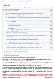 Verfahrenshinweise der Ausländerbehörde Berlin VAB A 25 Inhaltsverzeichnis A.25. Aufenthalt aus humanitären Gründen .............................................................................................................................. 228 (FzNeuG, 08.10.2018, 10.10.2018) ................................................................................................................................... 228 A.25.1. Anerkannte Asylberechtigte ................................................................................................................................... 228 A.25.2. Flüchtlingseigenschaft nach dem Abkommen über die Rechtsstellung der Flüchtlinge (Genfer Flüchtlingskonvention)/Subsidiärer Schutz nach § 4 AsylG ............................................................................................... 229 A.25.3. Abschiebungsverbote gemäß § 60 Abs. 5 oder 7 .................................................................................................. 230 A.25.4. Aufenthaltserlaubnisse aus dringenden humanitären oder persönlichen Gründen oder erheblichem öffentlichen Interesse ............................................................................................................................................................................ 231 A.25.4a. Aufenthaltserlaubnis für Opfer von Menschenhandel .......................................................................................... 232 A.25.4a.0. Allgemeines ............................................................................................................................................. 232 A.25.4a.1. Erteilungsvoraussetzungen ....................................................................................................................... 233 Besondere Voraussetzungen .............................................................................................................................. 233 Regelerteilungsvoraussetzungen ........................................................................................................................ 233 Sperrwirkung ........................................................................................................................................................ 233 Erteilungsdauer .................................................................................................................................................... 234 A.25.4a.3. Verlängerung nach Abschluss des Strafverfahrens .................................................................................. 234 A.25.4a.4. Nebenbestimmungen ................................................................................................................................ 234 A.25.4b. Opfer von ausbeuterischen Arbeitsverhältnissen ................................................................................................ 234 A.25.5. Aufenthaltserlaubnis wegen eines bestehenden Ausreisehindernisses ................................................................ 234 Familiäre Lebensgemeinschaft kann in zumutbarer Weise ausschließlich im Bundesgebiet gelebt werden ............. 235 Patchwork-Familien .................................................................................................................................................... 236 Bestehende familiäre Lebensgemeinschaft i.S.v. Art. 6 GG ....................................................................................... 236 Familiäre Lebensgemeinschaft mit volljährigen ehemals unbegleiteten Ausländern .................................................. 237 Übergeordnete öffentliche Interessen ......................................................................................................................... 237 Erteilung entgegen der Sperrwirkung aus § 11 Abs. 1 AufenthG ............................................................................... 238 A.25.s.1. Beginn und Fortsetzung einer Schul- oder Berufsausbildung bzw. eines Studiums ........................................... 240 Aufnahme eines Studiums während des Besitzes einer Aufenthaltserlaubnis nach § 25 Abs. 4 Satz 1 oder Abs. 4a ..... 240 Aufnahme eines Studiums während des Besitzes einer Aufenthaltserlaubnis nach § 25 Abs. 5 .............................. 240 Fortsetzung des Studiums nach Wegfall des Ausreisehindernisses in den Fällen des § 25 Abs. 5 ........................... 240 A.25. Aufenthalt aus humanitären Gründen (FzNeuG, 08.10.2018, 10.10.2018 ) A.25.1. Anerkannte Asylberechtigte 25.1.0 § 25 Abs. 1 regelt die Rechtsfolge nach Anerkennung als Asylberechtigter. 25.1.1. Die AE ist in den Fällen des § 25 Abs. 1 erstmalig für bis zu drei Jahre und sechs Monate zu erteilen ( vgl. A.26.1. ; zur Frage der Geltungsdauer der Verlängerung der Aufenthaltserlaubnis vgl. A.26.2.1.). Reiseausweise für Flüchtlinge werden für höchstens drei Jahre ausgestellt, sofern die AE für diesen Zeitraum erteilt wird. Der Reiseausweis ist mit einem Chip versehen, in dem das biometrische Merkmal Gesichtsbild gespeichert ist. Eine Verlängerung des Reiseausweises für Flüchtlinge kommt nicht in Betracht, § 58 Satz 2 AufenthV. In eilbedürftigen Fällen kann ein vorläufiger Reiseausweis auf dem bisherigen Muster mit einer Gültigkeitsdauer von bis zu einem Jahr ausgestellt werden. Allerdings sind die jeweiligen Aufkleber mit Personendaten von Kindern nicht mehr zu verwenden. Kinder bis zur Vollendung des 12. Lebensjahres erhalten einen Reiseausweis ohne Speichermedium, der höchstens 6 Jahre gültig sein darf, längstens jedoch bis zur Vollendung des 12. Lebensjahres, § 4 Abs. 1 Satz 3 und 4 AufenthV. Beachte: Mit Schreiben an die Länder vom 01.10.2018 empfiehlt das BMIBH im Interesse der Identifizierung eines Betroffenen, die (rechtlich erloschene) Bescheinigung über die Aufenthaltsgestattung bis zu dem Zeitpunkt der Ausstellung Dieses PDF wurde erstellt am: 27.11.2018 Seite 228 von 811