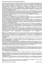 Verfahrenshinweise der Ausländerbehörde Berlin Danach benötigen drittstaatsangehörige Arbeitnehmer, die in einem anderen Mitgliedstaat der EU die Rechtsstellung eines langfristig Aufenthaltsberechtigten besitzen, kein Visum (mehr), wenn sie bis zu 90 Tage innerhalb von zwölf Monaten eine Dienstleistung nach § 21 BeschV in Deutschland erbringen. B.AufenthV.18. Befreiung für Inhaber von Reiseausweisen für Flüchtlinge frei B.AufenthV.19. Befreiung für Inhaber dienstlicher Pässe Mit Inkrafttreten der 8. VO zur Änderung der AufenthV zum 05.03.2013 sind nun auch Inhaber von Diplomatenpässen von Ecuador und Georgien sowie Inhaber von ecuadorianischen Dienstpässen von der Visumpflicht für die Einreise und den Kurzaufenthalt befreit. Die EU hat die bestehenden Visaerleichterungsabkommen mit der Ukraine und der Republik Moldau durch weitere Abkommen, die seit dem 01.07.2013 Anwendung finden, geändert. Gem. Art. 10 Abs. 2 der Abkommen können Inhaber von biometrischen Dienstpässen der Ukraine und der Republik Moldau visumfrei für höchstens 90 Tage pro Zeitraum von 180 Tagen in das Gebiet der Mitgliedstaaten einreisen und sich darin aufhalten. B.AufenthV.20. Befreiung für Inhaber von Ausweisen der Europäischen Union und zwischenstaatlichen Organisationen und der Vatikanstadt frei B.AufenthV.21. Befreiung für Inhaber von Grenzgängerkarten frei B.AufenthV.22. Befreiung für Schüler auf Sammellisten Nach § 22 benötigen Schüler, die nicht Angehörige eines Mitgliedstaates der EU oder des EWR sind, jedoch in einem solchen Staat ihren Wohnsitz haben, bei Schulreisen innerhalb der EU und des EWR keinen Aufenthaltstitel, sofern sie die Berechtigung zur Rückkehr in den Herkunftsstaat durch eine "Liste der Reisenden" nachweisen und der Zielstaat sowie die Transitstaaten die entsprechenden EU- Regelungen in nationales Recht übernommen haben. Die "Liste der Reisenden" gilt für die Reiseteilnehmer, für die darin ein Lichtbild angebracht ist, gleichzeitig als Passersatz für diese Reise.Hierfür ist das Sachgebiet IV A 3 zentral zuständig. Es gilt folgendes Verfahren: Die Schule beantragt formlos unter Angabe von Zweck, Ziel und Dauer der Reise sowie der genauen Personalien der teilnehmenden ausländischen Schüler die Reisendenliste. Für die Schüler, die keinen eigenen Pass oder Passersatz besitzen, ist ein biometrisches Lichtbild beizufügen. Nach Überprüfung des aufenthaltsrechtlichen Status sind die Personalien der teilnehmenden Schüler in die Liste einzutragen und die Berechtigung zur Wiedereinreise in die Bundesrepublik Deutschland zu bestätigen. Auch Minderjährige und Heranwachsende, deren Aufenthalt geduldet wird oder die vom Erfordernis eines Aufenthaltstitels zum Beispiel als Angehörige von Diplomaten oder gem. § 27 befreit sind, können nach dem mit dem 2. ÄndG eingefügten § 22 Abs. 2 in die Reisendenliste eingetragen werden, wenn sie Schüler einer allgemeinbildenden oder berufsbildenden Schule sind und von einer Lehrkraft begleitet werden. Sie sind dann für die Wiedereinreise vom Erfordernis eines Aufenthaltstitels befreit. Bei Geduldeten ist Voraussetzung, dass im Vorgriff auf die erwartete Wiedereinreise entschieden wurde, die Duldung über das Datum der beabsichtigten Wiedereinreise hinaus zu verlängern. Dies kann nur durch das aktenhaltende Sachgebiet - im Regelfall IV A 3 selbst oder IV A 2 bzw. IV A 4 erfolgen. Hierauf ist die Schule durch IV A 3 im Einzelfall hinzuweisen. Spricht der Geduldete dort nicht vor und/oder wird die Duldung nicht über den Tag der Wiedereinreise hinaus verlängert, kann der Betroffene nicht auf die Reisendenliste aufgenommen werden. Ist die Duldung dagegen ausweislich des AusReg über das Datum der beabsichtigten Wiedereinreise hinaus gültig, so kann IV A 3 den Geduldeten grundsätzlich ohne Abstimmung mit dem jeweils zuständigen Sachgebiet und ohne Einsicht in die Ausländerakte zu nehmen in die Liste der Reisenden aufnehmen. Sind andere Sachgebiete - insbesondere IV R 1 - 3 oder IV P - aktenführend, erfolgt die Aufnahme in die Reisendenliste nur im Einvernehmen mit dem zuständigen Sachgebiet. Merke: Bei Geduldeten ist auf der Liste gem. § 22 Absatz 2 anzuordnen, dass die Abschiebung nach der Wiedereinreise ausgesetzt wird. Diese Anordnung der aufschiebend bedingten Duldung ist erforderlich, weil mit einer Ausreise eine Duldung erlischt (vgl. Nr. 3.3.6 AufenthG VwV). Die Duldung, deren Wirkung aufschiebend bedingt mit der Wiedereinreise eintritt, ist auf der Schülersammelliste zu vermerken. Der Vermerk hat den Wortlaut: „Die Abschiebung des Schülers/der Schülerin/der Schüler ist nach der Wiedereinreise und bis zum … ausgesetzt (§ 22 Absatz 2 AufenthV).“ Für Schüler, die im Besitz einer Aufenthaltsgestattung .....(weggefallen)...sind, findet § 22 Abs. 2 entsprechend Anwendung. In jedem Fall wird bei Geduldeten und Gestatteten je eine Kopie der Reisendenliste zur Ausländerakte gegeben. Nach Abstimmung auf europäischer Ebene bestehen seitens des BMI keine Bedenken, auch Berufsschüler in die begünstigenden Regelungen mit einzubeziehen, so dass auch diese in die Liste der Reisenden aufgenommen werden können. Die Betreffenden sollten allerdings vorsorglich darauf hingewiesen werden, dass die Ausstellung einer Reisendenliste in diesen Fällen immer mit dem Risiko verbunden ist, dass die zuständigen Behörden in den Mitgliedstaaten - aus welchen Gründen auch immer - diese Liste nicht akzeptieren und deshalb Schwierigkeiten bei Einreise und Aufenthalt entstehen können. Nach dem Ausfüllen der Liste ist diese einem Beauftragten der Schule mit dem Hinweis auszuhändigen, dass die von der Schulleitung geforderten Angaben (Zeilen 1 - 4 sowie linkes Kästchen darunter) unbedingt einzutragen und vom Schulleiter - persönlich oder durch den allgemein bestellten Vertreter - gegenzuzeichnen sind. Merke: Die Eintragung und Gegenzeichnung hat gem. Nr. 3.3.6 AufenthG- VwV grundsätzlich vor der Bestätigung der Lis