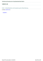 Verfahrenshinweise der Ausländerbehörde Berlin VAB D 43 D.43. Vollziehbarkeit und Aussetzung der Abschiebung (2. ÄndG, QualRiLiUmsG ) ... weggefallen ... Dieses PDF wurde erstellt am: 23.08.2019 Seite 708 von 822