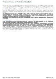 Verfahrenshinweise der Ausländerbehörde Berlin Bestätigung der Rückübernahmepflicht unter gleichzeitiger Nennung der Personalien der Person mit der Feststellung, dass Passersatz (ggf. auch für die Kinder) ausgestellt wird oder Verneinung der Rückübernahmepflicht, weil die Identität nicht bestätigt werden konnte oder der Betroffene nicht montenegrinischer Staatsangehöriger ist. Das Innenministerium bestätigt der ABH unverzüglich den Eingang der Ersuchen und beantworten ein Übernahmeersuchen unverzüglich, spätestens jedoch innerhalb von 12 Kalendertagen. Die Frist beginnt mit dem Eingang des Ersuchens beim zuständigen Innenministerium. Nach Ablauf dieser Frist gilt die Zustimmung zur Übernahme als erteilt. Kann das Innenministerium in Ausnahmefällen das Ersuchen nicht innerhalb der 12 Kalendertage beantworten, teilt es der ABH unverzüglich die Gründe und die für den Abschluss des Verfahrens benötigte weitere Frist mit, die 6 Kalendertage nicht überschreiten darf. Nach Ablauf dieser weiteren Frist gilt die Zustimmung zur Übernahme als erteilt. 3. Passersatz für die Rückkehr Der für die Rückkehr erforderliche Passersatz ist von der ABH nach Erhalt der positiven Antwort bzw. bei Eintritt der Zustimmungsfiktion bei der Botschaft der Republik Montenegro Dessauer Str. 28/29 10963 Berlin zu beantragen, Der Passersatz wird binnen 3 Tagen mit einer Gültigkeitsdauer von mind. drei Monaten ausgestellt. Die Erstellung des Rückübernahmeersuchens (KK Abschiebung>Rückübernahme) erfolgt durch die aktenhaltende Stelle, die das Ersuchen ohne AA IV R 3 zur Absendung zuleitet. IV R 3 obliegt auch die erforderliche Veranlassung der Beantragung des Passersatzes nach Zustimmung und die Durchführung des Übernahmeverfahrens. Vorbereitende Arbeiten (s. II.1.1.) sind bereits von dem Bereich zu leisten, der über die Aufenthaltsbeendigung entscheidet. III. Hinweise 1. Gemischt-nationale Ehen/Kinder aus gemischt-nationalen Ehen Die Rückführung erfolgt ebenfalls im Rahmen des Abkommens. Nähere Einzelheiten sind im Bedarfsfall bei IV R 3 zu erfragen. 2. Aufenthaltsrechtliche Behandlung ausreisepflichtiger montenegrinischer Staatsangehöriger Vollziehbar ausreisepflichtige montenegrinische Staatsangehörige, für die ein Rückübernahmersuchen noch nicht gestellt wurde oder noch keine positive Antwort der montenegrinischen Seite auf ein Übernahmeersuchen vorliegt, erhalten eine Duldung grundsätzlich unter gleichzeitiger Aushändigung des einbehaltenen Passes. Da der Pass in der Regel für die Ausreise im Rahmen des Rückübernahmeverfahrens nicht benötigt wird, ist eine Aushändigung an den Betroffenen unschädlich. Vollständige Passkopien sind, sofern noch nicht geschehen, zu den Akten zu nehmen. Etwas anderes gilt allerdings für Inhaber gültiger blauer Pässe. Da eine Ausreise/Abschiebung mit diesen Pässen ohne weitere Formalitäten möglich ist, sind diese einzuziehen und eine ggf. erforderliche Duldung ist als Ausweisersatz zu erteilen. Soweit kein Pass vorhanden ist, ist die Duldung ebenfalls als Ausweisersatz zu erteilen. In Fällen der Passlosigkeit ist die Duldung immer mit der auflösenden Bedingung „Erlischt bei Besitz eines zur Ausreise in den Herkunftsstaat berechtigenden Dokumentes“ zu erteilen. Soweit der Ausländer sich weigert, beim Stellen des Rückübernahmeersuchens mitzuwirken, etwa indem er zwingend notwendige oder sonstige Angaben, die der montenegrinischen Seite nach Möglichkeit zur Verfügung gestellt werden sollen, verweigert, ist die Duldung mit folgenden Nebenbestimmungen zu versehen: “Erwerbstätigkeit nicht gestattet”, ...weggefallen... In den übrigen Fällen ist die Duldung mit den Auflagen “Beschäftigung nur nach Erlaubnis der Ausländerbehörde (§ 4 Abs 2 AufenthG)”, “Selbständige Tätigkeit nicht gestattet” zu erteilen. Dieses PDF wurde erstellt am: 23.08.2019 Seite 780 von 822