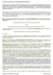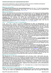 Verfahrenshinweise der Ausländerbehörde Berlin Regelerteilungsvoraussetzungen einschließlich der Erfüllung der Passpflicht. Die Geltungsdauer der Aufenthaltserlaubnis nach § 25a Abs. 2 Satz 2 entspricht stets derjenigen der Aufenthaltserlaubnis der von § 25a Abs. 2 Satz 1 begünstigten Eltern. 25a.2.3. Aufenthaltsrecht für Ehegatten oder Lebenspartner Mit Inkrafttreten des Gesetzes zur Neubestimmung des Bleiberechts und der Aufenthaltsbeendigung wurde eine Rechtsgrundlage zur Erteilung einer Aufenthaltserlaubnis für den Ehegatten oder Lebenspartner eines von § 25a Abs. 1 begünstigten Jugendlichen oder Heranwachsenden geschaffen. Nach der Regelung soll die Aufenthaltserlaubnis erteilt werden, soweit kein Ausschlussgrund nach Satz 1 greift. Die Regelerteilungsvoraussetzungen gemäß § 5 müssen grundsätzlich erfüllt sein. Dabei gilt der Lebensunterhalt im Sinne von § 25a Abs. 2 Satz 1 Nr. 2 als durch eigenständige Erwerbstätigkeit gesichert, soweit der Ehegatten oder Lebenspartner ein Einkommen erzielt, welches die auf ihn und alle anderen Mitglieder der Bedarfsgemeinschaft, die keinen Titel nach § 25a Abs.1 bzw. § 25a Abs. 2 Satz 3 erhalten, entfallenden Regelsätze nebst Mietanteile deckt. Anderenfalls würde nämlich deren Privilegierung bei der Lebensunterhaltssicherung nach dem Wortlaut des § 25 a Abs. 1 S. 2 bzw. Abs. 2 S.5 leerlaufen. § 25a Abs. 2 Satz 1 Nr. 2 ist im Übrigen lex specialis zu § 5 Abs. 1 Nr. 1. Dies bedeutet, dass es auch in den Fällen des § 25 a Abs. 2 S. 3 keine Regelausnahmen bei der Lebensunterhaltssicherung geben kann. Darüber hinaus ist § 31 im Falle einer Trennung der Eheleute oder Lebenspartner entsprechend anwendbar. Die entsprechende Anwendbarkeit bezieht sich darauf, dass der Ehegatte im Falle des § 25a einen Aufenthalt aus humanitären Gründen besitzt und nicht zum Familiennachzug gem. § 29 Abs. 3 S. 2 berechtigt ist. Die weiteren Erteilungsvoraussetzungen des § 31 müssen vorliegen. 25a.2.4. Aufenthaltsrecht für minderjährige ledige Kinder Ebenfalls mit Inkrafttreten des Gesetzes zur Neubestimmung des Bleiberecht und der Aufenthaltsbeendigung wurde eine Rechtsgrundlage zur Erteilung einer Aufenthaltserlaubnis an die minderjährigen nicht verheirateten Kinder eine Titelinhabers nach Abs. 1 geschaffen. Von den Regelerteilungsvoraussetzungen nach § 5 Abs. 1 und Abs. 2 wird mit Ausnahme der Passpflicht gemäß § 5 Abs. 3 Satz 2 (vgl. A.5.3.2.) im Ermessenswege regelmäßig abgesehen. Bzgl. der Anwendung des § 5 Abs. 1 Nr. 2 ist § 25 a Abs. 3 lex specialis. Kommt eine Erteilung nicht in Betracht ist § 60 a Abs. 2 b zu beachten. 25a.3. Ausweisungsinteresse Die Regelung des § 25a Abs. 3 enthält eine Privilegierung hinsichtlich eines vorliegenden Ausweisungsinteresses für die personensorgeberechtigten Eltern und minderjährigen Geschwistern von gemäß § 25a Abs. 1 begünstigten Jugendlichen und Heranwachsenden. Die Regelung ist missverständlich, da sie hinsichtlich der Straftaten sprachlich an den „Ausländer“ anstatt an die „Eltern oder die minderjährigen Geschwister des Ausländers “ anknüpft. Zu beachten ist, dass es an einer § 104a Abs. 3 AufenthG vergleichbaren Regelung fehlt, so dass es nicht zu einer Zurechnung von Straftaten im Familienverband kommt. Dies bedeutet zum Beispiel, dass Straftaten eines Elternteils, die die Grenze des § 25a Abs. 3 überschreiten, die Erteilung einer Aufenthaltserlaubnis gemäß § 25 Abs. 2 an den anderen Elternteil und eventuell vorhandene minderjährige Geschwister nicht hindern. Einem minderjährigen Geschwisterkind kann allerdings nur dann eine Aufenthaltserlaubnis nach § 25a Abs. 2 Satz 2 erteilt werden, wenn mindestens ein Elternteil über eine Aufenthaltserlaubnis nach § 25a Abs. 2 Satz 1 verfügt. Dies ergibt sich bereits aus dem Wortlaut der Norm. 25a.4. Sämtliche Aufenthaltserlaubnisse nach § 25 a können abweichend von § 10 Abs. 3 Satz 2, d.h. auch nach offensichtlich unbegründeten Asylanträgen, erteilt werden und berechtigen vollumfänglich zur Erwerbstätigkeit. Besteht die Sperrwirkung gemäß 11 Abs.1, ist bei Vorliegen der Erteilungsvoraussetzungen des § 25a die Aufhebung der Sperrwirkung nach § 11 Abs. 4 Satz 2 zu prüfen. E -Mail an die VAB-Redaktion Dieses PDF wurde erstellt am: 08.07.2019 Seite 245 von 815