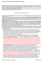 Verfahrenshinweise der Ausländerbehörde Berlin zugestimmt werden. Auch die Anerkennung ausländischer Berufsqualifikationen im Sinne von § 17a kann im Einzelfall zum Zuzug führen, sofern die im Anerkennungsbescheid vorgeschriebenen Anpassungsmaßnahmen oder weiteren Qualifikationen nachweislich im bisherigen Bundesland nicht angeboten werden. Die Wohnsitzauflage ist nach erfolgter Zustimmung auf den Zuzugsort zu ändern. Bei an uns gerichteten Bitten um Zustimmung gilt bezüglich unserer Prüfung das oben Gesagte. Ist eine Prüfung mangels hinreichender Angaben oder entsprechender Nachweise nicht möglich, ist die anfragende Ausländerbehörde zu bitten, die entsprechenden Informationen ggf. vom Betroffenen über den Weg des § 82 Abs. 1 zu beschaffen. Können wir nicht zustimmen, so ist unsere Stellungnahme jeweils kurz zu begründen, um der anfragenden Behörde die Möglichkeit zu geben, den Antrag des Betroffenen begründet abzulehnen. Wird unsere Zustimmung gegeben, ist der anfragenden Ausländerbehörde zusätzlich mitzuteilen, ob die Wohnsitzauflage gestrichen oder auf Berlin geändert werden soll. Im umgekehrten Fall ist der Antrag nach Aktenlage zu entscheiden, wenn binnen 3 Monaten die Zuzugsbehörde weder Unterlagen nachgefordert noch negativ Stellung genommen hat. Liegt dagegen eine negative Stellungnahme der Zuzugsbehörde vor, wird der Antrag abgelehnt. Liegen unterschiedliche Rechtspositionen der Behörden vor, kann die Zuzugsbehörde im Verwaltungsstreitverfahren als Beteiligte gehört werden. Im Fall des Zuzugs von Geduldeten ohne unsere Beteiligung gilt hinsichtlich einer Wohnsitzauflage etwas anderes. Vorsprechende Geduldete, die zur Wohnsitznahme in einem anderen Ort von Gesetzes wegen aktuell verpflichtet sind, sind mit ihren Anliegen an die örtlich zuständige Ausländerbehörde zu verweisen, das entsprechende Hinweisschreiben ist auszuhändigen. Hält der Vorsprechende dennoch an seinem Antrag fest, ist dieser Antrag dann unter Hinweis auf die fehlende örtliche Zuständigkeit abzulehnen. Hat die örtlich zuständige Ausländerbehörde die Wohnsitzauflage ohne unsere Beteiligung gestrichen oder geändert, sind die Betroffenen mit ihren Anliegen an die örtlich zuständige Ausländerbehörde zu verweisen, das entsprechende Hinweisschreiben ist auszuhändigen. Weigert diese sich weiterhin uns zu beteiligen, so sind diese negativen Kompetenzkonflikte durch die betroffenen Innenministerien und –senatsverwaltungen der Länder zu klären. Entsprechende Fälle sind der Referatsleitung mit einem kurzen Abgabevermerk zur Weiterleitung an die Fachaufsicht vorzulegen. Wird beantragt die Wohnsitzauflage für das Land Berlin zu streichen, ohne dass der Wohnsitz verlegt werden soll, muss der Antragsteller nachweisen, dass er den Lebensunterhalt in Berlin sichert. Es gilt die übliche Berechnungsweise, vgl. A.2.3. Sichert der geduldete Antragsteller den Lebensunterhalt, ist die Wohnsitzauflage gebührenfrei ersatzlos zu streichen. Bei jeder Verlängerung der Duldung ist die Wohnsitzauflage neu einzutragen, sofern der Geduldete nachweislich öffentliche Mittel in Anspruch nimmt. Öffentliche Mittel im Sinne von § 2 Abs. 3 Satz 2 sind unschädlich. 61.1e. frei 61.2. In Berlin wird von der in § 61 Abs. 2 eröffneten Möglichkeit, Ausreiseeinrichtungen für vollziehbar ausreisepflichtige Ausländer zu schaffen, kein Gebrauch gemacht. Dieses PDF wurde erstellt am: 08.07.2019 Seite 424 von 815