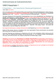 Verfahrenshinweise der Ausländerbehörde Berlin VAB E Kasachstan 1 E.Kasachstan.1. Zum kasachischen Staatsangehörigkeitsrecht ( 29.01.2009; 05.01.2012 ) Durch eine bereits seit 04.10.2004 geltende Änderung des kasachischen Staatsangehörigkeitsgesetzes verlieren Personen, die sich mit Genehmigung der kasachischen Heimatbehörden aufhalten und sich ohne Begründung nicht konsularisch registrieren lassen, nach ... weggefallen ... 3 Jahren die kasachische Staatsangehörigkeit . ... weggefallen ... Vor diesem Hintergrund ist bei kasachischen Staatsangehörigen, die von ihren Heimatbehörden eine Genehmigung zur ständigen Wohnsitznahme im Ausland besitzen (erkennbar an einem entsprechenden Stempeleintrag im Pass) , vor Erteilung bzw. Verlängerung des Aufenthaltstitels zu prüfen, ob die Betroffenen registriert sind. Erkennbar ist auch dies an einem weiteren rechteckigen - zweisprachigen - Stempel im Pass ("Registered for Permanent Residence"). Trägt der Pass keinen entsprechenden Eintrag, ist der Passinhaber auf der Grundlage des § 5 Abs. 1 Nr. 1a i.V.m. § 82 Abs. 1 AufenthG aufzufordern, im Rahmen der Mitwirkungspflicht diesen Passeintrag über die konsularische Registrierung vornehmen zu lassen. Die Aufforderung ist aktenkundig zu machen. Hierfür ist ihm eine angemessene Frist zu setzen, in der er uns die Registrierung (etwa durch Übersendung einer Passkopie) nachzuweisen hat. Ohne einen solchen Nachweis blieben Zweifel, ob der Ausländer seine Staatsangehörigkeit - ungeachtet eines gültigen Passes - noch besitzt oder möglicherweise im Laufe der Gültigkeit des Titels verliert. Bei Vorlage der Genehmigung zur ständigen Wohnsitznahme ist die Registrierung bei der Botschaft sofort möglich. Wurde ein Pass verloren, wird bis zur Ausstellung eines neuen (gestempelten) Passes ausnahmsweise eine gesonderte Bescheinigung über die Registrierung ausgestellt. Kommt der Passinhaber der Aufforderung zur Registrierung nicht nach, ist die nachträgliche zeitliche Verkürzung der AE nach § 7 Abs. 2 S. 2 AufenthG oder der Widerruf der AE nach § 52 Abs. 1 S. 1 Nr. 2 AufenthG zu prüfen und der Betroffene hierzu gem. § 28 VwVfG anzuhören. Der Vorgang ist entsprechend auf Wiedervorlage zu legen. Zwingend ist die Einholung einer Genehmigung zur ständigen Wohnsitznahme bei beabsichtigtem Daueraufenthalt im Ausland nicht. Personen, die diese Genehmigung nicht besitzen, verlieren auch ihre Staatsangehörigkeit nie, unabhängig davon, wie lange sie sich im Ausland aufhalten. Muss allerdings ein neuer Pass beantragt werden, ist dies dann nur in Kasachstan möglich. Liegt dagegen eine Genehmigung zur ständigen Wohnsitznahme und eine konsularische Registrierung vor, kann ein neuer Pass über die Botschaft beantragt werden. Die Genehmigung zur ständigen Wohnsitznahme im Ausland und Registrierung kann auch nachträglich bei der Botschaft beantragt werden. Das Verfahren dauert etwa 6 bis 12 Monate. Dieses PDF wurde erstellt am: 08.07.2019 Seite 756 von 815