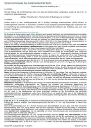 Verfahrenshinweise der Ausländerbehörde Berlin Demokratische Republik Kongo - Kinshasa Madagaskar – Antananarivo Tadschikistan – Duschanbe Côte d’Ivoire - Abidjan (begleitete Rückführungen nur im Einzelfall) Libanon - Beirut Nur unbegleitete Rückführungen sind möglich nach: Zentralafrikanische Republik – Jaunde Guinea-Bissau – Bissau Sonstige Hinweise: Gaza/Westbank Die Sicherheitslage in den Palästinensischen Gebieten ist nach wie vor angespann t. Palästinensische Volkszugehörige, die im Besitz eines Passes der Palästinensischen Autonomiebehörde sind, der zur Rückkehr in den Gaza-Streifen berechtigt (vgl. PassInfo Gaza), können derzeit gleichwohl nicht zurückgeführt werden. Bis auf weiteres werden nach Auskunft der Ägyptischen Botschaft vom 18.05.2015 keine Anträge auf Durchreisevisa von Palästinensern aus dem Gaza-Streifen entgegengenommen. Damit sind sowohl freiwillige Ausreisen als auch zwangsweise Rückführungen nicht möglich Somalia Grundsätzlich sind nach Erkenntnissen des Auswärtigen Amtes begleitete Rückführungen nach Somalia lediglich nach Hargeisa in Nordwestsomalia (Somaliland) möglich. In die restlichen Landesteile sind wegen unzureichender Fluganbindungen sowie der wegen der Verhältnisse in den einzelnen Clangebieten nicht auszuschließenden Gefährdung der Begleitbeamten begleitete Rückführungen nicht möglich. Der Aufenthalt ausreisepflichtiger ausländischer Staatsangehöriger, deren zwangsweise Rückführung nur ohne amtliche Begleitung erfolgen könnte, die sich aber ihrer Abschiebung widersetzen, ist nach § 60a Abs. 2 Satz 1 AufenthG zu dulden. Die Erteilung einer AE nach § 25 Abs. 5 AufenthG ist wegen des fehlenden Ausreisehindernisses aber ausgeschlossen. A.60a.s.2. Zur Duldung des Aufenthalts ausländischer Strafgefangener Grundsätzlich bedarf ein vollziehbar ausreisepflichtiger ausländischer Strafgefangener auch während des Freiganges oder bei Zurückstellung der Strafvollstreckung nach § 35 BTMG keines Aufenthaltstitels (vgl. Nr. 4.1.0.3. AufenthG- VwV). Die Betroffenen sind geduldet. Die Erteilung der Duldung bedarf nach § 77 Abs. 1 Satz 1 Nr. 5 AufenthG der Schriftform. Über die Aussetzung der Abschiebung ist dem ausländischen Strafgefangenen auf Antrag eine Bescheinigung über die Duldung auszustellen (§ 60a Abs. 4 AufenthG). Liegen die tatbestandlichen Voraussetzungen des § 60a Abs. 2 AufenthG vor, so ist der Aufenthalt auch des ausländischen Strafgefangenen nicht lediglich faktisch, sondern förmlich zu dulden (BVerwG, Urt. v. 25.03.2014 – 5 C 13/13 –, juris Rn. 20, 23) , unabhängig davon, ob er sich im Freigang befindet, um einem Beschäftigungsverhältnis nachzugehen bzw. sich einer Drogentherapie zu unterziehen oder ihm im Rahmen von Vollzugslockerungen Ausgang gewährt wird, um sich beispielsweise auf Wohnungssuche zu begeben. Auch dem in Strafhaft einsitzenden ausgewiesenen und daher vollziehbar ausreisepflichtigen Ausländer ist eine Duldung zu erteilen, solange die Vollstreckungsbehörde nicht von der Vollstreckung der Freiheitsstrafe gemäß § 456a StPO absieht. Die Duldung ist mit den Nebenbestimmungen „ Erwerbstätigkeit nicht gestattet.“ und „Der Aufenthalt ist beschränkt auf das Land Berlin ab: …." zu versehen, wobei das Datum der Anordnung der Beschränkung gem. § 61 Abs. 1 c Nr. 1 anzugeben ist (zur (Wieder-) Anordnung der räumlichen Beschränkung siehe 61.1.c.). Merke: Zwar muss die Anordnung der räumlichen Beschränkung gem. § 77 Abs. 1 nicht schriftlich erfolgen. In diesen Fällen sollte dies aus Gründen der Gesetzesklarheit immer geschehen und ist auch die Anordnung der sofortigen Vollziehbarkeit zu prüfen. Eine Duldung kommt nicht in Betracht für Personen, für die keine örtliche Zuständigkeit gem. § 3 Abs. 1 Nr. 3 a) VwVfG besteht. 60a.s.2 . 1 . Die Beschäftigung von Strafgefangenen ist im Rahmen von § 37 StVollzG Bln immer möglich, sofern sie innerhalb oder außerhalb der JVA regelmäßig oder unter Aufsicht einer zugewiesenen Arbeit, Berufsausbildung, sonstiger Beschäftigung oder Hilfstätigkeit nachgehen, unabhängig davon, ob hierfür ein Entgelt gewährt wird. Eine gesonderte Anfrage bei der Ausländerbehörde zur Erlaubnis einer solchen Tätigkeit ist im Interesse der Verwaltungseffizienz nicht erforderlich. Soweit einem Betroffenen nach den o.g. Maßstäben selbst für eine solche Tätigkeit ausnahmsweise eine Duldung zu erteilen ist, ist ihm die Beschäftigung wie folgt zu erlauben: "Beschäftigung ausschließlich für Tätigkeiten im Sinne von § 37 StVollzG Bln erlaubt". Dieses PDF wurde erstellt am: 16.08.2019 Seite 416 von 815