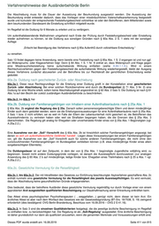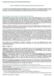 Verfahrenshinweise der Ausländerbehörde Berlin andere Verurteilung der Erlöschensgrund des § 60a Abs. 2 S. 6 ein, hat der Betroffene den Abbruch seiner Ausbildung selbst zu vertreten (siehe A.60a.2.6.). Anders als unmittelbar vor Erteilung einer Aufenthaltserlaubnis (vgl. dazu A.18a.1.4. oder A.25.b.2.1.) ist vor der Erteilung einer Ausbildungsduldung kein Fall denkbar, der eine Zusicherung gemäß § 38 VwVfG zur Vorlage bei der Heimatvertretung des erwachsenen Auszubildenden rechtfertigt, um ein Heimreisedokument zu erlangen (bei jugendlichen und heranwachsenden Geduldeten vgl. A.60a.6.1.2.). Kann eine Rückführung nicht betrieben werden, weil sich der Ausländer dem behördlichen Zugriff durch Untertauchen bzw. durch einen nicht angezeigten Wohnortwechsel entzogen hat, liegt ebenfalls ein Ausschlussgrund im Sinne des § 60a Abs. 6 S. 1 Nr. 2 vor. 60a.2.4.4. Ausschlussgrund des § 5 Abs. 4 In den Fällen der Beantragung bzw. Erteilung einer Ausbildungsduldung nach § 60a Abs. 2 Satz 4 ist eine Beteiligung der Sicherheitsbehörden i.S.v. § 73 Abs. 2 durchzuführen. Der betroffene Personenkreis entspricht dem Personenkreis, bei dem auch vor Verlängerung eines Aufenthaltstitels die Sicherheitsbehörden angefragt werden. 60a.2.4.4.1. Sofern der Auszubildende zum Personenkreis des § 73 Abs. 2 gehört, mit vollständigen Unterlagen vorspricht und alle Erteilungsvoraussetzungen erfüllt sind, wird die Ausbildungsduldung sofort für die gesamte Dauer der Berufsausbildung erteilt, die Sicherheitsbehörden beteiligt und eine Wiedervorlage von 4 Wochen gesetzt. Liegen nach diesen vier Wochen Erkenntnisse der Sicherheitsbehörden vor, ist umgehend Rücksprache mit dem zuständigen Sachgebiet zu halten und ggf. der Vorgang zwecks unverzüglicher Rücknahme der Beschäftigungserlaubnis und Ausbildungsduldung dorthin abzugeben. 60a.2.4.4.2. Bei einer Vorsprache mit unvollständigen Unterlagen bzw. schriftlicher Antragstellung sind die Sicherheitsbehörden zu beteiligen und in der Regel die Terminvorsprache so zu steuern, dass bis dahin die Ergebnisse der Anfrage vorliegen. Liegen dann Erkenntnisse vor, ist ebenfalls umgehend Rücksprache mit dem zuständigen Sachgebiet zu halten und ggf. der Vorgang zwecks Versagung der Beschäftigungserlaubnis und Ausbildungsduldung dorthin abzugeben. Die sofortige Erteilung kommt in dieser Konstellation nur in Betracht, wenn eine unmittelbar bevorstehende Aufnahme der Ausbildung durch Abwarten der Beteiligungsanfrage voraussichtlich vereitelt würde. In diesem Fall ist wie unter 60a.2.4.4.1. zu verfahren. 60a.2.5. Erteilungsdauer Die Duldung zum Zweck einer qualifizierten Berufsausbildung ist grundsätzlich für die gesamte Dauer der Berufsausbildung zu erteilen. Dadurch soll den Ausbildungsbetrieben Planungssicherheit verschafft und das aufenthaltsrechtliche Verfahren vereinfacht werden. Eine kürzere Erteilung ist ausnahmsweise dann gerechtfertigt, wenn Minderjährigen nicht entgegengehalten werden kann, dass aufenthaltsbeendende Maßnahmen bei ihnen aus Gründen, die sie selbst zu vertreten haben, nicht vollzogen werden können. Dies trifft in der Regel auf unbegleitete minderjährige Ausländer zu, die unter (Amts-)Vormundschaft stehen und nicht im Besitz eines gültigen Heimreisedokuments sind oder sonstige Minderjährige, deren Eltern ihr Abschiebungshindernis selbst zu vertreten haben. Greift danach die Ausschlussregelung in Abs. 6 S. 1 Nr. 2 nicht, ist die Ausbildungsduldung auf drei Monate nach dem vollendeten 18. Lebensjahr zu befristen. Im Übrigen ist die Dauer der Berufsausbildung dem vorgelegten Ausbildungsvertrag zu entnehmen. Übersteigt die vereinbarte Ausbildungsdauer die in der Berufsausbildungsordnung für den jeweiligen Beruf (zu finden unter https://www.bibb.de/de/berufeinfo.php) bestimmte maximale Ausbildungsdauer, ist letztere maßgeblich. Aus den allgemeinen Anwendungshinweisen des BMI vom 30.05.2017 zur Ausbildungsduldung ergibt sich darüber hinaus, dass sich das Berufsausbildungsverhältnis auf Antrag des Auszubildenden an seinen Ausbildungsbetrieb bis zur nächsten Wiederholungsprüfung, höchstens um ein Jahr (§ 21 Absatz 3 BBiG) verlängert, wenn der Auszubildende die Abschlussprüfung nicht besteht. Dieser Rechtsanspruch des Auszubildenden besteht unabhängig von einer Zustimmung des Ausbildungsbetriebs und lässt die Rechte und Pflichten aus dem Ausbildungsverhältnis unberührt; sie gelten in vollem Umfang fort. Die Frage, ob zu erwarten ist, dass der Auszubildende die erneute Prüfung besteht, spielt dabei keine Rolle. Die Verlängerung wird auch im Verzeichnis der Berufsausbildungsverhältnisse eingetragen (§ 36 Absatz 1 BBiG, § 30 Absatz 1 FlwO). Dies hat zur Folge, dass die Ausbildungsduldung für den Verlängerungszeitraum der Berufsausbildung bei Vorlage eines Nachweises über den nächsten Prüfungstermin zu verlängern ist. Gleiches gilt in den Fällen von § 8 Absatz 2 BBiG, wonach in Ausnahmefällen auch ohne nichtbestandene Abschlussprüfung die zuständige Stelle auf Antrag des Auszubildenden die Ausbildungszeit verlängern kann, wenn die Verlängerung erforderlich ist, um das Ausbildungsziel (noch) zu erreichen. Familienangehörige Familienangehörige des Auszubildenden werden nach § 60a Abs. 2 Satz 3 geduldet. Familienangehörige sind Ehegatten und minderjährige ledige Kinder des Auszubildenden. Bis zum vollendeten 18. Lebensjahr des Auszubildenden werden auch seine sorgeberechtigten Eltern und minderjährigen Geschwister als Familienangehörige geduldet. Eine Ausnahme hiervon ist bei allen Familienangehörigen angezeigt, die wegen einer im Bundesgebiet begangenen vorsätzlichen Straftat, wobei Geldstrafen von insgesamt bis zu 50 Tagessätzen oder bis zu 90 Tagessätzen wegen Straftaten, die nach dem Aufenthaltsgesetz oder dem Asylgesetz nur von Ausländern begangen werden können, außer Dieses PDF wurde erstellt am: 16.08.2019 Seite 408 von 815