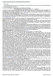 Verfahrenshinweise der Ausländerbehörde Berlin Betracht bleiben, verurteilt wurden. Das durch Satz 3 eröffnete Ermessen ist dabei grundsätzlich zu Lasten der rechtskräftig Verurteilten auszuüben. Liegen diese Voraussetzungen bei einem Familienangehörigen vor, gilt die Ausnahme auch für solche anderen Familienangehörigen, die nicht ohne den zurückzuführenden Familienangehörigen im Bundesgebiet verbleiben können (z.B. etwa minderjährige Kinder eines allein sorgeberechtigten Elternteils). Die Erteilungsdauer richtet sich grundsätzlich nach der Duldung des Auszubildenden. Dies gilt auch für minderjährige Geschwister und Kinder des Auszubildenden, wobei die Duldungsdauer das vollendete 18. Lebensjahr nicht überschreiten darf. Sie ist mit der auflösenden Bedingung „Erlischt bei Erlöschen der Duldung des/der …“ zu versehen. 60a.2.6. Straffälligkeit Wurde der Ausländer wegen Straftaten jenseits der Bagatellgrenze verurteilt, darf ihm die Duldung nach § 60a Abs. 2 Satz 3 i.V.m. Satz 4 nicht erteilt werden bzw. erlischt diese kraft Gesetzes. Wenn und soweit das Aufenthaltsgesetz Ermessen einräumt, ist eine Duldungserteilung für aufenthaltsrechtliche Gefährder, Ausländer, die wegen einer im Bundesgebiet gegangenen vorsätzlichen Straftat zu mehr als 50 Tagessätzen oder 90 Tagessätzen wegen Straftaten, die nach dem Aufenthaltsgesetz oder dem Asylgesetz nur von Ausländern begangen werden können, verurtteilt wurden, ausgeschlossen. Eine Verurteilung wegen einer im Bundesgebiet begangenen vorsätzlichen Straftat liegt auch vor, wenn der Ausländer zu einer Jugendstrafe verurteilt wurde, Erziehungsmaßregeln und Zuchtmittel im Sinne des JGG wegen einer solchen Tat bleiben außer Betracht. Die abgeurteilte Straftat muss vorsätzlich begangen worden sein. Soweit eine Verurteilung nur wegen einer fahrlässigen Straftat erfolgte, ergibt sich dies stets aus der Bezeichnung des Straftatbestandes im Urteil oder BZR-Auszug (bspw. Straftatbestand der "Fahrlässigen Tötung"). Soweit nach der gesetzlichen Regelung Geldstrafen bis zu 50 bzw. 90 Tagessätzen außer Betracht bleiben, sind mehrere Geldstrafen kumulativ zu betrachten. Dies ergibt sich aus dem Wort „insgesamt“. Auch hierbei ist jedoch zwischen den Geldstrafen für Straftaten, die von allen und Straftaten die nur von Ausländern begangen werden können, zu trennen. (Beispiel: einfacher Ladendiebstahl und fahrlässige Körperverletzung sind kumulativ zu betrachten; einfacher Ladendiebstahl und unerlaubte Einreise entgegen eines Einreise- und Aufenthaltsverbots dagegen nicht.) Verurteilungen, die bereits einem Verwertungsverbot gemäß § 51 BZRG unterliegen, bleiben ebenfalls außer Betracht. Merke: § 79 Abs. 2 kommt nicht zur Anwendung, so dass trotz laufender Ermittlungsverfahren die Duldung nach § 60a Abs. 2 Satz 3 i.V.m. Satz 4 zu erteilen ist. Ausländer, die wegen einer im Bundesgebiet begangenen vorsätzlichen Straftat zu mehr als 50 Tagessätzen oder 90 Tagessätzen wegen Straftaten, die nach dem Auf-enthaltsgesetz oder dem Asylgesetz nur von Ausländern begangen werden können, verurteilt wurde, ausgeschlossen. 60a.2.7. bis 60a.2.9. Abbruch/Nichtbetrieb der Ausbildung Die Duldung erlischt mit Abbruch bzw. Nichtbetreiben der Ausbildung kraft Gesetzes. Die Frage, wann die Ausbildung nicht betrieben wird, ohne dass das Ausbildungsverhältnis schon förmlich beendet wurde, ist im Zweifelsfall wohlwollend zugunsten des Fortbestehens der Duldung zu prüfen. Von einem Fortbestehen ist auszugehen, wenn der bisherige Verlauf der Ausbildung die Annahme erlaubt, dass der Auszubildende sich tatsächlich noch in einer von ihm auf den Berufsabschluss angelegten Ausbildung befindet. Hierfür sind im Zweifelsfall die Ergebnisse von Zwischenprüfungen und eine Stellungnahme des Ausbildungsbetriebs heranzuziehen. Ergeben sich danach beispielsweise erhebliche unentschuldigte Fehlzeiten und/oder lassen die Noten darauf schließen, dass der Antragsteller den Ausbildungsbetrieb oder die Berufsschule nur formal besucht und das Erwerben eines Abschlusses unwahrscheinlich ist, bewertet die Ausländerbehörde weder die schulischen Leistungen noch die Erfolgsaussichten des Betroffenen, den Berufsabschluss erwerben zu können. Dem Antragsteller ist vielmehr Gelegenheit zu geben, durch entsprechende Nachweise (z.B. eine Stellungnahme des Ausbildungsbetriebs) zu belegen, dass ein erfolgreicher Bildungsabschluss wahrscheinlich ist. Beantragt der Auszubildende schriftlich den Wechsel in ein anderes Ausbildungsverhältnis, gilt die aktuelle Ausbildung mit Eingangsdatum des Antrages als nicht (mehr) betrieben, sofern kein Nachweis über die Fortsetzung des Ausbildungsverhältnisses beigebracht wird. Die Duldung ist damit kraft Gesetzes erloschen. Vorrangig ist sodann die sofortige Erteilung einer weiteren Duldung nach § 60a Abs. 2 S. 4 zu prüfen. Bei der neuen qualifizierten Berufsausbildung ist es unerheblich, ob ein Wechsel des Berufsfeldes oder ein Wechsel von einer betrieblichen in eine schulische Ausbildung (oder umgekehrt) erfolgt. Vor der erneuten Erteilung der Duldung ist zu prüfen, ob zwischenzeitlich Versagungsgründe nach § 60a Absatz 2 Satz 6 eingetreten sind. Die übrigen gesetzlichen Voraussetzungen sind ebenfalls zu prüfen, wobei dem Ausschlussgrund der konkret aufenthaltsbeendenden Maßnahmen keine praktische Relevanz zukommt. Die unerlaubte Aufnahme einer neuen Berufsausbildung darf nicht nachträglich durch Erteilung der Duldung nach § 60a Abs. 2 Satz 4 honoriert werden. Die Duldung nach Satz 4 ist für den gesamten Zeitraum der im Ausbildungsvertrag festgelegten neuen qualifizierten Dieses PDF wurde erstellt am: 16.08.2019 Seite 409 von 815