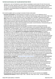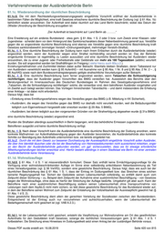 Verfahrenshinweise der Ausländerbehörde Berlin zugestimmt werden. Auch die Anerkennung ausländischer Berufsqualifikationen im Sinne von § 17a kann im Einzelfall zum Zuzug führen, sofern die im Anerkennungsbescheid vorgeschriebenen Anpassungsmaßnahmen oder weiteren Qualifikationen nachweislich im bisherigen Bundesland nicht angeboten werden. Die Wohnsitzauflage ist nach erfolgter Zustimmung auf den Zuzugsort zu ändern. Bei an uns gerichteten Bitten um Zustimmung gilt bezüglich unserer Prüfung das oben Gesagte. Ist eine Prüfung mangels hinreichender Angaben oder entsprechender Nachweise nicht möglich, ist die anfragende Ausländerbehörde zu bitten, die entsprechenden Informationen ggf. vom Betroffenen über den Weg des § 82 Abs. 1 zu beschaffen. Können wir nicht zustimmen, so ist unsere Stellungnahme jeweils kurz zu begründen, um der anfragenden Behörde die Möglichkeit zu geben, den Antrag des Betroffenen begründet abzulehnen. Wird unsere Zustimmung gegeben, ist der anfragenden Ausländerbehörde zusätzlich mitzuteilen, ob die Wohnsitzauflage gestrichen oder auf Berlin geändert werden soll. Im umgekehrten Fall ist der Antrag nach Aktenlage zu entscheiden, wenn binnen 3 Monaten die Zuzugsbehörde weder Unterlagen nachgefordert noch negativ Stellung genommen hat. Liegt dagegen eine negative Stellungnahme der Zuzugsbehörde vor, wird der Antrag abgelehnt. Liegen unterschiedliche Rechtspositionen der Behörden vor, kann die Zuzugsbehörde im Verwaltungsstreitverfahren als Beteiligte gehört werden. Im Fall des Zuzugs von Geduldeten ohne unsere Beteiligung gilt hinsichtlich einer Wohnsitzauflage etwas anderes. Vorsprechende Geduldete, die zur Wohnsitznahme in einem anderen Ort von Gesetzes wegen aktuell verpflichtet sind, sind mit ihren Anliegen an die örtlich zuständige Ausländerbehörde zu verweisen, das entsprechende Hinweisschreiben ist auszuhändigen. Hält der Vorsprechende dennoch an seinem Antrag fest, ist dieser Antrag dann unter Hinweis auf die fehlende örtliche Zuständigkeit abzulehnen. Hat die örtlich zuständige Ausländerbehörde die Wohnsitzauflage ohne unsere Beteiligung gestrichen oder geändert, sind die Betroffenen mit ihren Anliegen an die örtlich zuständige Ausländerbehörde zu verweisen, das entsprechende Hinweisschreiben ist auszuhändigen. Weigert diese sich weiterhin uns zu beteiligen, so sind diese negativen Kompetenzkonflikte durch die betroffenen Innenministerien und –senatsverwaltungen der Länder zu klären. Entsprechende Fälle sind der Referatsleitung mit einem kurzen Abgabevermerk zur Weiterleitung an die Fachaufsicht vorzulegen. Wird beantragt die Wohnsitzauflage für das Land Berlin zu streichen, ohne dass der Wohnsitz verlegt werden soll, muss der Antragsteller nachweisen, dass er den Lebensunterhalt in Berlin sichert. Es gilt die übliche Berechnungsweise, vgl. A.2.3. Sichert der geduldete Antragsteller den Lebensunterhalt, ist die Wohnsitzauflage gebührenfrei ersatzlos zu streichen. Bei jeder Verlängerung der Duldung ist die Wohnsitzauflage neu einzutragen, sofern der Geduldete nachweislich öffentliche Mittel in Anspruch nimmt. Öffentliche Mittel im Sinne von § 2 Abs. 3 Satz 2 sind unschädlich. 61.1e. frei 61.2. In Berlin wird von der in § 61 Abs. 2 eröffneten Möglichkeit, Ausreiseeinrichtungen für vollziehbar ausreisepflichtige Ausländer zu schaffen, kein Gebrauch gemacht. Dieses PDF wurde erstellt am: 16.08.2019 Seite 423 von 815