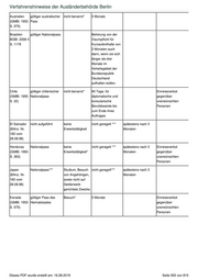 Verfahrenshinweise der Ausländerbehörde Berlin Australien gültiger australischer nicht benannt* 3 Monate (GMBl. 1953 Pass S. 575) Brasilien gültiger Nationalpass Befreiung von der BGBl. 2008 II Visumpflicht für S. 1179 Kurzaufenthalte von 3 Monaten auch dann, wenn sie sich länger als drei Monate im Hoheitsgebiet der Bundesrepublik Deutschland aufhalten wollen. Chile gültiger chilenischer nicht benannt* 90 Tage; für Einreiseverbot (GMBl. 1955 Nationalpass diplomatische und gegenüber S. 22) konsularische unerwünschten Berufsbeamte bis Personen zum Ende ihres Auftrages El Salvador nicht aufgeführt keine nicht geregelt *** spätestens nach 3 (BAnz. Nr. Erwerbstätigkeit Monaten 160 vom 28.08.98) Honduras Nationalpass keine nicht geregelt *** spätestens nach 3 Einreiseverbot (GMBl. 1963 Erwerbstätigkeit* Monaten gegenüber S. 363) unerwünschten Personen Japan Nationalpass*** Studium, Besuch nicht geregelt*** spätestens nach 3 (BAnz. Nr. von Angehörigen, Monaten 160 vom sowie nicht auf 28.08.98) Gelderwerb gerichtete Zwecke Kanada gültiger Pass des Besuch* 3 Monate Einreiseverbot (GMBl. 1953 Heimatstaates gegenüber S. 575) unerwünschten Personen Dieses PDF wurde erstellt am: 16.08.2019 Seite 555 von 815