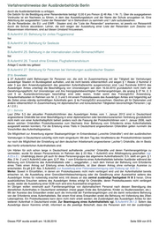 Verfahrenshinweise der Ausländerbehörde Berlin Danach benötigen drittstaatsangehörige Arbeitnehmer, die in einem anderen Mitgliedstaat der EU die Rechtsstellung eines langfristig Aufenthaltsberechtigten besitzen, kein Visum (mehr), wenn sie bis zu 90 Tage innerhalb von zwölf Monaten eine Dienstleistung nach § 21 BeschV in Deutschland erbringen. B.AufenthV.18. Befreiung für Inhaber von Reiseausweisen für Flüchtlinge frei B.AufenthV.19. Befreiung für Inhaber dienstlicher Pässe Mit Inkrafttreten der 8. VO zur Änderung der AufenthV zum 05.03.2013 sind nun auch Inhaber von Diplomatenpässen von Ecuador und Georgien sowie Inhaber von ecuadorianischen Dienstpässen von der Visumpflicht für die Einreise und den Kurzaufenthalt befreit. Die EU hat die bestehenden Visaerleichterungsabkommen mit der Ukraine und der Republik Moldau durch weitere Abkommen, die seit dem 01.07.2013 Anwendung finden, geändert. Gem. Art. 10 Abs. 2 der Abkommen können Inhaber von biometrischen Dienstpässen der Ukraine und der Republik Moldau visumfrei für höchstens 90 Tage pro Zeitraum von 180 Tagen in das Gebiet der Mitgliedstaaten einreisen und sich darin aufhalten. B.AufenthV.20. Befreiung für Inhaber von Ausweisen der Europäischen Union und zwischenstaatlichen Organisationen und der Vatikanstadt frei B.AufenthV.21. Befreiung für Inhaber von Grenzgängerkarten frei B.AufenthV.22. Befreiung für Schüler auf Sammellisten Nach § 22 benötigen Schüler, die nicht Angehörige eines Mitgliedstaates der EU oder des EWR sind, jedoch in einem solchen Staat ihren Wohnsitz haben, bei Schulreisen innerhalb der EU und des EWR keinen Aufenthaltstitel, sofern sie die Berechtigung zur Rückkehr in den Herkunftsstaat durch eine "Liste der Reisenden" nachweisen und der Zielstaat sowie die Transitstaaten die entsprechenden EU- Regelungen in nationales Recht übernommen haben. Die "Liste der Reisenden" gilt für die Reiseteilnehmer, für die darin ein Lichtbild angebracht ist, gleichzeitig als Passersatz für diese Reise.Hierfür ist das Sachgebiet IV A 3 zentral zuständig. Es gilt folgendes Verfahren: Die Schule beantragt formlos unter Angabe von Zweck, Ziel und Dauer der Reise sowie der genauen Personalien der teilnehmenden ausländischen Schüler die Reisendenliste. Für die Schüler, die keinen eigenen Pass oder Passersatz besitzen, ist ein biometrisches Lichtbild beizufügen. Nach Überprüfung des aufenthaltsrechtlichen Status sind die Personalien der teilnehmenden Schüler in die Liste einzutragen und die Berechtigung zur Wiedereinreise in die Bundesrepublik Deutschland zu bestätigen. Auch Minderjährige und Heranwachsende, deren Aufenthalt geduldet wird oder die vom Erfordernis eines Aufenthaltstitels zum Beispiel als Angehörige von Diplomaten oder gem. § 27 befreit sind, können nach dem mit dem 2. ÄndG eingefügten § 22 Abs. 2 in die Reisendenliste eingetragen werden, wenn sie Schüler einer allgemeinbildenden oder berufsbildenden Schule sind und von einer Lehrkraft begleitet werden. Sie sind dann für die Wiedereinreise vom Erfordernis eines Aufenthaltstitels befreit. Bei Geduldeten ist Voraussetzung, dass im Vorgriff auf die erwartete Wiedereinreise entschieden wurde, die Duldung über das Datum der beabsichtigten Wiedereinreise hinaus zu verlängern. Dies kann nur durch das aktenhaltende Sachgebiet - im Regelfall IV A 3 selbst oder IV A 2 bzw. IV A 4 erfolgen. Hierauf ist die Schule durch IV A 3 im Einzelfall hinzuweisen. Spricht der Geduldete dort nicht vor und/oder wird die Duldung nicht über den Tag der Wiedereinreise hinaus verlängert, kann der Betroffene nicht auf die Reisendenliste aufgenommen werden. Ist die Duldung dagegen ausweislich des AusReg über das Datum der beabsichtigten Wiedereinreise hinaus gültig, so kann IV A 3 den Geduldeten grundsätzlich ohne Abstimmung mit dem jeweils zuständigen Sachgebiet und ohne Einsicht in die Ausländerakte zu nehmen in die Liste der Reisenden aufnehmen. Sind andere Sachgebiete - insbesondere IV R 1 - 3 oder IV P - aktenführend, erfolgt die Aufnahme in die Reisendenliste nur im Einvernehmen mit dem zuständigen Sachgebiet. Merke: Bei Geduldeten ist auf der Liste gem. § 22 Absatz 2 anzuordnen, dass die Abschiebung nach der Wiedereinreise ausgesetzt wird. Diese Anordnung der aufschiebend bedingten Duldung ist erforderlich, weil mit einer Ausreise eine Duldung erlischt (vgl. Nr. 3.3.6 AufenthG VwV). Die Duldung, deren Wirkung aufschiebend bedingt mit der Wiedereinreise eintritt, ist auf der Schülersammelliste zu vermerken. Der Vermerk hat den Wortlaut: „Die Abschiebung des Schülers/der Schülerin/der Schüler ist nach der Wiedereinreise und bis zum … ausgesetzt (§ 22 Absatz 2 AufenthV).“ Für Schüler, die im Besitz einer Aufenthaltsgestattung .....(weggefallen)...sind, findet § 22 Abs. 2 entsprechend Anwendung. In jedem Fall wird bei Geduldeten und Gestatteten je eine Kopie der Reisendenliste zur Ausländerakte gegeben. Nach Abstimmung auf europäischer Ebene bestehen seitens des BMI keine Bedenken, auch Berufsschüler in die begünstigenden Regelungen mit einzubeziehen, so dass auch diese in die Liste der Reisenden aufgenommen werden können. Die Betreffenden sollten allerdings vorsorglich darauf hingewiesen werden, dass die Ausstellung einer Reisendenliste in diesen Fällen immer mit dem Risiko verbunden ist, dass die zuständigen Behörden in den Mitgliedstaaten - aus welchen Gründen auch immer - diese Liste nicht akzeptieren und deshalb Schwierigkeiten bei Einreise und Aufenthalt entstehen können. Nach dem Ausfüllen der Liste ist diese einem Beauftragten der Schule mit dem Hinweis auszuhändigen, dass die von der Schulleitung geforderten Angaben (Zeilen 1 - 4 sowie linkes Kästchen darunter) unbedingt einzutragen und vom Schulleiter - persönlich oder durch den allgemein bestellten Vertreter - gegenzuzeichnen sind. Merke: Die Eintragung und Gegenzeichnung hat gem. Nr. 3.3.6 AufenthG- VwV grundsätzlich vor der Bestätigung der Lis