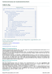 Verfahrenshinweise der Ausländerbehörde Berlin VAB A 25a Inhaltsverzeichnis A.25a. Aufenthaltsgewährung bei gut integrierten Jugendlichen und Heranwachsenden ...... 242 (AsylVfbeschlG; 21.03.2019; 2. ÄndGAusreisepflicht) .............................................. 242 25a.0. Zur Ermessensausübung ............................................................................... 242 25a.1.1.0. Erteilungsvoraussetzungen ............................................................... 242 Begünstigter Personenkreis ........................................................................ 242 Geduldeter Aufenthalt ................................................................................. 242 Familiennachzug ......................................................................................... 243 Geltungsdauer ............................................................................................. 243 Erwerbstätigkeit ........................................................................................... 243 25a.1.1.1. Ununterbrochener Aufenthalt seit 4 Jahren ............................. 243 25a.1.1.2. Erfolgreicher Schulbesuch seit 4 Jahren ................................... 243 25a.1.1.3. Zeitpunkt der Antragstellung ...................................................... 244 25a.1.1.4. Positive Integrationsprognose .................................................... 244 25a.1.1.5. Bekenntnis zur freiheitlich demokratischen Grundordnung ........ 244 25a.1.2. Zum Lebensunterhalt ........................................................................... 245 25a.1.3. Versagungsgründe ............................................................................... 245 25a.2.1. Aufenthaltsrecht für Eltern von Minderjährigen ......................................... 245 25a.2.1.2. Lebensunterhaltssicherung ............................................................... 245 25a.2.2. Aufenthaltsrecht für Geschwister von nach Abs.1 Begünstigten ................. 246 25a.2.3. Aufenthaltsrecht für Ehegatten oder Lebenspartner .................................... 246 25a.2.4. Aufenthaltsrecht für minderjährige ledige Kinder ......................................... 246 25a.3. Ausweisungsinteresse .................................................................................... 246 A.25a. Aufenthaltsgewährung bei gut integrierten Jugendlichen und Heranwachsenden ( AsylVfbeschlG; 21.03.2019; 2. ÄndGAusreisepflicht ) Checkliste § 25a Abs. 1 Checkliste §§ 25a Abs. 2, 60a Abs. 2b 25a.0. Zur Ermessensausübung Liegen die Voraussetzungen des § 25 a Abs. 1 bzw. Abs. 2 Satz 2 vor, soll die Aufenthaltserlaubnis erteilt werden, d.h. nur in Ausnahmefällen ist von der Titelerteilung abzusehen. Auch im Rahmen der Titelerteilung nach § 25a Abs. 2 Satz 1 ist regelmäßig das Ermessen zugunsten des Betroffenen auszuüben, so die besonderen und allgemeinen Erteilungsvoraussetzungen vorliegen. Insofern ist auch hier das “kann“ hier praktisch wie ein „ist“ zu lesen. Ein Ausnahmefall, bei dem das nach § 25a Abs. 1 eröffnete Ermessen allerdings zu Lasten des Ausländers auszuüben ist, liegt vor, solange er minderjährig ist und Ist- Ausweisungsgründe nach § 53 AufenthG a.F. bzw. ein Ausweisungsinteresse nach § 54 n.F. bei beiden Eltern oder einem allein personensorgeberechtigten Elternteil der Erteilung einer Aufenthaltserlaubnis nach § 25a Abs. 2 Satz 1 oder einer Duldung nach § 60a Abs. 2b (vgl. A.60a.2b.) an beide Eltern oder den allein sorgeberechtigten Elternteil entgegenstehen. 25a.1.1. 0 . Erteilungsvoraussetzungen Begünstigter Personenkreis Nach dem Gesetzeswortlaut kommt die Erteilung einer Aufenthaltserlaubnis nur für einen jugendlichen oder heranwachsenden geduldeten Ausländer in Betracht. Jugendlicher ist man nach § 1 Absatz 2 JGG mit 14 Jahren. Heranwachsender ist nach § 1 Absatz 2 JGG, wer 18, aber noch nicht 21 Jahre alt ist. Zwar ist dem Wortlaut des § 25a Abs. 1 selbst nicht unmittelbar zu entnehmen, dass zur näheren Bestimmung des von dieser Norm erfassten Personenkreises auf die Legaldefinition des § 1 Abs. 2 Jugendgerichtsgesetzes (JGG) zurückzugreifen ist. Die Anlehnung an diese Legaldefinition geht allerdings eindeutig aus der Begründung zum Gesetzentwurf hervor (BT-Drs. 18/4097, S. 42, Nr. 12). Geduldeter Aufenthalt Dieses PDF wurde erstellt am: 29.11.2019 Seite 242 von 824