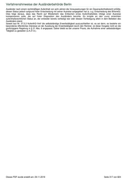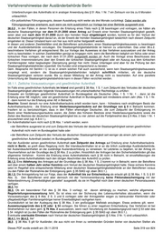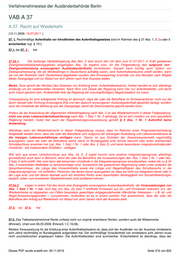 Verfahrenshinweise der Ausländerbehörde Berlin VAB A 38 Inhaltsverzeichnis A.38. Aufenthaltstitel für ehemalige Deutsche ........................................................................................................................ 318 38.1.1. Zeitliche Voraussetzungen und gewöhnlicher Aufenthalt .................................................................................... 319 38.s.1. Verfahren bei Familienangehörigen ............................................................................................................................ 320 Ehegatten oder Kinder, denen nach dem Verlust der deutschen Staatsangehörigkeit ein Aufenthaltstitel erteilt wurde: ...... 320 Kinder, die nach Verlust der deutschen Staatsangehörigkeit geboren wurden ............................................................... 320 Kinder, die vor Verlust der deutschen Staatsangehörigkeit geboren wurden .................................................................. 320 38.s.2. Verfahren in sonstigen Fällen ...................................................................................................................................... 320 A.38. Aufenthaltstitel für ehemalige Deutsche ( 09.04.2013; 18.03.2014 ) 38.0. 1. Die Vorschrift des § 38 regelt umfänglich ein besonderes Aufenthaltsrecht für ehemalige Deutsche. Abs. 1 bezieht sich auf die Fälle, in denen ein Deutscher, der seinen gewöhnlichen Aufenthalt im Inland hat, seine deutsche Staatsangehörigkeit verliert, während Abs. 2 für im Ausland aufhältige Personen gilt. Praktische Bedeutung hat diese Vorschrift durch die mit Wirkung zum 01.01.2000 erfolgte Änderung des § 17 Nr. 2 i.V.m. § 25 Staatsangehörigkeitsgesetz (StAG). Danach haben diejenigen eingebürgerten Personen die deutsche Staatsangehörigkeit verloren, die nach diesem Zeitpunkt auf Antrag eine ausländische Staatsangehörigkeit erworben haben. Soweit teilweise vertreten wird, die Vorschrift des § 38 sei jedenfalls für solche Personen ohne Bedeutung, die vor dem Erwerb der deutschen Staatsangehörigkeit im Besitz eines unbefristetes Aufenthaltsrecht gewesen seien, weil dieses Aufenthaltsrecht nach dem Verlust der deutschen Staatsangehörigkeit wieder auflebe, ist dies nicht richtig. Mit dem Erwerb der deutschen Staatsangehörigkeit erlischt jede Art von Aufenthaltstitel endgültig und lebt gerade nicht wieder auf (vgl. dazu im Einzelnen unter A.4.1.1. mit Hinweis auf BVerwG, Urteil vom 19.04.2011 - BVerwG 1 C. 2.10 -, OVG NRW, Beschluss vom 31.01.2008 - 18 A 4547/06 -, AuAS 2008, S. 62 ff.). 38.0. 2. Die deutschen Personaldokumente haben mit Verlust der deutschen Staatsangehörigkeit ihre Gültigkeit verloren und sind vom Ausländer beim Vorsprachetermin vorzulegen. Deutsche Personalausweise und soweit vorhanden deutsche Reisepässe oder ggf. Verlustanzeigen der deutschen Personaldokumente sind an die ausstellende Stelle zu übersenden. Ist die ausstellende Stelle aus dem oder den Personaldokumenten nicht ersichtlich, erfolgt eine Übersendung an II A 21. Wird die Aushändigung abgelehnt, so ist II A 21 hiervon mittels eines Formbriefes zu unterrichten. Es ist stets eine Kopie des Nachweises des Erwerbs der ausländischen Staatsangehörigkeit, hilfsweise eine Kopie des ausländischen Passes, aus der sich das Datum der Ausstellung ergibt (bei türkischen Staatsangehörigen die letzte Seite des Passes – Nüfus -, weil das dortige Datum dem Wiedereinbürgerungsdatum näher kommt als das Passausstellungsdatum), mit zu übersenden. Die Erteilung des Aufenthaltstitels hat auch bei Verweigerung der Herausgabe zu erfolgen, so die gesetzlichen Voraussetzungen erfüllt sind. 38.0. 3. Besteht die deutsche Staatsangehörigkeit nicht oder nicht mehr, ist aufenthaltsrechtlich zu entscheiden bzw. eine Fiktionsbescheinigung gem. § 81 Abs. 3 S. 1 auszustellen, ohne dass auf ein noch mögliches oder erfolgtes Rechtsmittel gegen den Feststellungsbescheid der Staatsangehörigkeitsbehörde zugewartet wird. Zwar hat ein solches Rechtsmittel gegen den Feststellungsbescheid der Staatsangehörigkeitsbehörde aufschiebende Wirkung gem. § 80 Abs.1 VwGO. Diese aufschiebende Wirkung bezieht sich aber lediglich auf die Feststellung selbst und ihre Wirkungen, berührt aber nicht einen kraft Gesetzes zu einem bestimmten Zeitpunkt eintretenden Verlust der deutschen Staatsangehörigkeit selbst. Dies gilt etwa in den Fällen, in denen Betroffene, die die deutsche Staatsangehörigkeit qua Geburt erworben haben, bei Volljährigkeit für eine Staatsangehörigkeit optieren müssen (vgl. § 29 StAG). 38.0.4 . Der Ausländer ist spätestens im Rahmen der Terminvereinbarung darüber zu informieren, dass bei der Vorsprache die Vorlage folgender Unterlagen erforderlich ist: Eine Bescheinigung über die Meldezeiten in Berlin ab dem 01.01.1995 und über den Zeitpunkt des Erwerbs der deutschen Staatsangehörigkeit. Die gebührenpflichtige erweiterte Meldebescheinigung wird von jedem Berliner Bürgeramt oder II A ausgestellt. Einen Nachweis über den Zeitpunkt des Erwerbs der ausländischen Staatsangehörigkeit (bspw. Erwerbsurkunde oder Bescheinigung des Generalkonsulats/der Botschaft). Kann dieser nicht vorgelegt werden, so ist zugunsten des Betroffenen das Datum der Ausstellung des ausländischen Passes als Zeitpunkt des Verlusts der deutschen Staatsangehörigkeit zu Grunde zu legen. Im Falle eines zwischenzeitlichen Aufenthalts in einem anderen Bundesland, der nicht durch eine Bescheinigung eines Berliner Bürgeramtes dokumentiert werden kann, sind entsprechende Nachweise zu erbringen, die belegen, dass der Ausländer seinen gewöhnlichen Aufenthalt im Bundesgebiet hatte (Schulzeugnisse, Arbeits- und Mietverträge). Bei Dieses PDF wurde erstellt am: 29.11.2019 Seite 318 von 824