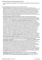 Verfahrenshinweise der Ausländerbehörde Berlin Aufenthaltsbeendigung nicht entgegenstehen. Die Wohnsitzauflage ist nach erfolgter Zustimmung auf den Zuzugsort zu ändern. Eine Zustimmung kann zudem aus sonstigen humanitären Gründen erteilt werden: besonderer Schutzbedarf: der Wohnortwechsel ist erforderlich zum Schutz vor einer Gefährdung, die von Familienangehörigen bzw. dem ehemaligen Partner im Gebiet der Wohnsitzauflage ausgeht. Auch in diesen Fällen ist die Streichung nur nach vorheriger Zustimmung der für den Zuzugsort örtlich zuständigen Ausländerbehörde möglich. Merke: Richtet sich der Antrag an Berlin, ist in dieser Fallkonstellation immer auch zu prüfen, worin die Gefahr konkret besteht und warum ein Wohnortwechsel insbesondere nach Berlin erforderlich ist. Dabei obliegt es dem Antragsteller, mittels erfolgter gerichtlicher Näherungsverbote, polizeilicher Wohnungsverweisungen bzw. Platzverweisen und Strafanzeigen gegen den Verfolger, seinen Schutzbedarf nachzuweisen. Auch die Aufnahme in Schutzeinrichtungen wie Frauenhäuser ist ein Indiz für bestehenden Schutzbedarf. medizinische Behandlung körperlicher Erkrankungen: Grundsätzlich bestehen bundesweit gleichwertige Behandlungsmöglichkeiten. Dies gilt auch bei schweren Erkrankungen, die eine stationäre Pflege notwendig machen. Die Mitwirkungs- und Nachweispflicht, dass nur am Zuzugsort eine adäquate Behandlung gewährleistet ist, obliegt dem Antragsteller. Hierfür gilt der übliche Maßstab für Atteste. Zur Glaubhaftmachung der Erkrankung bedarf es regelmäßig der Vorlage einer von einem approbierten Arzt ausgestellten qualifizierten Bescheinigung. Eine ärztliche Bescheinigung ist daher grundsätzlich nur dann als qualifiziert anzusehen, wenn die nachstehenden Merkmale und Voraussetzungen erfüllt sind. In Ausnahmefällen kann eine ärztliche Bescheinigung aber auch dann noch qualifiziert sein, wenn zwar eines der aufgelisteten Kriterien fehlt, die Bescheinigung im Übrigen aber dem Qualitätsstandard genügt und es auf das fehlende Kriterium ausnahmsweise nicht ankommt. Bescheinigungen eines Arztes, der einen außerhalb seines Fachgebietes liegenden Befund attestiert, genügen aber grundsätzlich nicht. Aus der ärztlichen Bescheinigung muss die genaue Bezeichnung der Krankheit(en) hervorgehen, ggf. deren Stadium sowie die erforderliche weitere Behandlung und Medikation (sowie ggf. auch die erforderlichen diagnostischen Maßnahmen). Zusätzlich ist eine Prognose des zu erwartenden Krankheitsverlaufes sowohl mit der erforderlichen Behandlung als auch ohne diese zu verlangen, um das Maß der Notwendigkeit der Behandlung beurteilen zu können. Wird die ärztliche Behandlung medikamentös unterstützt, muss dem Attest zu entnehmen sein, auf welche Medikamente der Erkrankte aktuell angewiesen ist. Es sollten vom behandelnden Arzt auch ihm bekannte Alternativpräparate, wenigstens aber die Inhaltsstoffe der verordneten benannt werden. Erfüllen vorgelegte Atteste diese Anforderungen nicht, ist dem Betroffenen unter Hinweis auf § 82 Abs. 1 Gelegenheit zur Nachbesserung zu geben. Bereits unter Ausnutzung der erloschenen räumlichen Beschränkung aufgenommene Behandlungen am Zuzugsort bleiben bei der Entscheidung unberücksichtigt. medizinische Behandlung geistiger Erkrankungen: Eine Zustimmung, insbesondere bei psychischen Erkrankungen, kommt in Betracht, wenn nachweislich im bisherigen Bundesland eine Behandlung aus Gründen der Verständigung stark erschwert, jedoch am Zuzugsort gewährleistet ist. Auskunft darüber bieten die Arztsuchen der regionalen Kassenärztlichen Vereinigungen ( http://www.kbv.de/html/arztsuche.php). Bei geltend gemachter posttraumatischer Belastungsstörung (PTBS) ist darüber hinaus darauf zu achten, dass die ärztlichen Atteste inhaltlich den von der Ärztekammer Berlin aufgestellten Mindestkriterien für psychiatrisch-psychologische Stellungnahmen entsprechen. Dazu gehören insbesondere die kurze Beschreibung des Beschwerdebildes, des somatischen, psychischen oder psychosomatischen Befundes (anamnestische Angaben nur, soweit diese zur Sicherung und Nachvollziehbarkeit der Diagnose relevant sind), eine eindeutige Diagnose der Erkrankung(en) nach ICD oder DSM, evtl. Zusatzcodierungen (z.B. akut, chronisch, mit verzögertem Beginn), die empfohlene weitere Behandlung (z.B. Psychotherapie, medikamentöse Therapie) und nicht zuletzt die mittel- bis langfristige Prognose über den weiteren Krankheits- und Behandlungsverlauf, also zu den konkret drohenden Gefahren, der Wahrscheinlichkeit und dem Zeitpunkt ihres Eintritts. Erfüllen vorgelegte Atteste diese Anforderungen nicht, ist dem Betroffenen unter Hinweis auf § 82Abs. 1 Gelegenheit zur Nachbesserung zu geben. Bereits unter Ausnutzung der erloschenen räumlichen Beschränkung aufgenommene Behandlungen am Zuzugsort bleiben bei der Entscheidung unberücksichtigt. Beschäftigungen ohne Sicherung des Lebensunterhalts: Dient der Zuzug der Aufnahme einer erlaubten Ausbildung oder Studiums im Sinne von §§ 17 Abs. 1, 60a Abs. 2 Satz 4 oder 16 Abs. 1 soll dem Zuzugsantrag zugestimmt werden. Auch die Anerkennung ausländischer Berufsqualifikationen im Sinne von § 17a kann im Dieses PDF wurde erstellt am: 29.11.2019 Seite 432 von 824