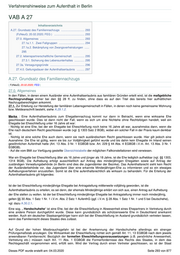 Verfahrenshinweise zum Aufenthalt in Berlin VAB A 27 Inhaltsverzeichnis A.27. Grundsatz des Familiennachzugs .............................. 293 (FzNeuG; 20.02.2020; FEG ) ....................................... 293 27.0. Allgemeines ......................................................... 293 27.1a.1.1. Zwei Fallgruppen ................................. 294 27.1a.2. Bekämpfung von Zwangsverheiratungen ...... 295 27.2. lebenspartnerschaftliche Gemeinschaft .............. 295 27.3.1. Sicherung des Lebensunterhaltes ............. 295 27.3a. Versagungsgründe ............................................ 296 27.4.0. Geltungsdauer der Aufenthaltserlaubnis .......... 297 A.27. Grundsatz des Familiennachzugs ( FzNeuG; 20.02.2020; FEG ) 27.0. Allgemeines In den Fällen, in denen einem Ausländer eine Aufenthaltserlaubnis aus familiären Gründen erteilt wird, ist die maßgebliche Rechtsgrundlage immer bei den §§ 28 ff. zu finden, ohne dass es auf den Titel des bereits hier aufhältlichen Nachzugsberechtigten ankommt. 27.1. Zur Erteilung zur Herstellung der familiären Lebensgemeinschaft in Fällen, in denen noch keine gemeinsame Wohnung bzw. Meldeanschrift besteht, siehe A.29.1.2. Merke : Eine Aufenthaltserlaubnis zum Ehegattennachzug kommt nur dann in Betracht, wenn eine wirksame Ehe geschlossen wurde. Dies ist dann nicht der Fall, wenn es sich um eine Nichtehe ohne Rechtsfolgen handelt, weil ein Ehegatte bei Eheschließung unter 16 Jahre alt war: - Nichtig ist eine Ehe, bei der ein Ehegatte bei Eheschließung noch keine 16 Jahre alt war, ausnahmslos dann, wenn die Ehe nach deutschem Recht geschlossen wurde (vgl. § 1303 Satz 2 BGB), wobei ein solcher Fall in der Praxis kaum denkbar ist. - Nichtig ist eine solche Ehe auch dann, wenn sie nach ausländischem Recht geschlossen wurde. Hier gilt jedoch eine Ausnahme: Die Ehe ist gültig, wenn sie bis zur Volljährigkeit geführt wurde und bis dahin kein Ehegatte im Inland seinen gewöhnlichen Aufenthalt hatte (Art. 13 Abs. 3 Nr. 1 EGBGB bzw. Art. 229 § 44 Abs. 4 EGBGB i.V.m. Art. 13 Abs. 3 Nr. 1 EGBGB). - Auf die vom BMI zur Verfügung gestellte Übersichtstabelle der möglichen Fallkonstellationen wird verwiesen. War ein Ehegatte bei Eheschließung älter als 16 Jahre und jünger als 18 Jahre, ist die Ehe lediglich aufhebbar (vgl. §§ 1303, 1314 BGB). Die Aufhebung erfolgt ausschließlich auf Antrag des minderjährigen Ehegatten sowie auf Antrag der zuständigen Verwaltungsbehörde (in Berlin sind dies die Jugendämter der Bezirke). Das Aufenthaltsrecht sieht kein Recht der Ausländerbehörde vor, das Jugendamt über eine erkannte Minderjährigen-Ehe zu informieren und so ein etwaiges Aufhebungsverfahren anzustoßen. Somit ist die Ehe aufenthaltsrechtlich als wirksam zu behandeln. Für die Erteilung der Aufenthaltserlaubnis gilt folgendes: Ist der bei Eheschließung minderjährige Ehegatte bei Antragstellung mittlerweile volljährig geworden, ist die Aufenthaltserlaubnis zu erteilen, es sei denn, der ehemals Minderjährige erklärt von sich aus, einen Antrag auf Aufhebung der Ehe stellen zu wollen. Ist der bei Eheschließung minderjährige Ehegatte bei Antragstellung immer noch minderjährig, gelten §§ 30 Abs. 1 Satz 1 Nr. 1 i.V.m. Abs. 2 Satz 1 AufenthG (ggf. i.V.m. § 28 Abs. 1 Satz 1 Nr. 1 und 5 bei Deutschehe), vgl. dazu A.30.2.1. Eine sog. „ Handschuhehe“ ist eine Ehe, bei der die Eheschließung in Abwesenheit eines Ehepartners in Vertretung durch eine andere Person durchgeführt wurde. Diese kann grundsätzlich als schützenswerte Ehe in Deutschland anerkannt werden. Auch ein deutscher Staatsangehöriger kann sich bei der Eheschließung im Ausland grundsätzlich vertreten lassen, wenn das Familienrecht dieses Staates dies zulässt. Auf Grund der hohen Missbrauchsgefahr ist bei der Anerkennung der Handschuhehe allerdings ein strenger Prüfungsmaßstab anzulegen. Die Wirksamkeit der Eheschließung richtet sich gemäß Art. 11, 13 EGBGB nach dem jeweils anwendbaren Familienrecht. Bezüglich der formellen Eheschließungsvoraussetzungen (z.B. persönliche Anwesenheit, Vertretung etc.) müssen nach Art. 11 Abs. 1 EGBGB die Formerfordernisse des Rechts des Staates, in dem das Rechtsgeschäft vorgenommen wird, erfüllt sein. Wird der Vertrag durch einen Vertreter geschlossen, so ist der Staat Dieses PDF wurde erstellt am: 04.03.2020 Seite 293 von 877