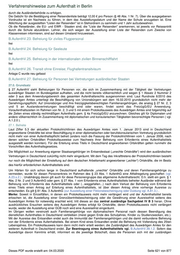 Verfahrenshinweise zum Aufenthalt in Berlin Danach benötigen drittstaatsangehörige Arbeitnehmer, die in einem anderen Mitgliedstaat der EU die Rechtsstellung eines langfristig Aufenthaltsberechtigten besitzen, kein Visum (mehr), wenn sie bis zu 90 Tage innerhalb von zwölf Monaten eine Dienstleistung nach § 21 BeschV in Deutschland erbringen. B.AufenthV.18. Befreiung für Inhaber von Reiseausweisen für Flüchtlinge frei B.AufenthV.19. Befreiung für Inhaber dienstlicher Pässe Mit Inkrafttreten der 8. VO zur Änderung der AufenthV zum 05.03.2013 sind nun auch Inhaber von Diplomatenpässen von Ecuador und Georgien sowie Inhaber von ecuadorianischen Dienstpässen von der Visumpflicht für die Einreise und den Kurzaufenthalt befreit. Die EU hat die bestehenden Visaerleichterungsabkommen mit der Ukraine und der Republik Moldau durch weitere Abkommen, die seit dem 01.07.2013 Anwendung finden, geändert. Gem. Art. 10 Abs. 2 der Abkommen können Inhaber von biometrischen Dienstpässen der Ukraine und der Republik Moldau visumfrei für höchstens 90 Tage pro Zeitraum von 180 Tagen in das Gebiet der Mitgliedstaaten einreisen und sich darin aufhalten. B.AufenthV.20. Befreiung für Inhaber von Ausweisen der Europäischen Union und zwischenstaatlichen Organisationen und der Vatikanstadt frei B.AufenthV.21. Befreiung für Inhaber von Grenzgängerkarten frei B.AufenthV.22. Befreiung für Schüler auf Sammellisten Nach § 22 benötigen Schüler, die nicht Angehörige eines Mitgliedstaates der EU oder des EWR sind, jedoch in einem solchen Staat ihren Wohnsitz haben, bei Schulreisen innerhalb der EU und des EWR keinen Aufenthaltstitel, sofern sie die Berechtigung zur Rückkehr in den Herkunftsstaat durch eine "Liste der Reisenden" nachweisen und der Zielstaat sowie die Transitstaaten die entsprechenden EU- Regelungen in nationales Recht übernommen haben. Die "Liste der Reisenden" gilt für die Reiseteilnehmer, für die darin ein Lichtbild angebracht ist, gleichzeitig als Passersatz für diese Reise.Hierfür ist das Sachgebiet IV A 3 zentral zuständig. Es gilt folgendes Verfahren: Die Schule beantragt formlos unter Angabe von Zweck, Ziel und Dauer der Reise sowie der genauen Personalien der teilnehmenden ausländischen Schüler die Reisendenliste. Für die Schüler, die keinen eigenen Pass oder Passersatz besitzen, ist ein biometrisches Lichtbild beizufügen. Nach Überprüfung des aufenthaltsrechtlichen Status sind die Personalien der teilnehmenden Schüler in die Liste einzutragen und die Berechtigung zur Wiedereinreise in die Bundesrepublik Deutschland zu bestätigen. Auch Minderjährige und Heranwachsende, deren Aufenthalt geduldet wird oder die vom Erfordernis eines Aufenthaltstitels zum Beispiel als Angehörige von Diplomaten oder gem. § 27 befreit sind, können nach dem mit dem 2. ÄndG eingefügten § 22 Abs. 2 in die Reisendenliste eingetragen werden, wenn sie Schüler einer allgemeinbildenden oder berufsbildenden Schule sind und von einer Lehrkraft begleitet werden. Sie sind dann für die Wiedereinreise vom Erfordernis eines Aufenthaltstitels befreit. Bei Geduldeten ist Voraussetzung, dass im Vorgriff auf die erwartete Wiedereinreise entschieden wurde, die Duldung über das Datum der beabsichtigten Wiedereinreise hinaus zu verlängern. Dies kann nur durch das aktenhaltende Sachgebiet - im Regelfall IV A 3 selbst oder IV A 2 bzw. IV A 4 erfolgen. Hierauf ist die Schule durch IV A 3 im Einzelfall hinzuweisen. Spricht der Geduldete dort nicht vor und/oder wird die Duldung nicht über den Tag der Wiedereinreise hinaus verlängert, kann der Betroffene nicht auf die Reisendenliste aufgenommen werden. Ist die Duldung dagegen ausweislich des AusReg über das Datum der beabsichtigten Wiedereinreise hinaus gültig, so kann IV A 3 den Geduldeten grundsätzlich ohne Abstimmung mit dem jeweils zuständigen Sachgebiet und ohne Einsicht in die Ausländerakte zu nehmen in die Liste der Reisenden aufnehmen. Sind andere Sachgebiete - insbesondere IV R 1 - 3 oder IV P - aktenführend, erfolgt die Aufnahme in die Reisendenliste nur im Einvernehmen mit dem zuständigen Sachgebiet. Merke: Bei Geduldeten ist auf der Liste gem. § 22 Absatz 2 anzuordnen, dass die Abschiebung nach der Wiedereinreise ausgesetzt wird. Diese Anordnung der aufschiebend bedingten Duldung ist erforderlich, weil mit einer Ausreise eine Duldung erlischt (vgl. Nr. 3.3.6 AufenthG VwV). Die Duldung, deren Wirkung aufschiebend bedingt mit der Wiedereinreise eintritt, ist auf der Schülersammelliste zu vermerken. Der Vermerk hat den Wortlaut: „Die Abschiebung des Schülers/der Schülerin/der Schüler ist nach der Wiedereinreise und bis zum … ausgesetzt (§ 22 Absatz 2 AufenthV).“ Für Schüler, die im Besitz einer Aufenthaltsgestattung .....(weggefallen)...sind, findet § 22 Abs. 2 entsprechend Anwendung. In jedem Fall wird bei Geduldeten und Gestatteten je eine Kopie der Reisendenliste zur Ausländerakte gegeben. Nach Abstimmung auf europäischer Ebene bestehen seitens des BMI keine Bedenken, auch Berufsschüler in die begünstigenden Regelungen mit einzubeziehen, so dass auch diese in die Liste der Reisenden aufgenommen werden können. Die Betreffenden sollten allerdings vorsorglich darauf hingewiesen werden, dass die Ausstellung einer Reisendenliste in diesen Fällen immer mit dem Risiko verbunden ist, dass die zuständigen Behörden in den Mitgliedstaaten - aus welchen Gründen auch immer - diese Liste nicht akzeptieren und deshalb Schwierigkeiten bei Einreise und Aufenthalt entstehen können. Nach dem Ausfüllen der Liste ist diese einem Beauftragten der Schule mit dem Hinweis auszuhändigen, dass die von der Schulleitung geforderten Angaben (Zeilen 1 - 4 sowie linkes Kästchen darunter) unbedingt einzutragen und vom Schulleiter - persönlich oder durch den allgemein bestellten Vertreter - gegenzuzeichnen sind. Merke: Die Eintragung und Gegenzeichnung hat gem. Nr. 3.3.6 AufenthG- VwV grundsätzlich vor der Bestätigung der Liste Di