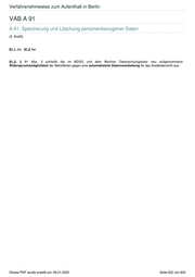 Verfahrenshinweise zum Aufenthalt in Berlin VAB A 91 A.91. Speicherung und Löschung personenbezogener Daten (2. ÄndG) 91.1. bis 91.2 frei 91.3. § 91 Abs. 3 schließt die im BDSG und dem Berliner Datenschutzgesetz neu aufgenommene Widerspruchsmöglichkeit der Betroffenen gegen eine automatisierte Datenverarbeitung für das Ausländerrecht aus. Dieses PDF wurde erstellt am: 06.01.2020 Seite 522 von 843