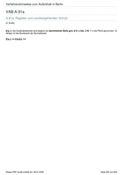 Verfahrenshinweise zum Aufenthalt in Berlin VAB A 91a A.91a. Register zum vorübergehenden Schutz (2. ÄndG) 91a. 0. Die Ausländerbehörde wird lediglich als übermittelnde Stelle gem. § 91 a Abs. 3 Nr. 1 in die Pflicht genommen. Im übrigen ist das Bundesamt der Normadressat. 91a.1. bis 91a.8.2. frei Dieses PDF wurde erstellt am: 06.01.2020 Seite 523 von 843