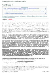 Verfahrenshinweise zum Aufenthalt in Berlin VAB E Israel 1 Inhaltsverzeichnis E.Israel.1. Ausländerrechtliche Behandlung jüdischer Zuwanderer, auch anderer Staatsangehörigkeiten ...................... 785 1. Ausstellung eines Reiseausweises für Flüchtlinge/für Ausländer .......................................................................... 786 Zum Verfahren bei vorliegendem Antrag auf Ausstellung/Verlängerung eines Reiseausweises für Flüchtlinge ...... 786 2. Ausstellung eines Reiseausweises für Staatenlose ............................................................................................... 786 E.Israel.1. Ausländerrechtliche Behandlung jüdischer Zuwanderer, auch anderer Staatsangehörigkeiten ( 05.06.2015; 21.06.2016 ) Die Innenministerkonferenz hatte am 18. November 2005 im Umlaufverfahren einen Beschluss zur Neuregelung der Aufnahme und Verteilung jüdischer Zuwanderer und ihrer Familienangehörigen aus der ehemaligen Sowjetunion mit Ausnahme der baltischen Staaten (Herkunftsgebiet) erlassen. Dieser ergänz te bzw. ersetzt e die früheren Beschlüsse etwa für die Personen, denen eine Aufnahmezusage eines Landes vor dem 1. Januar 2005 zugestellt worden ist (Altfallregelung). SenInn hat te uns Schreiben vom 16.1.2006 auf der Grundlage des § 23 AufenthG angewiesen entsprechend zu verfahren. Unter Berücksichtigung der am 24.05.2007 in Kraft getretenen Änderung des § 23 Abs. 2 AufenthG, gem. der die Zuständigkeit für die Entscheidungen über die sog. Übergangsfälle II (Antragstellung zwischen dem 01.07.2001 und dem 31.12.2004 ohne Zustellung einer Aufnahmezusage) und für Neufälle (Antragstellung ab 01.01.2005) zusätzlich zur bereits bestehenden Zuständigkeit für das Verteilverfahren von den Ländern auf das BAMF überging (vgl. § 75 Nr. 8 AufenthG), gilt im Einzelnen Folgendes: Die von den deutschen Auslandsvertretungen bis zum 31. Dezember 2004 zugestellten Aufnahmezusagen der Länder bleiben nach § 102 Abs. 1 Satz 1 Aufenthaltsgesetz wirksam. Zum Zweck der Einreise wird den Betroffenen jüdischen Zuwanderern und ihren gemeinsam mit ihnen aufzunehmenden Familienangehörigen in allen Fällen ein auf 90 Tage befristetes nationales Visum erteilt, in das Auflagen aus der Aufnahmezusage zu übernehmen sind. Die Zustimmung nach § 32 AufenthV durch SenInn gilt als erteilt, so dass wir der Visaerteilung in keinem Fall zustimmen müssen. Die aufgenommenen jüdischen Zuwanderer erhalten bei Vorsprache eine Niederlassungserlaubnis nach § 23 Abs. 2 in ihren Nationalpass, wobei als Rechtsgrundlage der § 23 Abs. 2 ohne weiteren Zusatz einzutragen ist. Die Niederlassungserlaubnis ist immer rückwirkend auf den Zeitpunkt der Antragstellung zu erteilen. Die Ausstellung eines Reiseausweises für Flüchtlinge ist ausgeschlossen. Aufgenommene Familienangehörige, die selbst nicht die Voraussetzungen für eine Aufnahme als jüdischer Zuwanderer erfüllen, erhalten eine Aufenthaltserlaubnis nach § 23 Abs. 2 AufenthG. Die Aufenthaltserlaubnis wird für 3 Jahre befristet bzw. verlängert. Für die Erteilung einer Niederlassungserlaubnis an Familienangehörige gelten keine Besonderheiten. Insofern wird auf die Ausführungen zu § 26 Abs. 4 verwiesen. Merke: Soweit die Aufnahmezusage des BAMF mit der Auflage versehen ist, einfache Sprachkenntnisse innerhalb von 12 Monaten nach Einreise gegenüber der Ausländerbehörde nachzuweisen, ist für die jüdischen Zuwanderer dennoch eine Niederlassungserlaubnis bzw. für ihre Familienangehörigen eine Aufenthaltserlaubnis für 3 Jahre zu erteilen. Einer gesonderten Nebenbestimmung zum Titel bedarf es nicht, da das BAMF die Auflage bereits verfügt hat, und hier ohnehin eine Verpflichtung zum Integrationskurs zu verfügen ist (§§ 44 Abs. 1 S. 1 Nr. 2, 44 a Abs. 1 S. 1 Nr. 1 a und b). Der Betroffene wird gebeten, den entsprechenden Nachweis durch eine Bestätigung über das Bestehen des Integrationskurses auf dem Postweg zu erbringen. Des Setzens einer Wiedervorlage bedarf es nicht. Die Niederlassungserlaubnis bzw. Aufenthaltserlaubnis wird bei Bezug von Leistungen nach dem Zweiten oder dem Zwölften Buch Sozialgesetzbuch oder dem Asylbewerberleistungsgesetz mit der Auflage „Wohnsitznahme im Land Berlin erforderlich“ versehen (bzgl. der Einzelheiten vgl. die Ausführungen unter A.12.2.). Jüdischen Zuwanderern, die ihre ursprgl. Aufnahmezusage nicht in Anspruch genommen haben, soll unter bestimmten Voraussetzungen die Möglichkeit gegeben werden, erneut einen Aufnahmeantrag zu stellen. Das BMI hat hierzu am 21.05.2015 seine Aufnahmeanordnung nach § 23 Abs. 2 AufenthG wie folgt modifiziert: Bei abgelaufener Aufnahmezusage ist einmalig eine erneute Antragstellung möglich • bei bis zum 31.12.2008 abgelaufenen Aufnahmezusagen und Dieses PDF wurde erstellt am: 06.01.2020 Seite 785 von 843