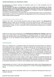 Verfahrenshinweise zum Aufenthalt in Berlin Jahre gültig. Zudem besteht nach hiesigen Erkenntnissen für diese Personen zudem die Möglichkeit, einmalig ein Wehrersatzgeld (2500 US-Dollar für im Ausland geborene, 8000 US Dollar für in Syrien geborene Syrer) zu zahlen. Syrer, die bis zum Alter von 42 Jahren keinen Wehrdienst geleistet haben, zahlen eine einmalige Verstreichensgebühr von 8000 US-Dollar. Unzumutbarkeit aus anderen Gründen Grundsätzlich ist von einer Zumutbarkeit insbesondere dann auszugehen, wenn der Betroffene persönlich einen Antrag bei einer Behörde seines Heimatstaates stellen und zu diesem Zweck in seinen Heimatstaat reisen muss (vgl. § 5 Abs. 2 Nr. 1). Unzumutbar ist eine Reise zur Antragstellung nur, wenn der Ausländer auf Grund hohen Alters, dauerhafter Erkrankung oder aus ähnlich schwerwiegenden Gründen daran gehindert ist. Von einer Unzumutbarkeit der Passbeschaffung ist weiter auszugehen, wenn der Betroffene glaubhaft macht, dass er einen Antrag auf Einbürgerung gestellt hat. Allerdings ist der Betroffene nicht aufzufordern, eine Einbürgerungszusicherung vorzulegen, da diese von den Staatsangehörigkeitsbehörden nicht ausgestellt wird. Zur Glaubhaftmachung genügt etwa ein Schreiben der Staatsangehörigkeitsbehörden, dass der Betroffene weitere Unterlagen vorlegen soll. In diesen Fällen ist dem Betroffenen ein Reiseausweis für Ausländer für ein Jahr auszustellen. Von einer Unzumutbarkeit der Passbeschaffung ist weiter auszugehen, wenn der Heimatstaat nicht nur die persönliche Antragstellung, sondern die Wohnsitznahme für einen längeren Zeitraum verlangt und der Ausländer dies nachweist. Dies ist z.B. bei ukrainischen Staatsangehörigen nicht der Fall. Nach Auskunft der ukrainischen Botschaft erhalten passlose ukrainische Staatsangehörige mit einer Niederlassungserlaubnis und einem Wohnsitz in Berlin einen Pass in der Botschaft ausgestellt, wenn eine Registrierung in der Botschaft vorhanden ist. Ist dies nicht der Fall, so gilt nach Auskunft der ukrainischen Botschaft seit dem 01.09.2005 folgendes Verfahren: Der Betroffene kann in der Botschaft der Ukraine einen Antrag auf Überprüfung der ukrainischen Staatsangehörigkeit stellen. Das Ergebnis wird immer schriftlich mitgeteilt. Liegt eine Bestätigung der ukrainischen Staatsangehörigkeit vor, müssen drei weitere Anträge zur Überprüfung der Wohnsitznahme im Ausland, auf Registrierung in der Botschaft und Ausstellung eines Reisepasses gestellt werden. Bei vollständigen Anträgen kann ein ukrainischer Reisepass durch die Botschaft ausgestellt werden. Der Antrag auf Registrierung wird sodann in der Ukraine bearbeitet. Bei Vorlage einer positiven Antwort wird der Betroffene in der Botschaft registriert und dies im Pass vermerkt. Eine Ausreise in die Ukraine zur Passbeschaffung ist damit in jedem Fall entbehrlich. Sofern die Staatsangehörigkeit eines Betroffenen durch das BAMF bereits geprüft und festgestellt wurde oder anderweitig nachgewiesen ist (z.B. durch Staatsangehörigkeitsurkunde) und durch das Herkunftsland ausnahmslos für Einreise und Aufenthalt nicht anerkannte Pässe oder Passersatzpapiere ausgestellt werden (z.B. Somalia Passinfo), ist von der Unzumutbarkeit der Passbeschaffung auszugehen, da der Betroffene keine Möglichkeit hat, von sich aus die Passpflicht zu erfüllen. Da Fälle von Repressalien gegenüber in Syrien verbliebenen Familienangehörigen bekannt sind, die im Zusammenhang mit der ehemaligen beruflichen Tätigkeit syrischer Staatsangehöriger stehen, ist von einer Unzumutbarkeit der Passbeschaffung für ehemalige Mitarbeiter der syrischen Polizei, desertierten Soldaten, ehemaligen Beamten sowie syrischen Oppositionsmitgliedern auszugehen. Dies gilt auch für die sie begleitenden minderjährigen Kinder und Ehegatten. Zur Prüfung der Glaubhaftigkeit eines derartigen Vortrages sind die Angaben im Asylverfahren (vgl. Anhörung, Begründung des BAMF-Bescheides) heranzuziehen. Zumutbarkeit einer Nachregistrierung im Heimatstaat Soweit der Heimatstaat die Passausstellung verweigert, weil der Betroffene dort nicht registriert ist, ist auch eine entsprechende Nachregistrierung zumutbar. Wenn ein Ausländer in der Vergangenheit über seine Identität und Staatsangehörigkeit getäuscht hat, kann eine Passausstellung bzw. eine zuvor erforderliche Nachregistrierung durch den Heimatstaat daran scheitern, dass der Ausländer und insbesondere seine Kinder in deutschen oder ausländischen Personenstandsurkunden unter falschen Personalien eingetragen sind. Hier ist es dem Ausländer zumutbar, eine Berichtigung der Urkunden vornehmen zu lassen. Bei deutschen Urkunden erfolgt dies über eine gerichtliche Berichtigung gemäß § 48 PStG (Stichwort: Umbeurkundung), die u.a. auf Antrag des Betroffenen selbst erfolgen kann. Verweigert der Heimatstaat eine Passausstellung, weil der Betroffene einen Namen führt, der aufgrund des dortigen Namensrechts nicht Grundlage für eine Registrierung oder eine Passausstellung sein kann, ist es auch zumutbar eine entsprechende Berichtigung deutscher oder ausländischer Urkunden bzw. eine Namensänderung im Heimatstaat zu veranlassen. Dies ist etwa dann der Fall, wenn der Heimatstaat die Ausstellung des Passes verweigert, weil ein Kind den Familiennamen der Mutter trägt und das Recht des Heimatstaates die Registrierung bzw. die Passausstellung nur unter dem Familiennamen des Vaters zulässt. Zwar berührt die Obliegenheit einer Namensänderung das allgemeine Persönlichkeitsrecht des Betroffenen gemäß Art. 2 Abs. 1 i.V.m. Art. 1 Abs. 1 GG. Namensänderungen und Urkundenberichtigungen bleiben aber vor dem Hintergrund der aus § 48 Abs. 3 Satz 1 AufenthG folgenden Mitwirkungspflichten dennoch zumutbar. Insoweit ist zu berücksichtigen, dass andernfalls allein aufgrund der Namenswahl die rechtlichen Bindungen eines Ausländers zum Staat seiner Staatsangehörigkeit faktisch abgebrochen würden, mit der Folge, dass dem Ausländer ein ihm ansons