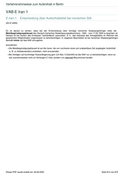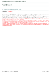 Verfahrenshinweise zum Aufenthalt in Berlin VAB E Iran 2 E.Iran.2. Rückführung in den Iran ( 02.02.2012; 11.07.2012 ) Mit Schreiben vom 05.10.2009 hatte die Senatsverwaltung für Inneres und Sport mit Blick auf die Unruhen im Iran einen dreimonatigen Abschiebungsstopp nach § 60a Abs. 1 AufenthG angeordnet, der nicht verlängert wurde. Vor dem Hintergrund der noch immer angespannten politischen Situation war allerdings zunächst vor der Einleitung von aufenthaltsbeendenden Maßnahmen die Zustimmung von SenInnDS zur beabsichtigten Abschiebung einzuholen. Dieser Zustimmungsvorbehalt wurde mit Schreiben vom 02.07.2012 mit Blick auf die zwischenzeitlich eingetretene Beruhigung der innenpolitischen Lage im Iran aufgehoben. Macht ein ausreisepflichtiger iranischer Staatsangehöriger eine Rückkehrunmöglichkeit geltend, so ist er auf das Asylverfahren zu verweisen bzw. ist bei einem geltend gemachten zielstaatsbezogenen Abschiebungshindernis nach § 60 Abs. 2, 3 5 oder 7 AufenthG das BAMF gem. § 72 Abs. 2 AufenthG zu beteiligen. SenInnDS ist allerdings weiterhin vor einer konkreten Rückführung in den Iran über die beabsichtigte Maßanhme zu informieren, damit ggf. auf aktuelle Änderungen der Lage im Iran reagiert werden kann (fmdl. Mitteilung vor Absendung des Abschiebungsersuchens). Dieses PDF wurde erstellt am: 26.06.2020 Seite 815 von 875
