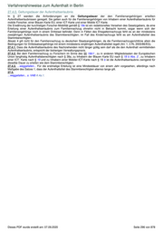 Verfahrenshinweise zum Aufenthalt in Berlin VAB A 27 Inhaltsverzeichnis A.27. Grundsatz des Familiennachzugs .............................. 292 (20.02.2020; FEG; 16.07.2020) .................................... 292 27.0. Allgemeines ......................................................... 292 27.1a.1.1. Zwei Fallgruppen ................................. 293 27.1a.2. Bekämpfung von Zwangsverheiratungen ...... 294 27.2. lebenspartnerschaftliche Gemeinschaft .............. 294 27.3.1. Sicherung des Lebensunterhaltes ............. 294 27.3a. Versagungsgründe ............................................ 295 27.4.0. Geltungsdauer der Aufenthaltserlaubnis .......... 295 A.27. Grundsatz des Familiennachzugs ( 20.02.2020; FEG ; 16.07.2020 ) 27.0. Allgemeines In den Fällen, in denen einem Ausländer eine Aufenthaltserlaubnis aus familiären Gründen erteilt wird, ist die maßgebliche Rechtsgrundlage immer bei den §§ 28 ff. zu finden, ohne dass es auf den Titel des bereits hier aufhältlichen Nachzugsberechtigten ankommt. 27.1. Zur Erteilung zur Herstellung der familiären Lebensgemeinschaft in Fällen, in denen noch keine gemeinsame Wohnung bzw. Meldeanschrift besteht, siehe A.29.1.2. Merke : Eine Aufenthaltserlaubnis zum Ehegattennachzug kommt nur dann in Betracht, wenn eine wirksame Ehe geschlossen wurde. Dies ist dann nicht der Fall, wenn es sich um eine Nichtehe ohne Rechtsfolgen handelt, weil ein Ehegatte bei Eheschließung unter 16 Jahre alt war: - Nichtig ist eine Ehe, bei der ein Ehegatte bei Eheschließung noch keine 16 Jahre alt war, ausnahmslos dann, wenn die Ehe nach deutschem Recht geschlossen wurde (vgl. § 1303 Satz 2 BGB), wobei ein solcher Fall in der Praxis kaum denkbar ist. - Nichtig ist eine solche Ehe auch dann, wenn sie nach ausländischem Recht geschlossen wurde. Hier gilt jedoch eine Ausnahme: Die Ehe ist gültig, wenn sie bis zur Volljährigkeit geführt wurde und bis dahin kein Ehegatte im Inland seinen gewöhnlichen Aufenthalt hatte (Art. 13 Abs. 3 Nr. 1 EGBGB bzw. Art. 229 § 44 Abs. 4 EGBGB i.V.m. Art. 13 Abs. 3 Nr. 1 EGBGB). - Auf die vom BMI zur Verfügung gestellte Übersichtstabelle der möglichen Fallkonstellationen wird verwiesen. War ein Ehegatte bei Eheschließung älter als 16 Jahre und jünger als 18 Jahre, ist die Ehe lediglich aufhebbar (vgl. §§ 1303, 1314 BGB). Die Aufhebung erfolgt ausschließlich auf Antrag des minderjährigen Ehegatten sowie auf Antrag der zuständigen Verwaltungsbehörde (in Berlin sind dies die Jugendämter der Bezirke). Das Aufenthaltsrecht sieht kein Recht der Ausländerbehörde vor, das Jugendamt über eine erkannte Minderjährigen-Ehe zu informieren und so ein etwaiges Aufhebungsverfahren anzustoßen. Somit ist die Ehe aufenthaltsrechtlich als wirksam zu behandeln. Für die Erteilung der Aufenthaltserlaubnis gilt folgendes: Ist der bei Eheschließung minderjährige Ehegatte bei Antragstellung mittlerweile volljährig geworden, ist die Aufenthaltserlaubnis zu erteilen, es sei denn, der ehemals Minderjährige erklärt von sich aus, einen Antrag auf Aufhebung der Ehe stellen zu wollen. Ist der bei Eheschließung minderjährige Ehegatte bei Antragstellung immer noch minderjährig, gelten §§ 30 Abs. 1 Satz 1 Nr. 1 i.V.m. Abs. 2 Satz 1 AufenthG (ggf. i.V.m. § 28 Abs. 1 Satz 1 Nr. 1 und 5 bei Deutschehe), vgl. dazu A.30.2.1. Eine sog. „ Handschuhehe“ ist eine Ehe, bei der die Eheschließung in Abwesenheit eines Ehepartners in Vertretung durch eine andere Person durchgeführt wurde. Diese kann grundsätzlich als schützenswerte Ehe in Deutschland anerkannt werden. Auch ein deutscher Staatsangehöriger kann sich bei der Eheschließung im Ausland grundsätzlich vertreten lassen, wenn das Familienrecht dieses Staates dies zulässt. Auf Grund der hohen Missbrauchsgefahr ist bei der Anerkennung der Handschuhehe allerdings ein strenger Prüfungsmaßstab anzulegen. Die Wirksamkeit der Eheschließung richtet sich gemäß Art. 11, 13 EGBGB nach dem jeweils anwendbaren Familienrecht. Bezüglich der formellen Eheschließungsvoraussetzungen (z.B. persönliche Anwesenheit, Vertretung etc.) müssen nach Art. 11 Abs. 1 EGBGB die Formerfordernisse des Rechts des Staates, in dem das Rechtsgeschäft vorgenommen wird, erfüllt sein. Wird der Vertrag durch einen Vertreter geschlossen, so ist der Staat Dieses PDF wurde erstellt am: 07.09.2020 Seite 292 von 878