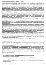 Verfahrenshinweise zum Aufenthalt in Berlin die Verpflichtung der Erziehungsberechtigten, den Besuch einer Kindertagesstätte für alle Kinder, die das zweite Lebensjahr zum Zeitpunkt der Erteilung der Aufenthaltserlaubnis vollendet haben bzw. während der Gültigkeit der Aufenthaltserlaubnisse vollenden, ohne schulpflichtig zu sein, sicherzustellen. Die Möglichkeit für alle Kinder ab Vollendung des zweiten Lebensjahres, einen Kindergarten zu besuchen, ergibt sich aus dem Schreiben der Senatsverwaltung für Inneres und Sport vom 04.12.2006, namentlich aus dem Verweis auf § 4 Abs. 3 des Kindertagesbetreuungsreformgesetzes. Dort heißt es: „Für Kinder, die das zweite Lebensjahr vollendet haben, liegt regelmäßig ein Bedarf zumindest für eine Halbtagsförderung in einer Tageseinrichtung vor, wenn die Förderung für die sprachliche Integration erforderlich ist.“ Die Erfüllung eines Anspruchs oder Förderungsbedarfs setzt allerdings einen vorherigen Antrag und die Feststellung nach § 7 des Kindertagesbetreuungsreformgesetzes voraus. Zuständig sind die Jugendämter der Bezirke. Es ist davon auszugehen, dass diese Voraussetzungen des § 4 Abs. 3 des Kindertagesbereuungsreformgesetzes von den Betroffenen stets erfüllt werden. Eine Betreuung durch Tagesmütter ist nicht ausreichend, da nicht sichergestellt ist, dass damit die integrationspolitische Zielsetzung der Vereinbarung erfüllt wird. Bei Familien sind alle Mitglieder in die gemeinsame Integrationsvereinbarung aufzunehmen. Diese ist dann von allen aufenthaltsrechtlich verfahrensfähigen Familienmitgliedern zu unterzeichnen. Alle Unterzeichner erhalten eine Durchschrift der Vereinbarung und sollen den Erhalt quittieren. Bei rechtsanwaltlich Vertretenen ist in jedem Fall der Rechtsanwalt einzubeziehen. Volljährige Kinder unterzeichnen eine eigene Integrationsvereinbarung. Das Integrationsgespräch und die Vorbereitung der Vereinbarung erfolgt in gesonderten Räumlichkeiten nach Terminvereinbarung. Die Einladung ergeht im Falle anwaltlicher Vertretung über den Rechtsanwalt. In dem Schreiben wird auf den möglichen Inhalt der Integrationsvereinbarung sowie darauf hingewiesen, dass alle Betroffenen erscheinen müssen und – so notwendig – für einen Sprachmittler zu sorgen ist. Die Verlängerung setzt regelmäßig voraus, dass alle sich aus der Integrationsvereinbarung ergebenden Verpflichtungen - auch von den anderen Familienmitgliedern – unter Berücksichtigung der Verlängerungsregelungen der §§ 104a, 104b erfüllt sind. Ist dies nicht der Fall, ist in Hinblick auf die integrationspolitische Zielsetzung der Regelung von einem atypischen Fall auszugehen und das von §104a Abs. 5 Satz 2 bzw. § 104 a Abs. 6 eröffnete Ermessen zu Lasten der Betroffenen auszuüben. Beispielhafte Muster für eine Integrationsvereinbarung finden sich am Ende dieser Weisung. 104a.4.2. Nebenbestimmungen Die Aufenthaltserlaubnis nach § 104a bzw. § 23 Abs.1 i.V.m. § 104a berechtigt in allen vier Fallgruppen unbeschränkt zur Erwerbstätigkeit. Sie ist mit dem Eintrag "Erwerbstätigkeit gestattet." zu versehen. Die bei der Ersterteilung verfügte auflösende Bedingung "Erlischt mit dem Bezug von Leistungen nach dem SGB XII." ist in Verlängerungsfällen nicht mehr zu verfügen. Weiter wird in allen Fällen die Auflage "Wohnsitznahme im Land Berlin erforderlich“ verfügt (vgl. hierzu im Einzelnen A.12.2.2.) 104a.5. Ersterteilungsdauer § 104a Abs. 5 Satz 1 regelt die Dauer der Aufenthaltserlaubnis bei der Ersterteilung für alle vier Fallgruppen des §104a bzw. § 23 Abs. 1 i.V.m. § 104a. Aus verwaltungspraktischen Gründen war eine Erteilung aller Aufenthaltserlaubnisse bis zum 31.12.2009 wie vom Gesetzgeber vorgesehen unmöglich. So hätte am 01.01.2010 über eine Vielzahl von Verlängerungsanträgen gleichzeitig entschieden werden müssen. Entsprechend den zeitlichen Vorstellungen des Gesetzgebers war die ersterteilte Aufenthaltserlaubnis anknüpfend an das Inkrafttreten der gesetzlichen Bleiberechtsregelung am 01.09.2007 daher in allen vier Fallvarianten des § 104a regelmäßig für zunächst 2 Jahre und vier Monate bzw. 28 Monate zu erteilen. Eine Ausnahme galt nur dann, wenn zum Zeitpunkt der Ersterteilung einer Aufenthaltserlaubnis nach § 104a Abs. 1 Satz 1 (Aufenthaltserlaubnis auf Probe) oder einer Aufenthaltserlaubnis nach § 23 Abs. 1 Satz 1 i.V.m. § 104a Abs. 1 Satz 2 (Altfallregelung) noch keine hinreichenden deutschen Sprachkenntnisse im Sinne von § 104 Abs. 1 Satz 1 Nr. 2 vorlagen, bzw. trotz entsprechender dokumentierte Bemühungen noch kein Pass vorgelegt werden konnte, dann erfolgte die Ersterteilung nur für einen kürzeren Zeitraum (1 Jahr bzw. 6 Monate). 104a.5.2. Verlängerung 104a.5.2.1 . Aufenthaltserlaubnisse, die vor dem Inkrafttreten der gesetzlichen Bleiberechtsregelung auf der Grundlage von § 23 Abs. 1 i.V.m. dem IMK-Beschluss vom 17.11.2006 erteilt worden sind, liefen in der Regel zwischen dem 02.01.2009 und dem 01.09.2009 ab. Für deren Verlängerung galten ebenfalls die für die Verlängerung einer auf der Grundlage der gesetzlichen Bleiberechtsregelung erteilten Aufenthaltserlaubnis geltenden Grundsätze. Rechtsgrundlage für die Verlängerung war dann ebenfalls § 23 Abs. 1 i.V.m. der jeweils einschlägigen Variante des § 104a. Fehlte es lediglich an der hinreichenden wirtschaftlichen Integration, war diesen Ausländern zunächst eine Aufenthaltserlaubnis auf Probe im Sinne von § 104a Abs. 1 Satz 1 zu erteilen, um ihnen die gleichen Integrationschancen zu eröffnen wie den unmittelbar von der gesetzlichen Bleiberechtsregelung Begünstigten. Die Geltungsdauer der Aufenthaltserlaubnis auf Probe wurde dementsprechend so bemessen, dass der Ausländer insgesamt - d.h. die bisherige Dieses PDF wurde erstellt am: 07.09.2020 Seite 591 von 878