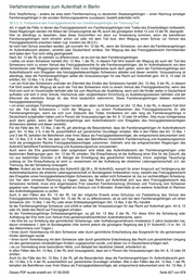 Verfahrenshinweise zum Aufenthalt in Berlin aufschiebenden Wirkung der Klage gegen die Abschiebungsandrohung begehrt wird. Auf Grund der aufschiebenden Wirkung von Klagen werden gem. Art. 5 gefertigte Feststellungsbescheide grundsätzlich mit einer Anordnung gem. § 80 Abs. 2 Nr. 4 VwGO (Anordnung der sofortigen Vollziehung) versehen. Den Betroffenen ist in den Fällen, in denen sie keine Aufenthaltserlaubnis-Schweiz besitzen, parallel zum Bescheiderlass eine Grenzübertrittsbescheinigung I für einen Monat auszustellen. Wird innerhalb der Rechtsbehelfsfrist Klage erhoben, erhält der Betroffene eine Bescheinigung L 4048 (sofern er nicht eine bereits ausgestellte Aufenthaltserlaubnis-Schweiz besitzt). Eventuelle Nebenbestimmungen, die zuvor galten, sind in die jeweilige Bescheinigung zu übernehmen. Liegen die Voraussetzungen des § 84 Abs. 2 Satz 2 AufenthG vor, ist dem Betroffenen auf Antrag die fortbestehende Erlaubnis der Erwerbstätigkeit (ggf. mit den Beschränkungen nach § 35 BeschV) formlos auf der Grenzübertrittsbescheinigung (ggf. Rückseite) oder der Bescheinigung L 4048 gesiegelt zu bestätigen. Ist der Bescheid bestands- oder rechtskräftig geworden, sind die vorgenannten Dokumente umgehend, ggf. über ein „Pass“einzugsersuchen, einzuziehen. Die Sperrwirkung ist gem. § 11 Abs. 2 AufenthG als eigenständiger Verfügungspunkt mit Erlass des Feststellungsbescheides zu befristen. Der Befristungszeitraum soll, je nach Einzelfall, eine Dauer von drei Jahren nicht übersteigen. Zur Orientierung bei der Ermittlung der Höchstfrist dient die Befristungstabelle, Zeile „§ 53 Abs. 1 Ausweisungsinteresse einfach“ (vgl. A.11) . Die Sperrwirkung darf nur solange aufrechterhalten bleiben, wie der ordnungsrechtliche Zweck die Fernhaltung des Ausländers vom Bundesgebiet erfordert. Bei dieser Prognose sind alle wesentlichen Umstände des Einzelfalles zu berücksichtigen und ihrem Gewicht entsprechend unter Beachtung der gesetzlichen Grenzen des behördlichen Ermessens, insbesondere des Grundsatzes der Verhältnismäßigkeit, der aufenthaltsrechtlichen Schutzwirkun-gen von Art. 6 GG und Art. 8 EMRK sachgerecht abzuwägen. Der Befristungszeitraum beginnt am Tag der Ausreise aus der Bundesrepublik Deutschland. Treten zwischen Erlass und Ausreise neue Umstände (etwa eine eheliche Lebensgemeinschaft, Drogenentzug, positive Gutachten im Strafvollstreckungsverfahren) ein, die nun ernsthafte Zweifel an der früher festgestellten gegenwärtigen und tatsächlichen Gefahr aufkommen lassen, ist die Aufhebung oder Verkürzung der Frist nach § 11 Abs. 4 AufenthG zu prüfen. Der Betroffene ist in jedem Fall darauf hinzuweisen, dass eine Verkürzung der Sperrwirkung wegen veränderter Umstände jederzeit beantragt werden kann. Kommt nach erfolgter Ausreise eine Verkürzung nicht in Betracht, so ist ggf. zu prüfen, ob eine Betretenserlaubnis zu erteilen ist (§ 11 Abs. 8 AufenthG). Bei der Anwendung dieser Vorschrift gelten keine Besonderheiten für ehemals Freizügigkeitsberechtigte. Bei der Wiedereinreise vor Ablauf oder Aufhebung der Sperrfrist ist das Einreise- und Aufenthaltsverbot aufgrund der nationalen Abschiebungsregelungen (§ 58 Abs. 2 S. 1 Nr. 1 AufenthG) durchzusetzen, da nach Eintreten des Verlusts des Freizügigkeitsrechts das AufenthG Anwendung findet. Hinsichtlich der festgesetzten Sperrfrist ist in diesem Fall § 11 Abs. 9 AufenthG zu beachten. Mit Ablauf der Sperrfrist endet jede Fortwirkung eines Einreise- und Aufenthaltsverbots. 28.8. Ausweispflicht Art. 1 bestimmt im Grundsatz die Ausweispflicht für Schweizer und ihre Familienangehörigen für die Einreise, den Aufenthalt und die Ausreise. Als Ausweis gilt ein Nationalpass oder ein anerkannter Passersatz. Als anerkannter Passersatz für Schweizer gilt insbesondere ein von einem Mitgliedsstaat ausgestellter Personalausweis. Merke: Entgegen dem Wortlaut der o.g. Artikel genügt im Übrigen auch die Vorlage eines in Deutschland anerkannten Passersatzes. Dies folgt aus §§ 3, 4 i.V.m. Art 12 des Abkommens. Ohne die Vorlage eines solchen gültigen Dokuments – für Drittstaatsangehörige ist die Vorlage eines Passes zwingend - ist die Ausstellung einer Aufenthaltserlaubnis-Schweiz abzulehnen und der Betroffene an seine Botschaft zu verweisen. Auch bei einer in diesem Zusammenhang geltend gemachten Mittellosigkeit ist die zuständige Botschaft erster Ansprechpartner für den Betroffenen, da er auch in der Bundesrepublik grundsätzlich unter dem Schutz seines Herkunftsstaates steht. Ein Ausweis und auch die Aufenthaltserlaubnis-Schweiz kann von freizügigkeitsberechtigten Schweizern und ihren freizügigkeitsberechtigten Familienangehörigen nicht eingezogen werden. Nach Feststellung des Verlusts des Freizügigkeitsrechts gilt hinsichtlich der ausweisrechtlichen Pflichten der § 48 AufenthG. 28.9.-10. Kapitel 9. des AufenthG (Straf- und Bußgeldvorschriften) findet auf freizügigkeitsberechtigte Schweizer und ihre freizügigkeitsberechtigten Familienangehörigen keine Anwendung. Dazu bedarf es der Feststellung des Verlusts des Freizügigkeitsrechts. 28.11. Anwendbarkeit des AufenthG Im Grundsatz besagt § 28, dass freizügigkeitsberechtigte Schweizer und ihre freizügigkeitsberechtigten Familienangehörigen wie Unionsbürger weitestgehend aus dem Anwendungsbereich der aufenthaltsrechtlichen Regelungen für Drittstaatsangehörige herausgenommen werden. Das AufenthG darf demzufolge für diese Personengruppe nur angewandt werden, wenn • durch einen Feststellungsbescheid nach Art. 5 oder 24 der Verlust des Rechts auf Einreise und Aufenthalt festgestellt wurde. Es bedarf nicht der Unanfechtbarkeit des Bescheides • die Vorschrift des AufenthG eine günstigere Rechtsstellung vermittelt als das Abkommen oder der zugehörige Anhang I (Art. 12 i.V.m. Art. 15 des Abkommens). Merke: Zwar sind Schweizer und ihre Familienangehörigen gem. § 44 Abs. 1 AufenthG zur Teilnahme an einem Integrationskurs berechtigt (Begünstigung). Es ist abe