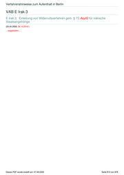 Verfahrenshinweise zum Aufenthalt in Berlin „Beschäftigung nur nach Erlaubnis.“ oder „Beschäftigung gestattet.“ zu versehen. Merke: Im Rahmen der Prüfung zur Verlängerung der Duldung sind die oben genannten drei Spiegelstriche, die eine Zustimmungsvorlage rechtfertigen, erneut zu prüfen. Liegen die Voraussetzungen vor, erfolgt erstmalig eine Zustimmungsvorlage an SenInnDS. Von einer hartnäckigen Identitätsverweigerung ist dann auch dann auszugehen, wenn innerhalb von 18 Monaten nach Erteilung der Duldung nach § 60a Abs. 2 S. 3 AufenthG seitens des irakischen Staatsangehörigen, der nicht im Besitz eines gültigen Identitätsdokumentes ist, keine Passvorlage erfolgt oder entsprechende nachhaltige und glaubhafte Bemühungen nicht nachgewiesen werden. Dieses PDF wurde erstellt am: 07.09.2020 Seite 812 von 878