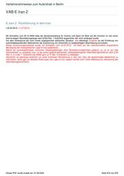 Verfahrenshinweise zum Aufenthalt in Berlin VAB E Iran 2 E.Iran.2. Rückführung in den Iran ( 02.02.2012; 11.07.2012 ) Mit Schreiben vom 05.10.2009 hatte die Senatsverwaltung für Inneres und Sport mit Blick auf die Unruhen im Iran einen dreimonatigen Abschiebungsstopp nach § 60a Abs. 1 AufenthG angeordnet, der nicht verlängert wurde. Vor dem Hintergrund der noch immer angespannten politischen Situation war allerdings zunächst vor der Einleitung von aufenthaltsbeendenden Maßnahmen die Zustimmung von SenInnDS zur beabsichtigten Abschiebung einzuholen. Dieser Zustimmungsvorbehalt wurde mit Schreiben vom 02.07.2012 mit Blick auf die zwischenzeitlich eingetretene Beruhigung der innenpolitischen Lage im Iran aufgehoben. Macht ein ausreisepflichtiger iranischer Staatsangehöriger eine Rückkehrunmöglichkeit geltend, so ist er auf das Asylverfahren zu verweisen bzw. ist bei einem geltend gemachten zielstaatsbezogenen Abschiebungshindernis nach § 60 Abs. 2, 3 5 oder 7 AufenthG das BAMF gem. § 72 Abs. 2 AufenthG zu beteiligen. SenInnDS ist allerdings weiterhin vor einer konkreten Rückführung in den Iran über die beabsichtigte Maßanhme zu informieren, damit ggf. auf aktuelle Änderungen der Lage im Iran reagiert werden kann (fmdl. Mitteilung vor Absendung des Abschiebungsersuchens). Dieses PDF wurde erstellt am: 07.09.2020 Seite 818 von 878