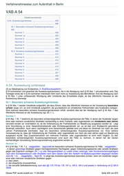 Verfahrenshinweise zum Aufenthalt in Berlin VAB A 54 Inhaltsverzeichnis A.54. Ausweisungsinteresse ......................................... 405 ................................................................................ 686 54.1. Besonders schweres Ausweisungsinteresse ...... 405 Nummer 1: ...................................................... 409 Nummer 1a: .................................................... 405 Nummer 2: ...................................................... 409 Nummer 3: ...................................................... 409 Nummer 4: ...................................................... 409 Nummer 5: ...................................................... 409 54.2. Schweres Ausweisungsinteresse ................. 406 Nummer 1: ...................................................... 410 Nummer 2: ...................................................... 410 Nummer 3: ...................................................... 410 Nummer 4: ...................................................... 410 Nummer 5: ...................................................... 410 Nummer 6: ...................................................... 410 Nummer 7: ...................................................... 407 Nummer 8: ...................................................... 408 Nummer 9: ...................................................... 408 A.54. Ausweisung sinteresse (G zur Bekämpfung von Kinderehen; 2. ÄndGAusreisepflicht ) § 54 konkretisiert und gewichtet die Ausweisungsinteressen, die in die Abwägung nach § 53 Abs. 1 einzubeziehen sind. Das Vorliegen eines der in § 54 normierten Interessen führt noch nicht zur Ausweisung des Betroffenen. Erst die Abwägung nach § 53 Abs. 1 unter umfassender Würdigung aller Umstände des Einzelfalles ergibt, ob das öffentliche Interesse an der Ausweisung überwiegt. 54.1. Besonders schweres Ausweisungsinteresse In § 54 Abs. 1 werden Umstände aufgezählt, die dazu führen, dass das öffentliche Interesse an der Ausweisung besonders schwer wiegt, d.h. es sind Umstände aufgeführt, die grundsätzlich ein erhebliches Fehlverhalten des Ausländers belegen. Sind mehrere besonders schwere Ausweisungsinteressen erfüllt, verstärkt dies bei der Abwägung nach § 53 Abs. 1 das öffentliche Interesse an der Ausweisung (vgl. 53.1.1.). Nummer 1: § 54 Abs. 1 Nr. 1 bestimmt als besonders schwerwiegendes Ausweisungsinteresse die Fälle, in denen der Ausländer wegen einer oder mehrere vorsätzlicher Straftaten rechtskräftig zu einer Freiheits- oder Jugendstrafe von mindestens zwei Jahren verurteilt worden ist. Unerheblich ist, ob die Vollstreckung der Freiheitsstrafe zur Bewährung ausgesetzt worden ist . Liegt eine Verurteilung zu einer Gesamtfreiheitsstrafe oder Einheitsjugendstrafe vor, so ist das vom Strafgericht gefundene Strafmaß verbindlich. Auch wenn nachträglich eine Gesamtstrafe gebildet wird und diese ein Strafmaß von mehr als zwei Jahren Freiheitsstrafe beinhaltet, liegt ein besonders schwerwiegendes Ausweisungsinteresse vor. Eine weitere Voraussetzung ist, dass die Vollstreckung der Freiheits- oder Jugendstrafe von mehr als zwei Jahren nicht zur Bewährung ausgesetzt wurde. Das Zusammenziehen von mehreren Freiheits- oder Jugendstrafen ist nicht mehr möglich. Zu den besonders schwerwiegenden Ausweisungsinteressen sind auch die Fälle zu rechnen, in denen bei der letzten rechtskräftigen Verurteilung Sicherungsverwahrung angeordnet worden ist. Nummer 1a: M it § 54 Abs. 1 Nr. 1 a ...weggefallen... begründet ein besonders schweres Ausweisungsinteresse für Fälle ...weggefallen... , in denen gewichtige Straftaten gegen höchstpersönliche Rechtsgüter, gegen Vollstreckungsbeamte oder serielle Straftaten gegen das Eigentum vorliegen (Nr. 1 a) oder Betrugsstraftaten zu Lasten eines Leistungs- oder Sozialversicherungsträgers nach dem Sozialgesetzbuch oder Straftaten nach dem Gesetz über den Verkehr mit Betäubungsmitteln begangen worden sind (Nr. 1 b) . ...weggefallen... Nach Nr. 1a wiegt das Ausweisungsinteresse besonders schwer, wenn ein Ausländer wegen einer oder mehrerer vorsätzlicher Straftaten gegen a.) das Leben, b.) die körperliche Unversehrtheit, c.) die sexuelle Selbstbestimmung nach den §§ 174,176 bis 178, 181 a, 184 b, 184 d und jeweils in Verbindung mit § 184 b StGB, Dieses PDF wurde erstellt am: 17.06.2020 Seite 405 von 875
